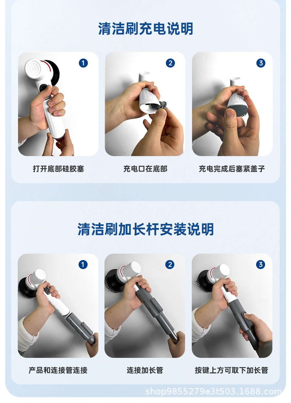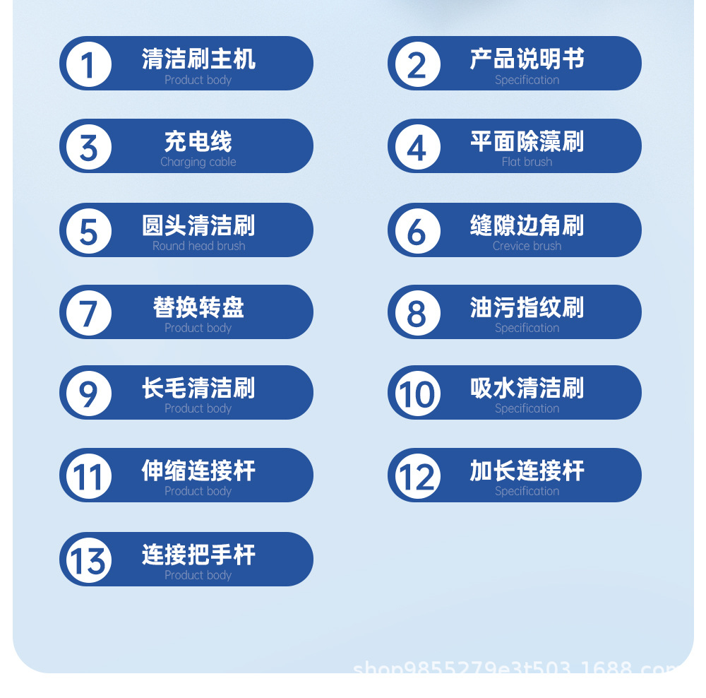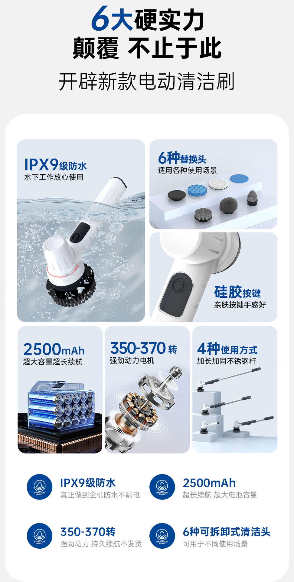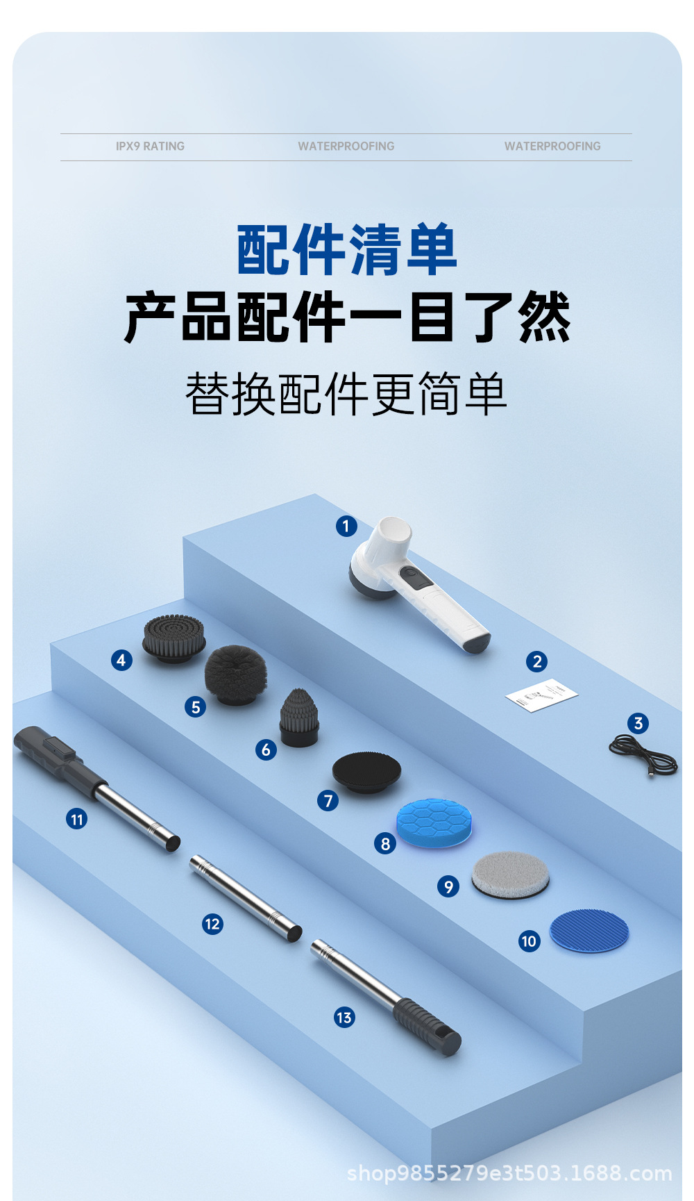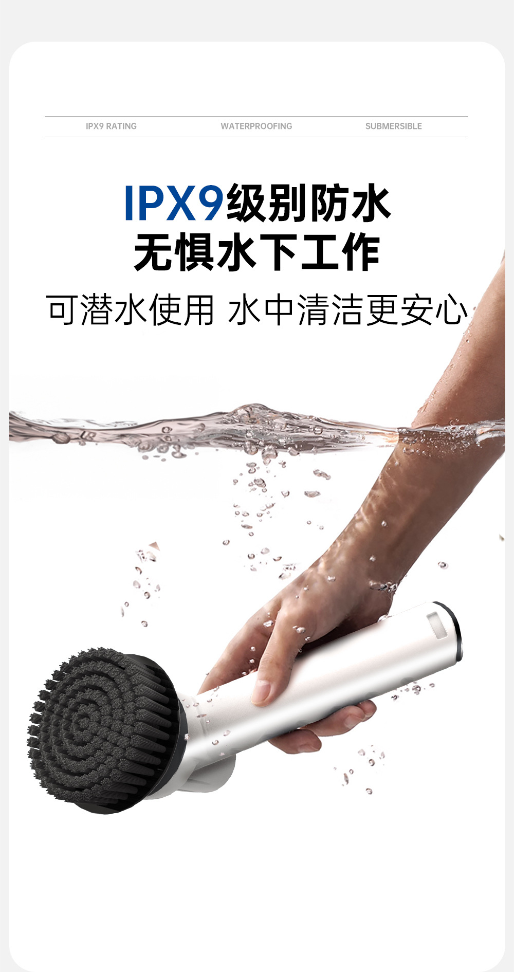 엄지손가락 방수 전기 수조 브러시 청소 도구, 사각지대 없음, 긴 손잡이 청소 도구, 내부 및 외부 벽 청소 도구