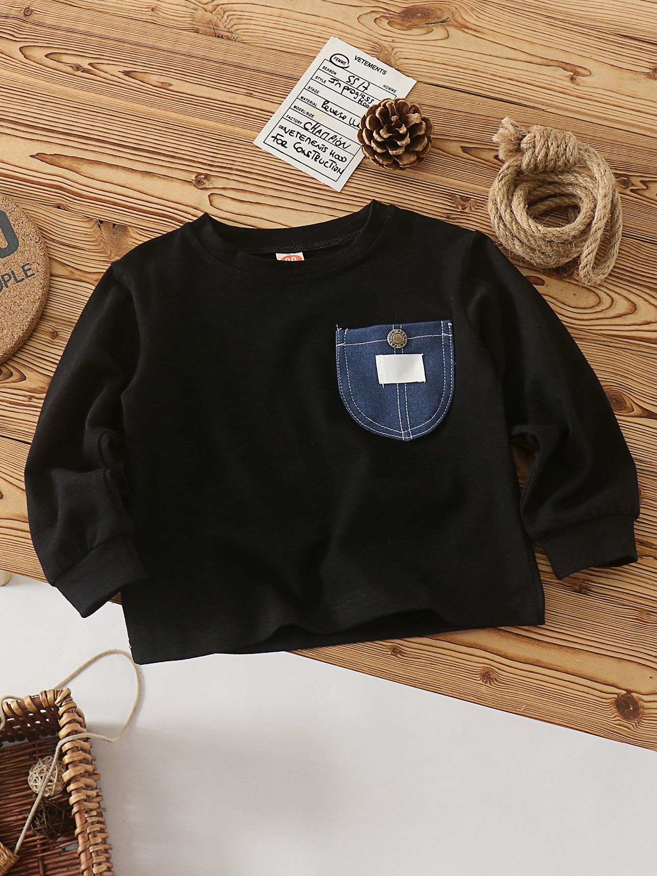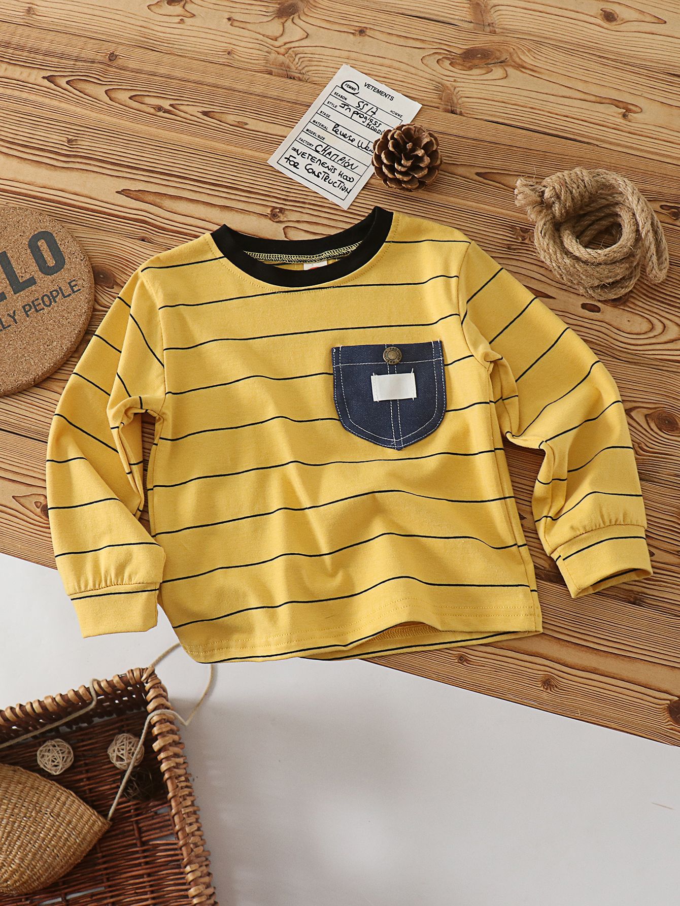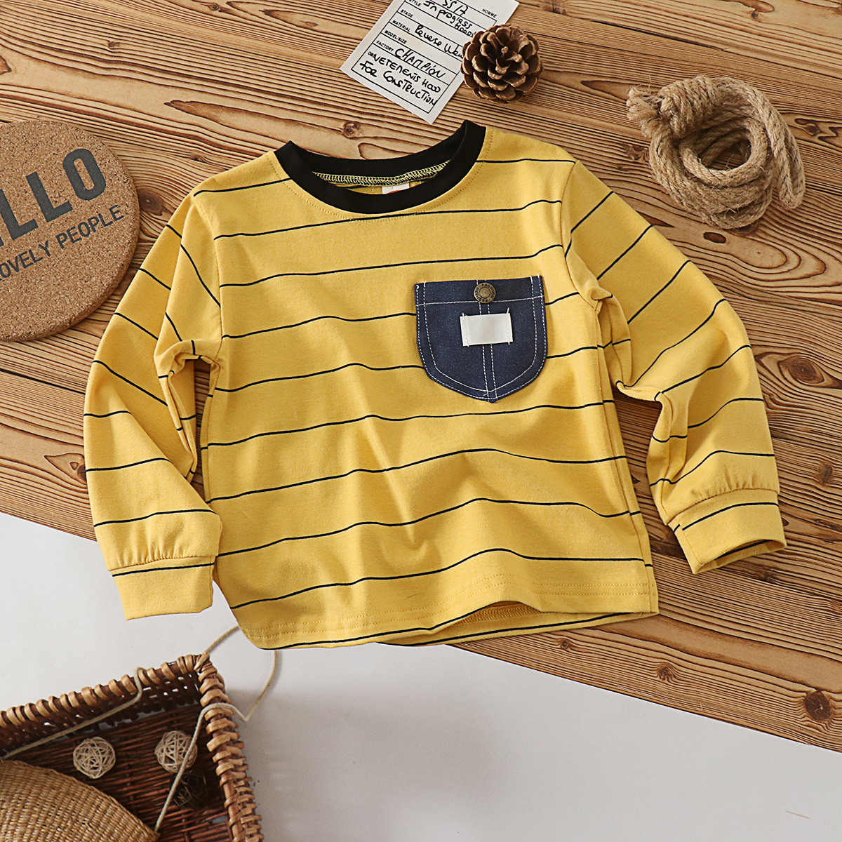 아동용 티셔츠 소년 긴팔 면화 새 상품 탑 소녀 포켓 스트라이프 레터 베이비 바닥 블랙스토어 가기