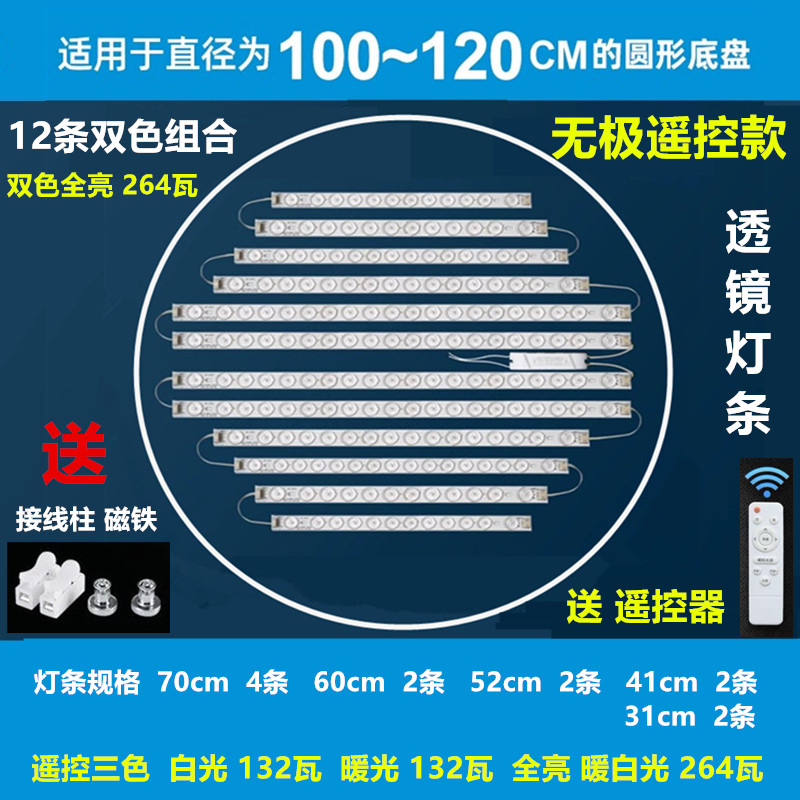 • 100/120cm 섀시에 적합, 리모콘 3색, 264와트 [리모콘 포함], 렌즈 원형 심지