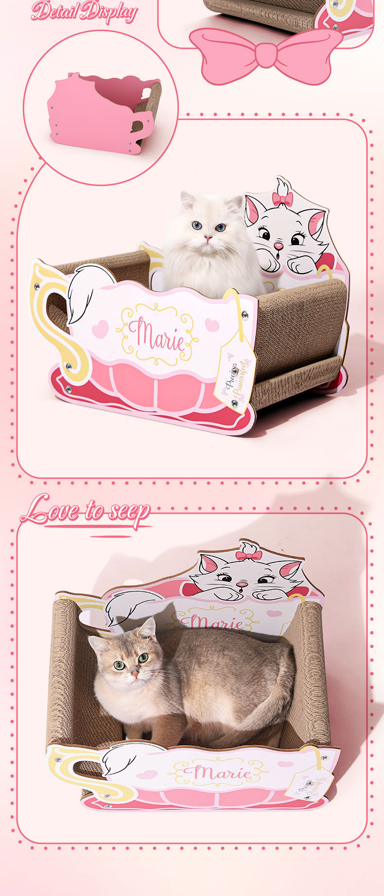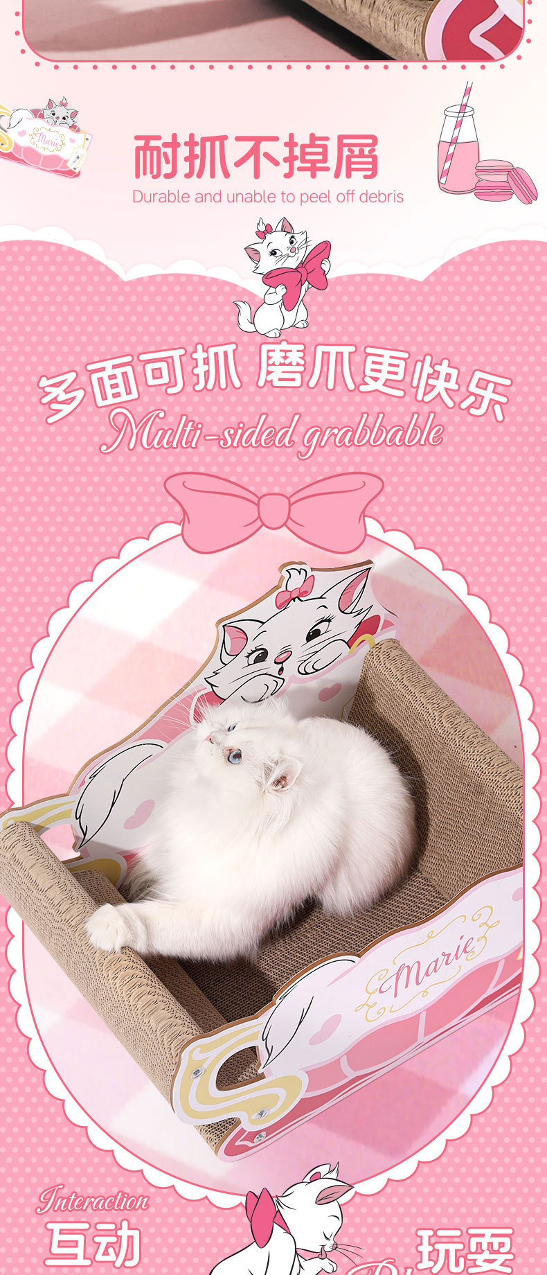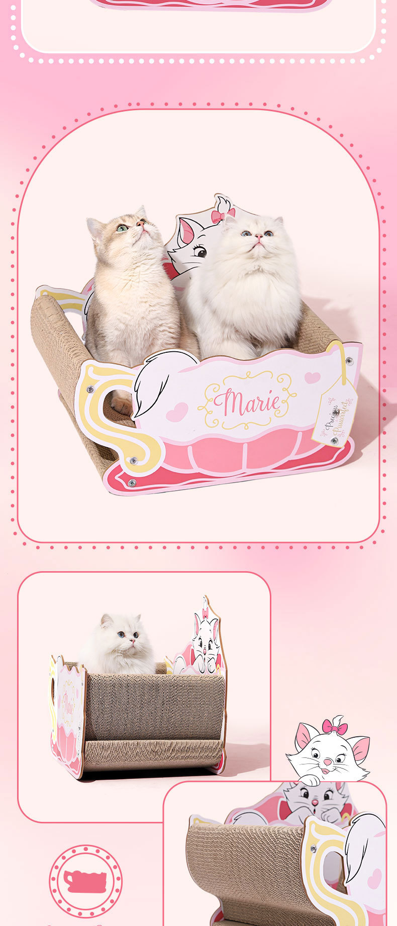마리 고양이 스크래치 보드는 부스러기가 잘 안 나고, 셀프 스크래치가 가능한 내구성 있는 골판지 스크래치 보드와 고양이 집이 하나로 된 고양이 용품입니다.스토어 가기