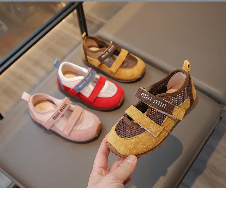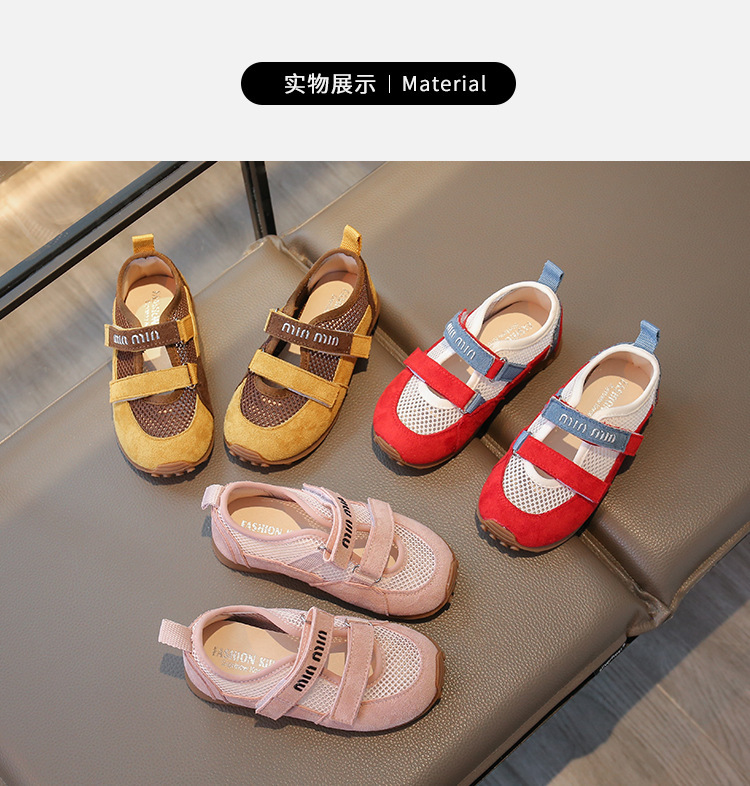 한국 스타일 어린이 신발 2025 봄과 여름 새로운 메쉬 할로우 편안한 얕은 입 작은 가죽 신발 메리 제인 캐주얼 신발 중 큰 어린이스토어 가기