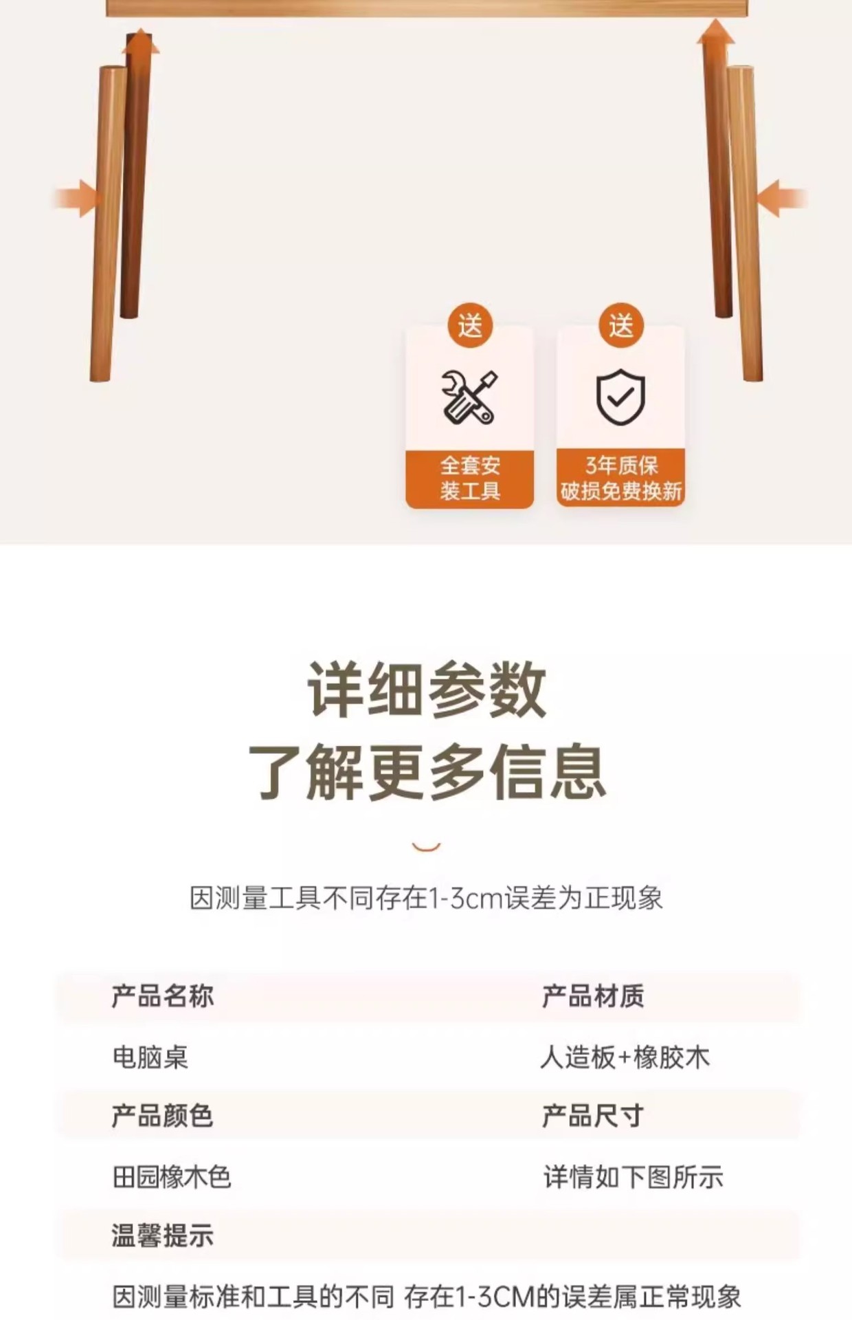 • [굵은 원목 다리] 따뜻한 흰색 120*60CM
