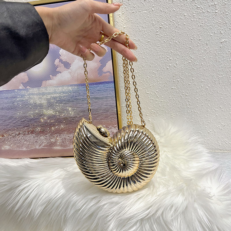 국경을 넘나드는 유럽과 미국의 트렌디한 틈새 디자인 패셔너블한 이브닝 백 체인 달팽이 모양의 아크릴 숄더 크로스백