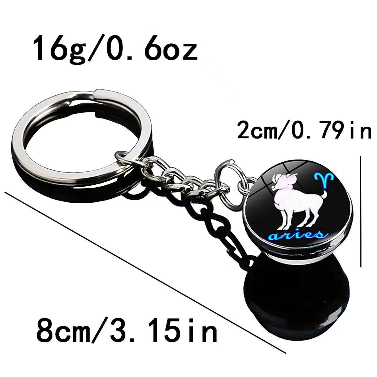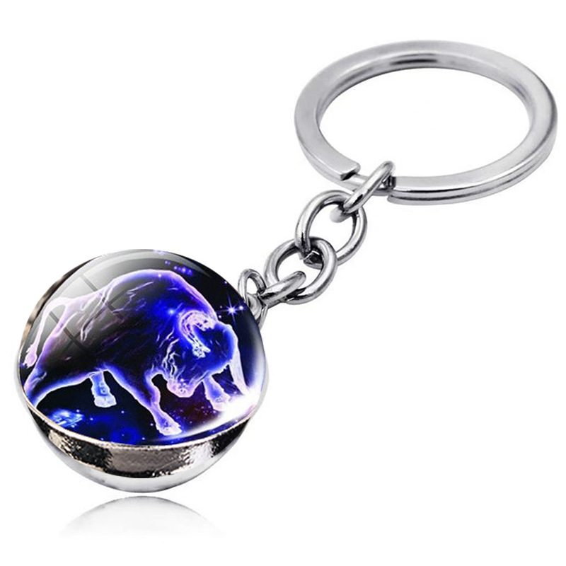 국경 간 12 별자리 빛나는 키 체인 가방 펜던트 시간 보석 양면 유리 공 열쇠 고리 재고 있음 도매스토어 가기