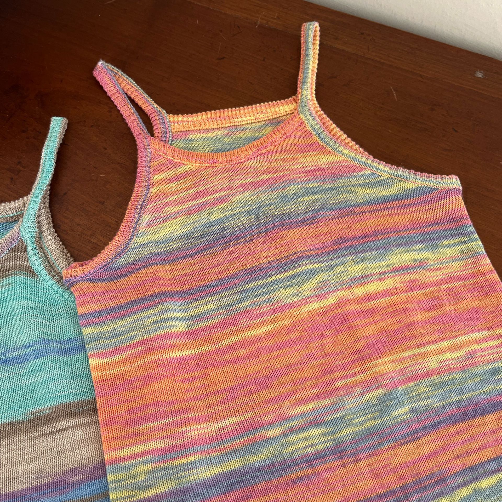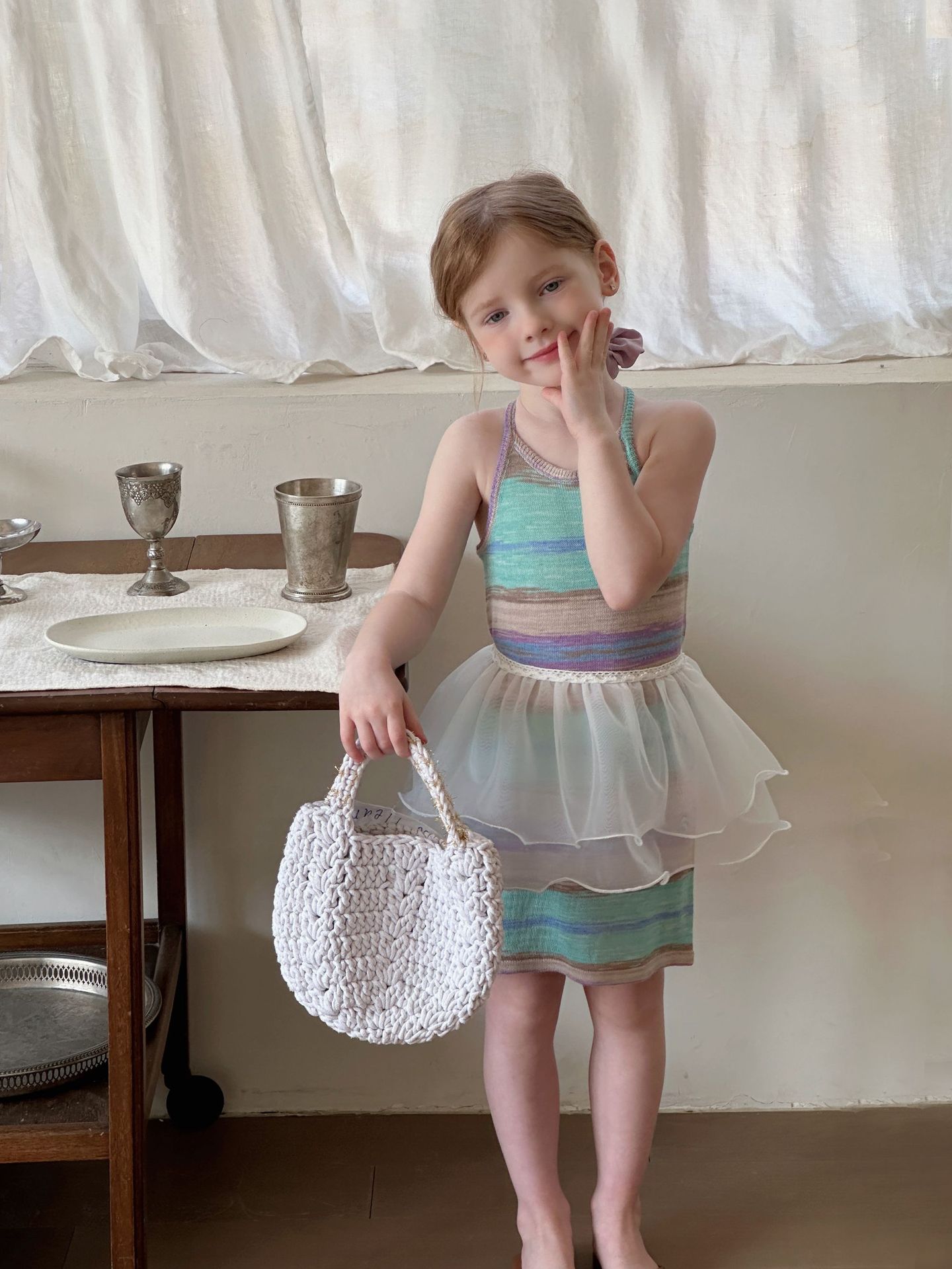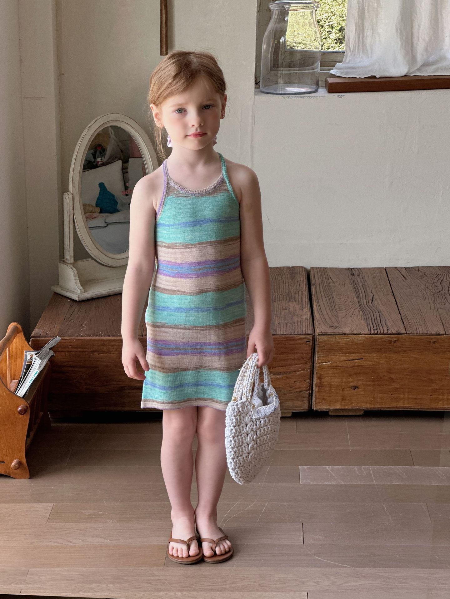 소녀 슬링 원피스 2025 여름 새로운 어린이 다채로운 도파민 줄무늬 니트 스커트 아기 롱 스커트