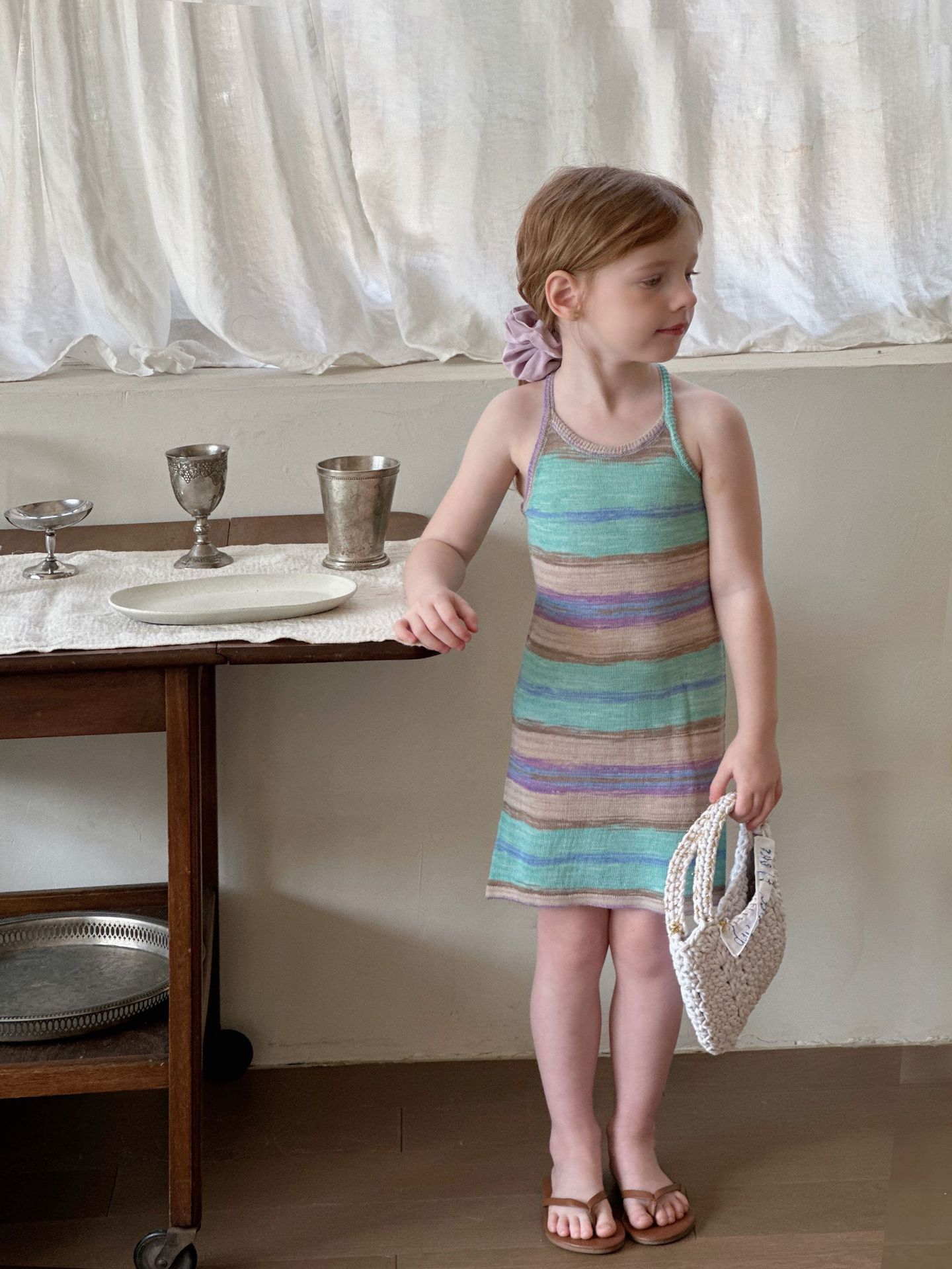 소녀 슬링 원피스 2025 여름 새로운 어린이 다채로운 도파민 줄무늬 니트 스커트 아기 롱 스커트스토어 가기