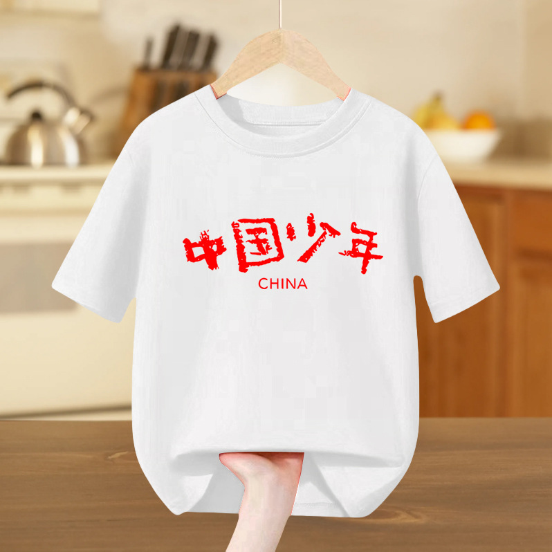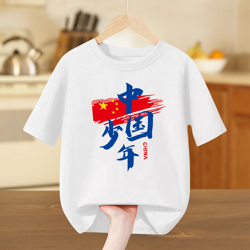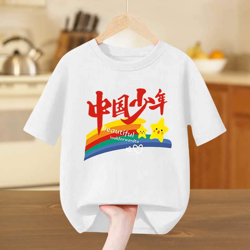 국경일 반소매 티셔츠 중국어린이면 반소매 초등학생 · 중등학교 학생 유치원활동 수업 옷 화이트 탑스토어 가기