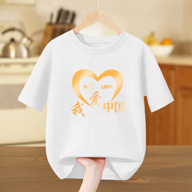 국경일 반소매 티셔츠 중국어린이면 반소매 초등학생 · 중등학교 학생 유치원활동 수업 옷 화이트 탑