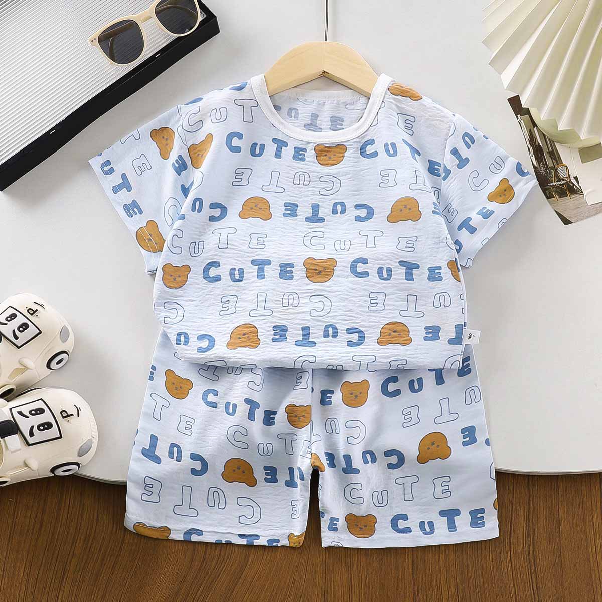 어린이 가정 의류 세트 여름 새 소년 세트 여자 잠옷 아기 2025 여름 아동복 도매스토어 가기
