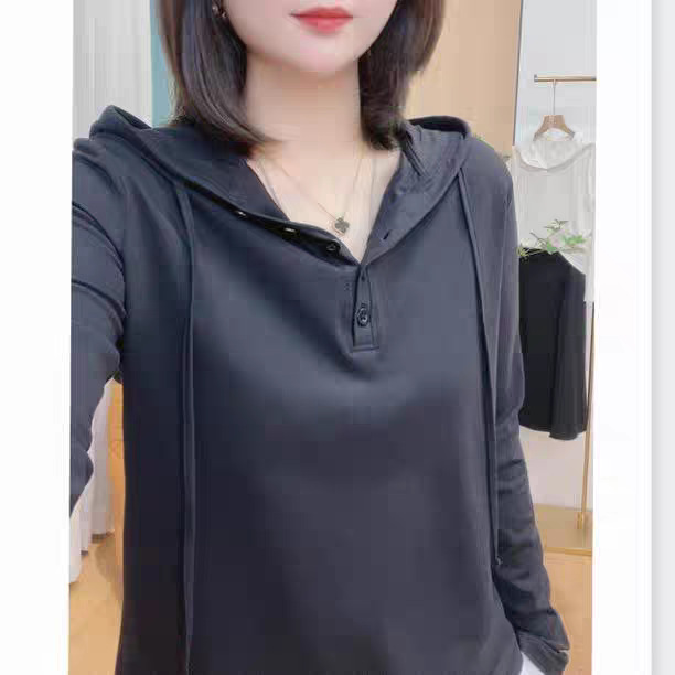 헤어 2025 봄 새로운 패션 스타일 조커 나이를 줄이는 기질 여성의 후드 긴 소매 스웨터 조수