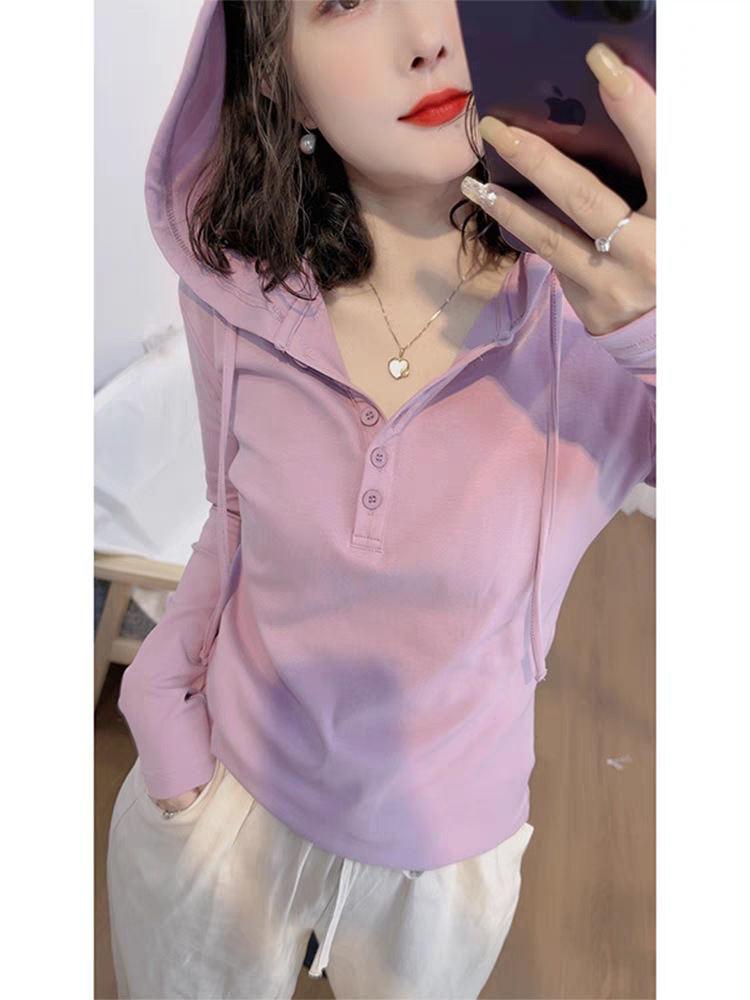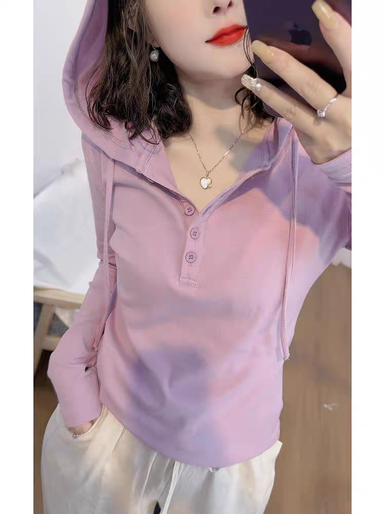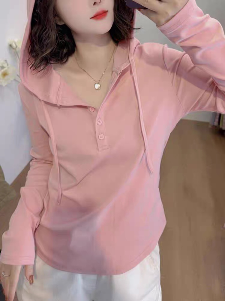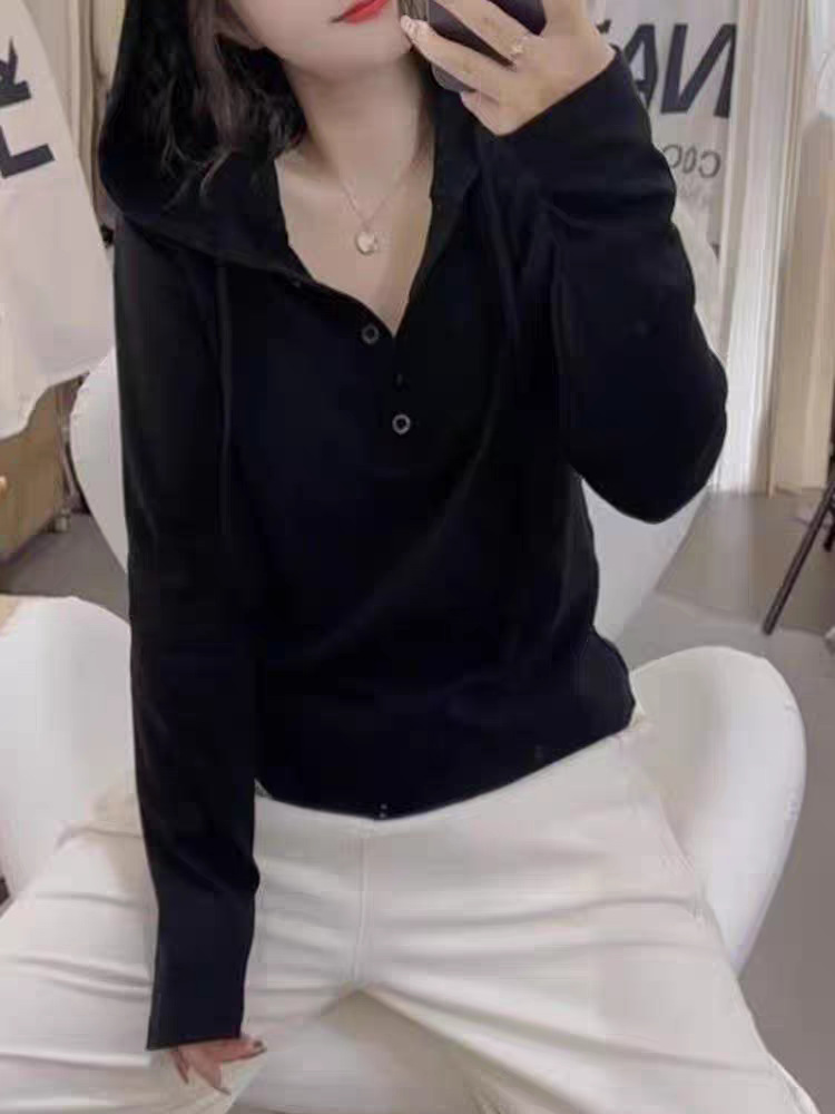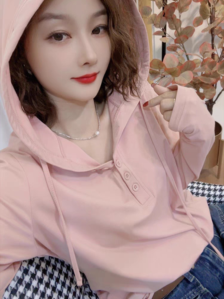 헤어 2025 봄 새로운 패션 스타일 조커 나이를 줄이는 기질 여성의 후드 긴 소매 스웨터 조수스토어 가기