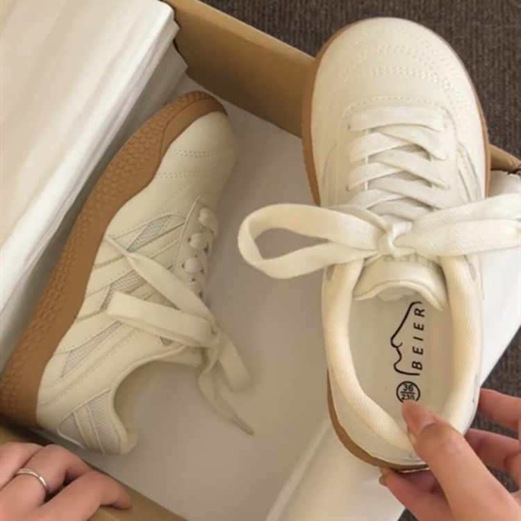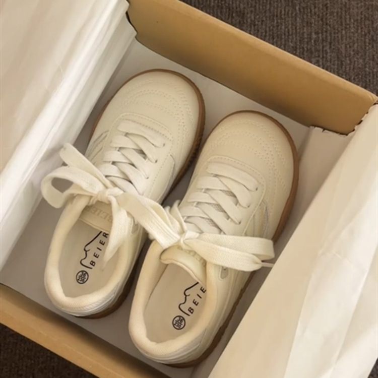 2025년 여성을 위한 홍콩 스타일 두꺼운 밑창 가죽 흰색 신발, 새로운 봄 스타일, 다재다능하고 시크하며 트렌디한 틈새 캐주얼 운동화스토어 가기