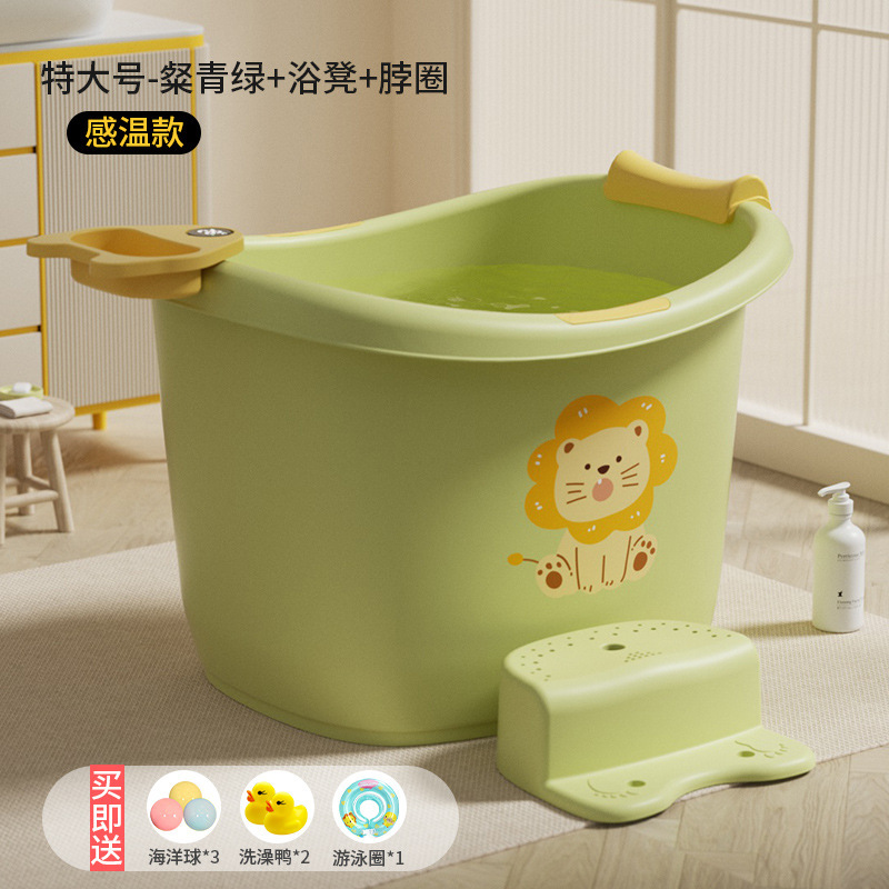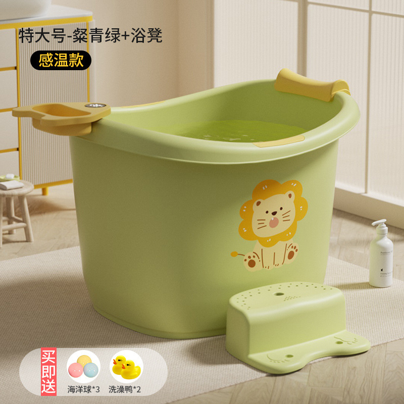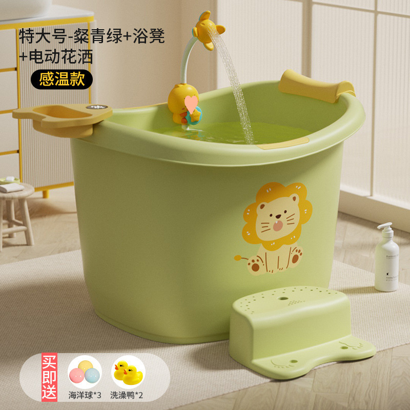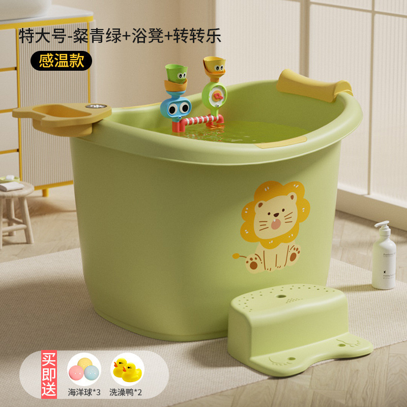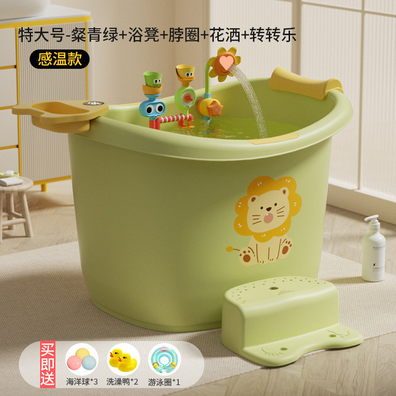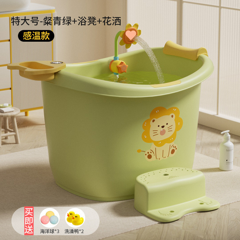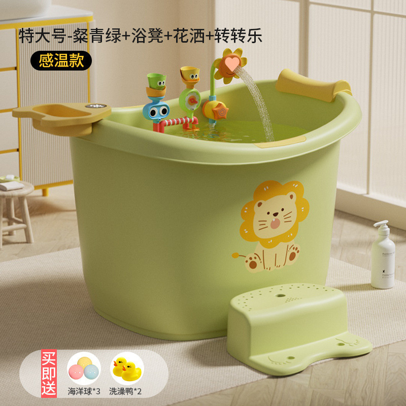 • 두꺼워진 대형 사이즈 - 밝은 녹색 + 샤워기 [0-15세 디지털 온도 표시] 선물 팩
