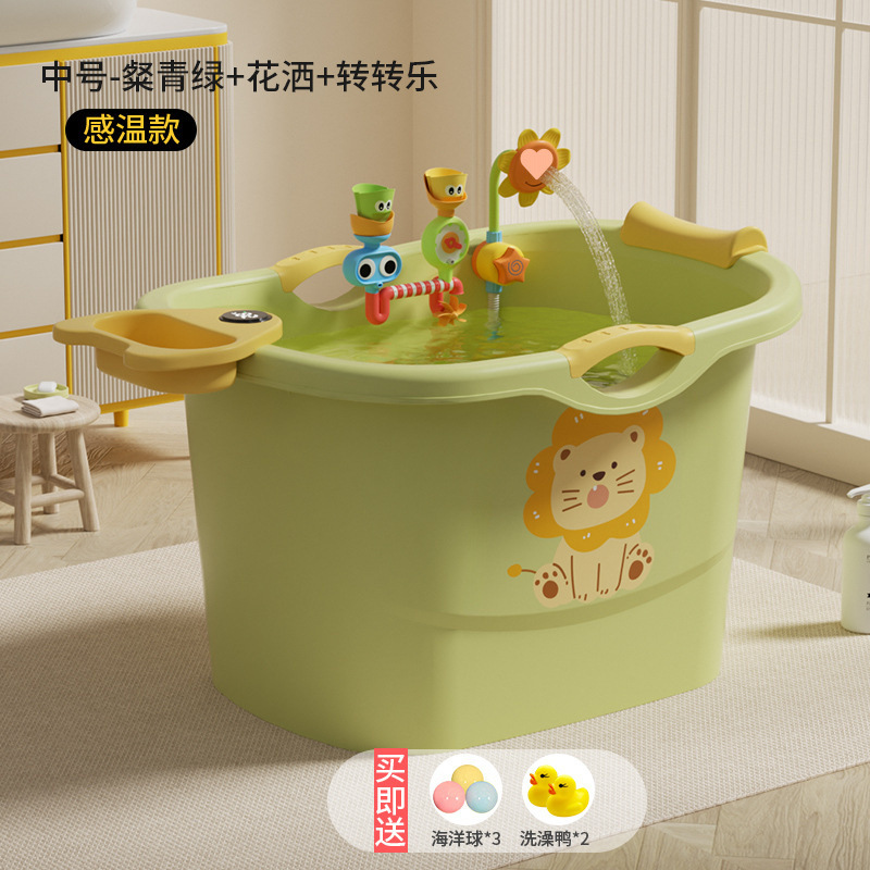 • 중형 - 밝은 녹색 + 샤워기 + Zhuanzhuanle [0-10세 디지털 온도 표시] 선물 팩