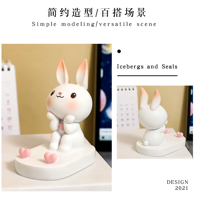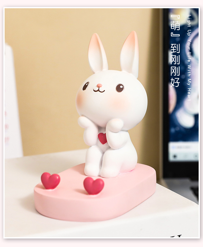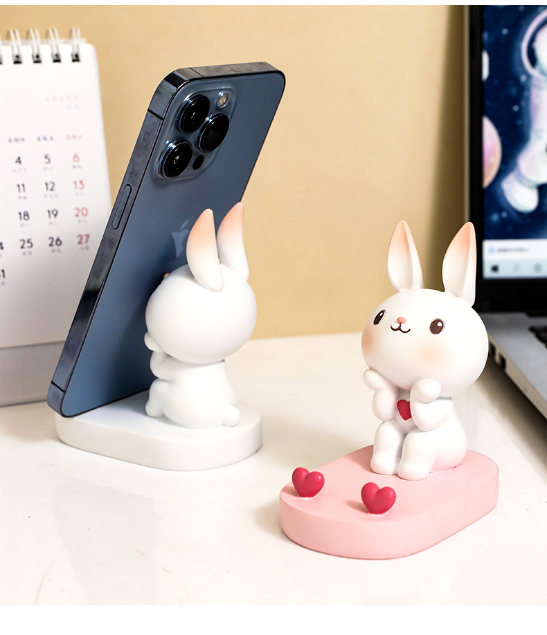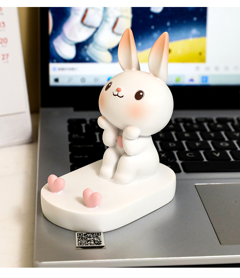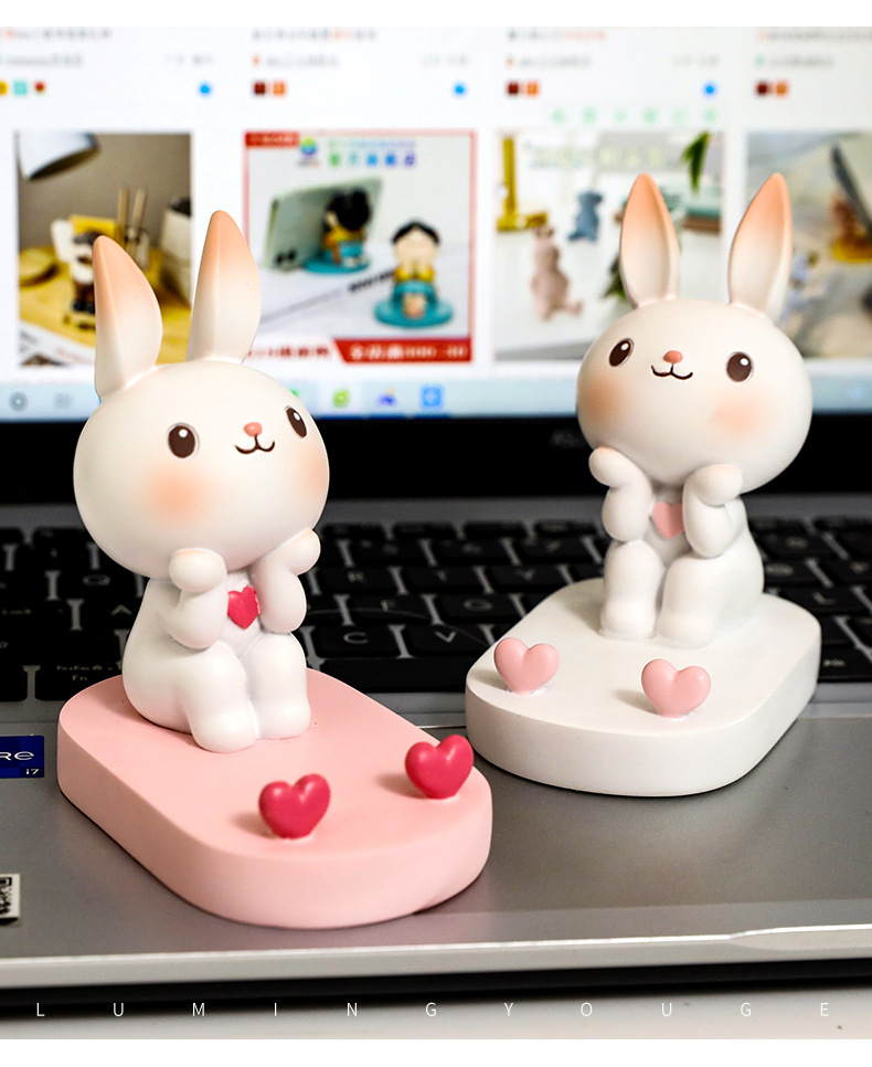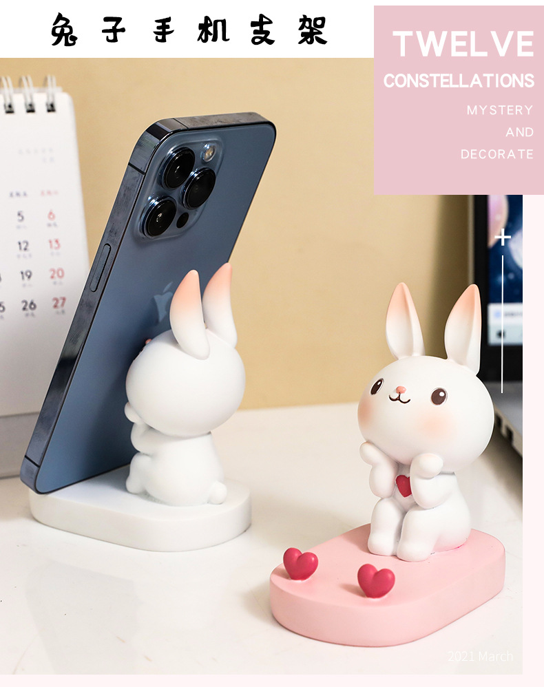 정품 흰 토끼 휴대 전화 브래킷 데스크탑 드라마 쫓는 아티팩트 다기능 토끼 범용 휴대 전화 브래킷 머리 장식품