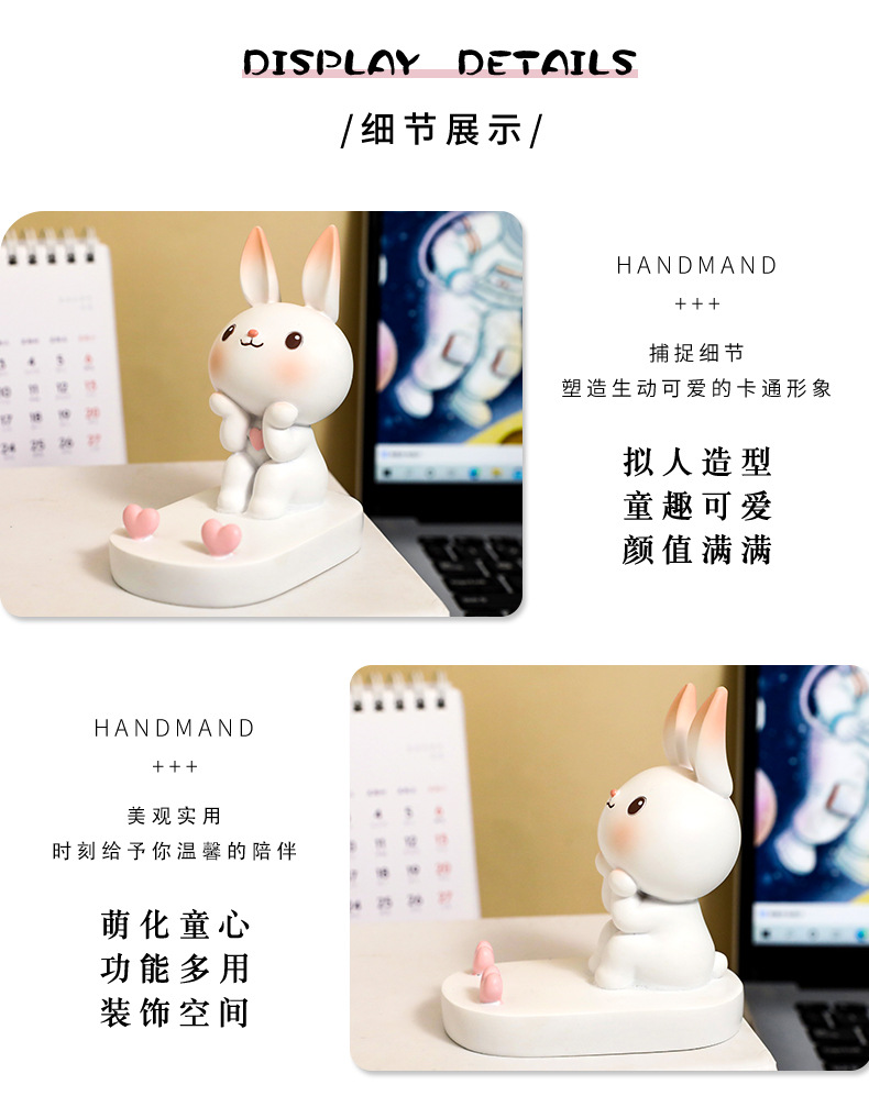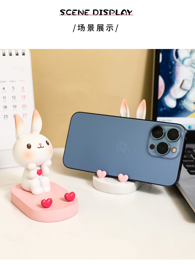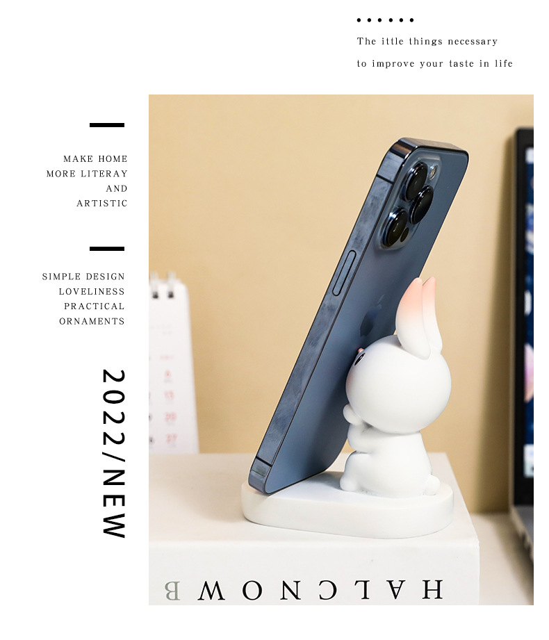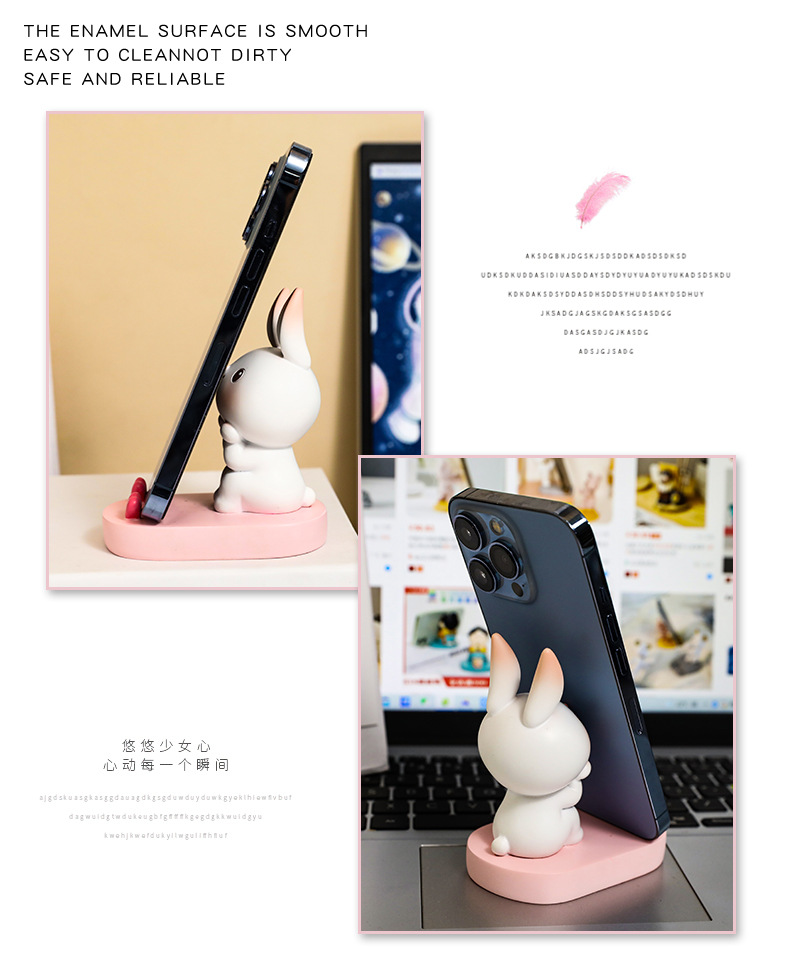 정품 흰 토끼 휴대 전화 브래킷 데스크탑 드라마 쫓는 아티팩트 다기능 토끼 범용 휴대 전화 브래킷 머리 장식품스토어 가기
