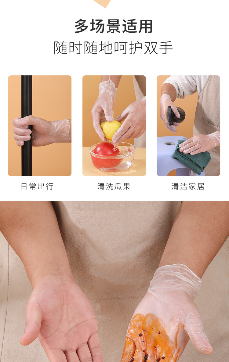 음식 접촉 등급 pvc 일회용 장갑 도매 라텍스 장갑 케이터링 주방 가사 식기 세척 방수 및 내구성