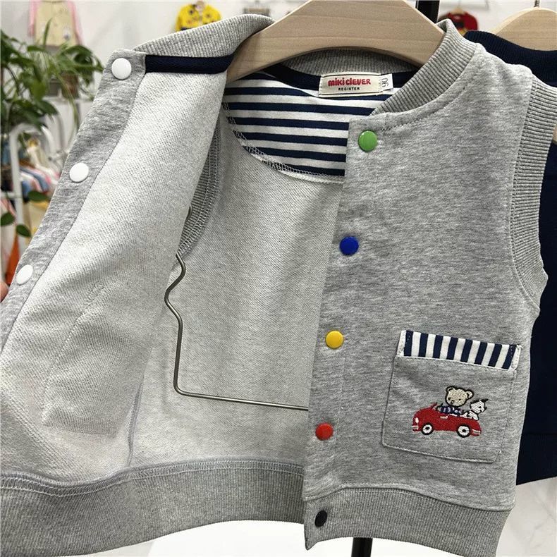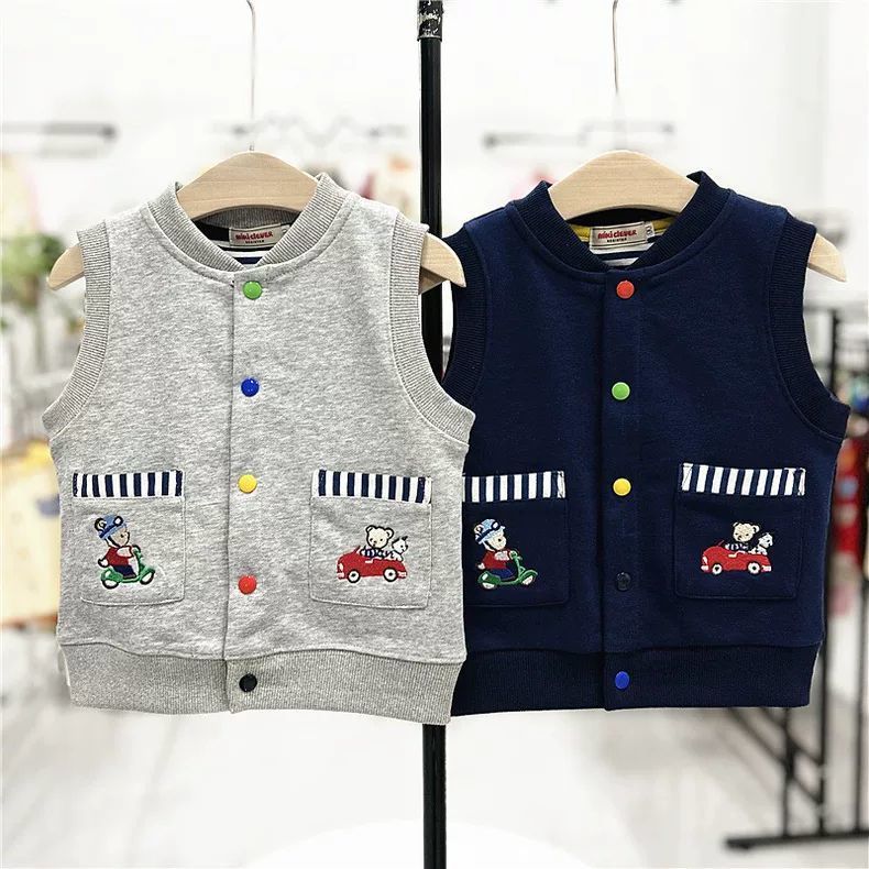 2025 새로운 여름 어린이 면화 테리 만화 조끼 남성과 여성 귀여운 양복 조끼 탑 만화 조끼 다목적