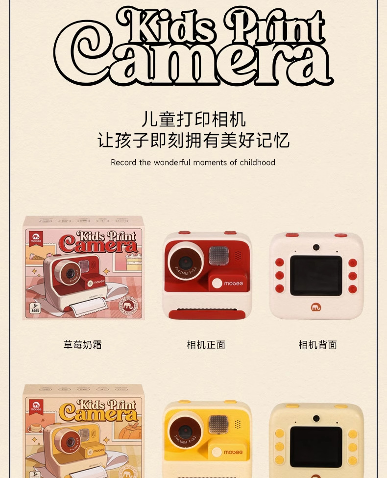 Mobee 어린이 디지털 카메라는 사진과 비디오를 찍고 컬러 폴라로이드 아기 생일 선물 장난감을 인쇄할 수 있습니다.스토어 가기