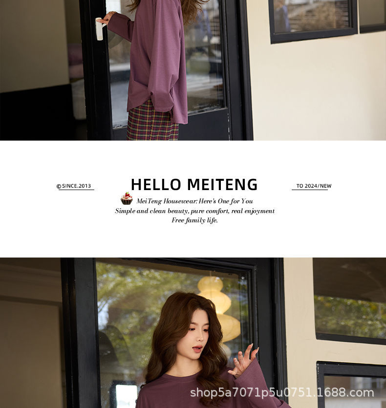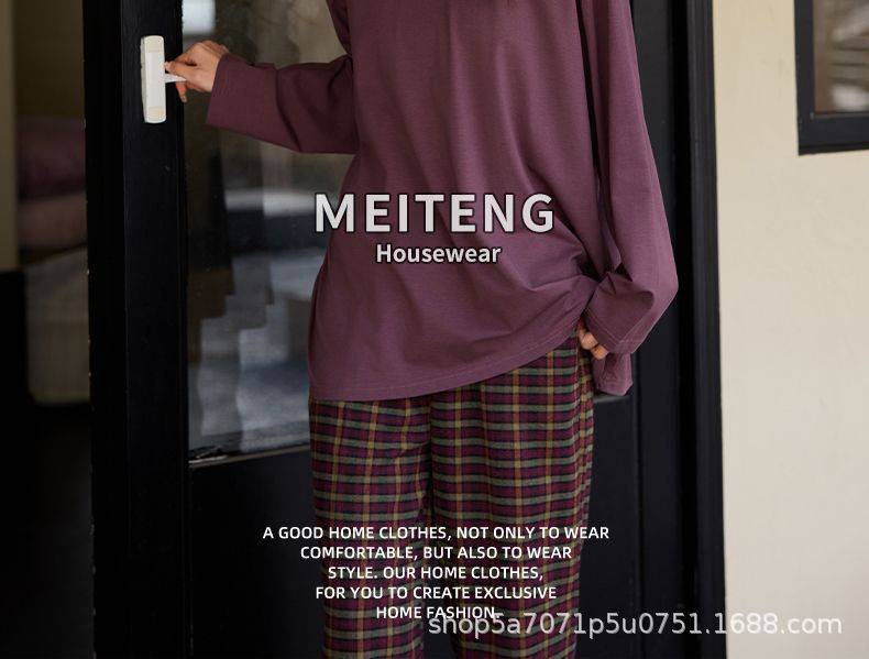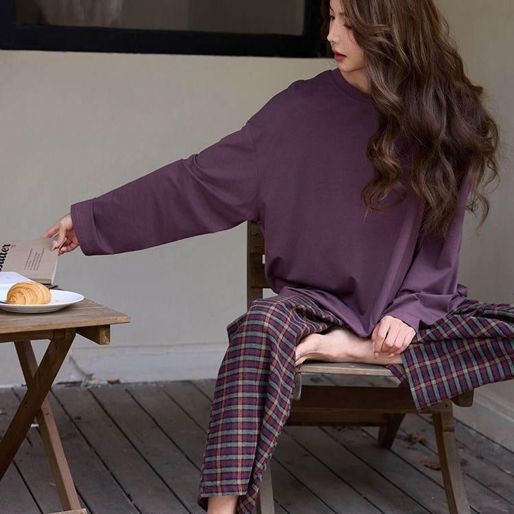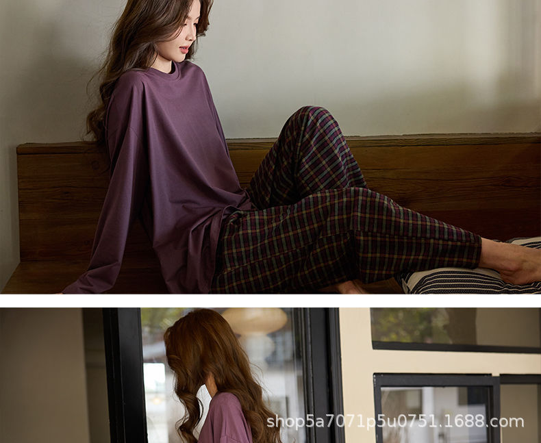 2025 새로운 얇은 여성 잠옷 긴 소매 순수 코튼 봄, 가을 보라색 잠옷스토어 가기