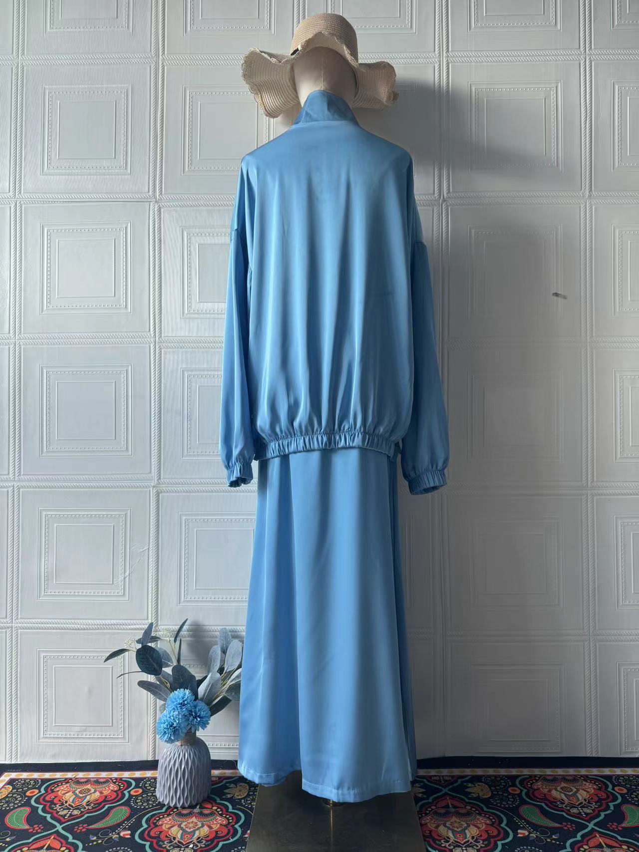 아마존 유럽과 미국 2025 여름 새로운 새틴 긴 소매 원피스 패션 허리 원피스 세트 여성