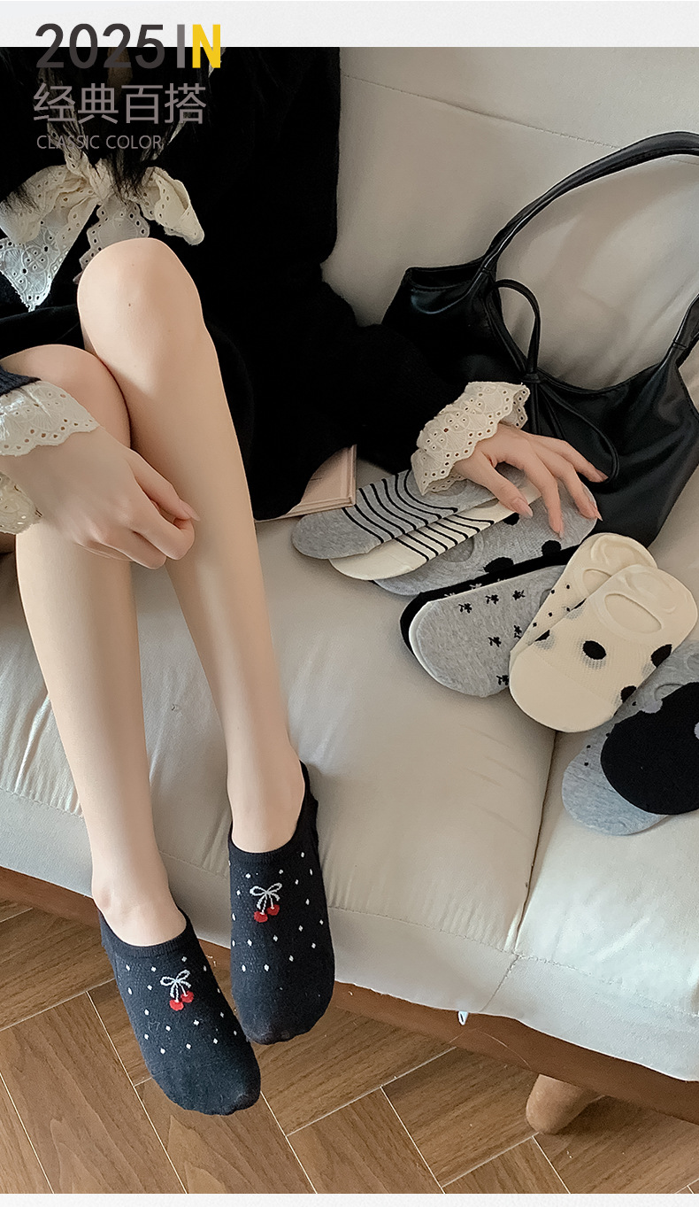 봄과 여름에 가장 적합한 면 여성용 보트 양말, 얇은 땀 흡수 및 통기성 줄무늬 얕은 입 실리콘 미끄럼 방지 편안한 보이지 않는 양말