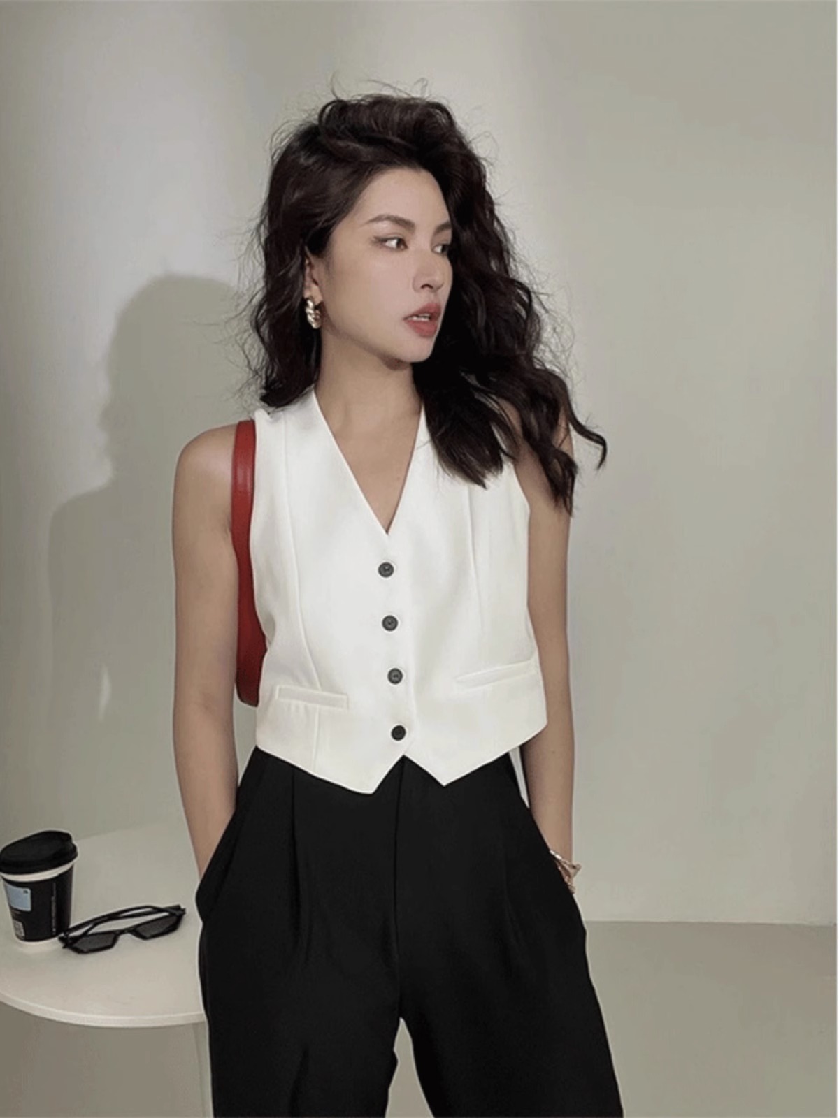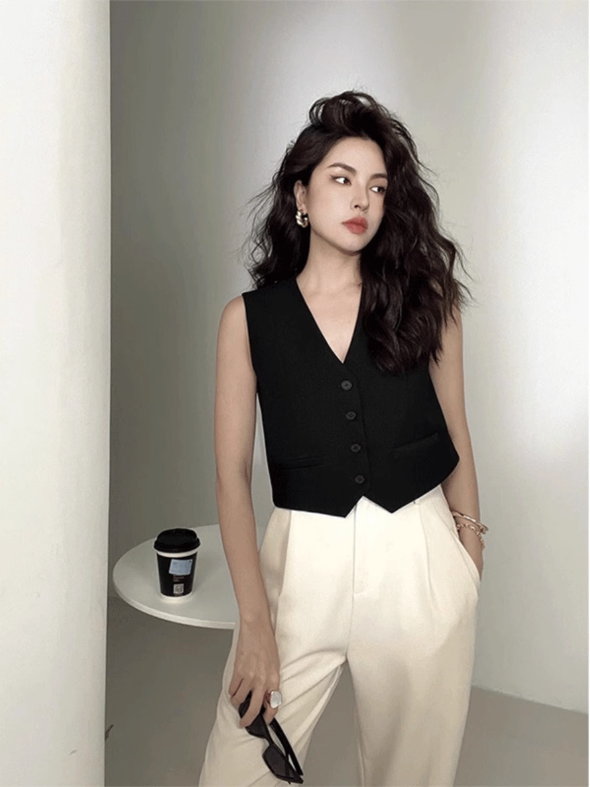 샤넬 스타일 프렌치 탑 소형 V 넥 세트 캐주얼 세트 여성 여름을위한 얇은 민소매 조끼 조끼스토어 가기