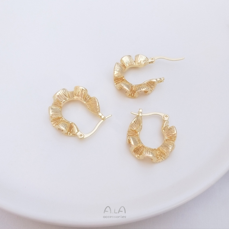 색상 유지 14K 금으로 채워진 입체 주름 레이스 귀걸이 패셔너블한 틈새 시장의 가벼운 럭셔리 링 질감 귀걸이