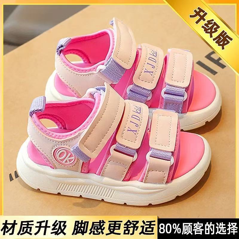 여자 샌들 여름 2025 새로운 어린이 공주 신발 빅 키즈 걸스 소프트 단독 비치 신발 비 슬립 핫 베이비스토어 가기