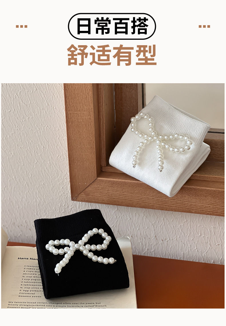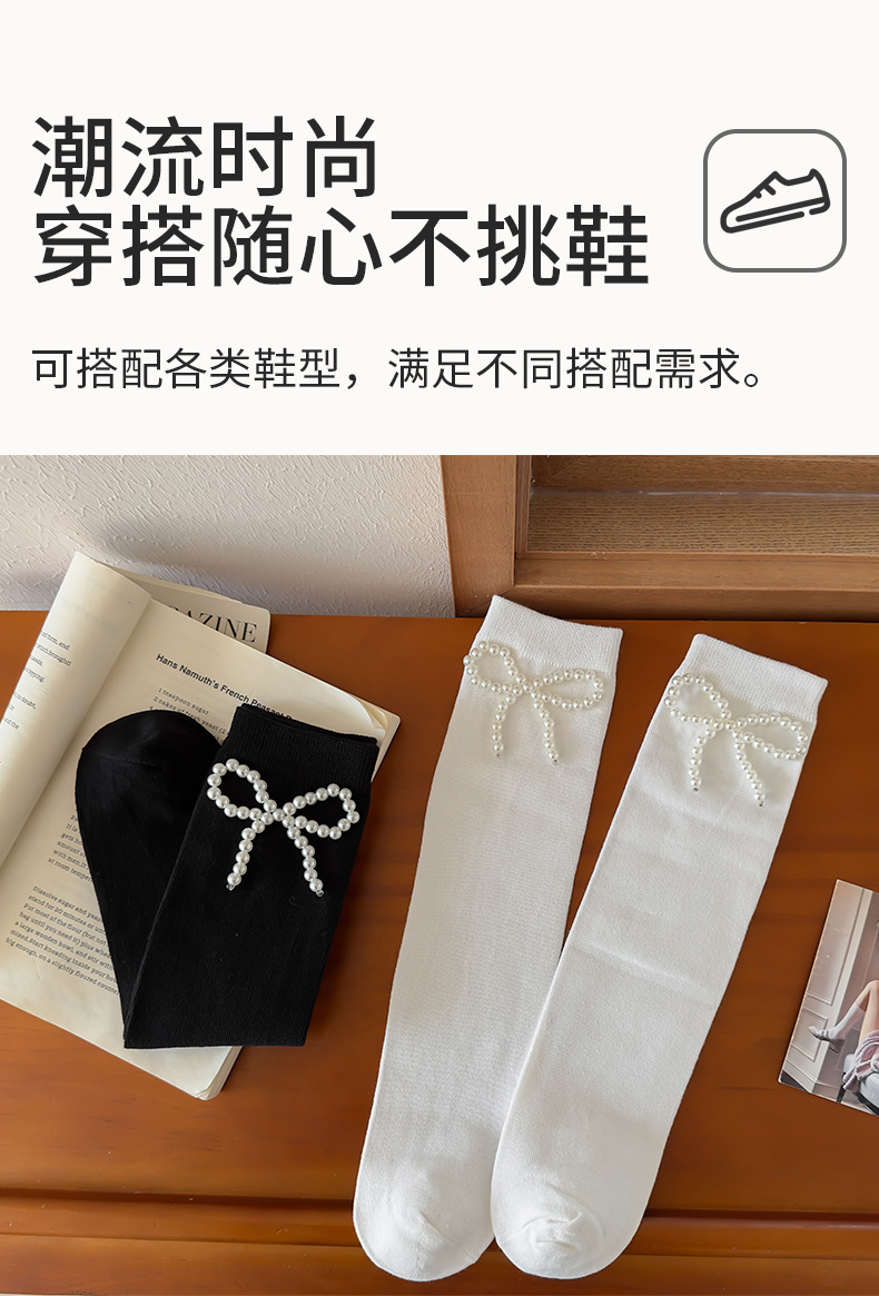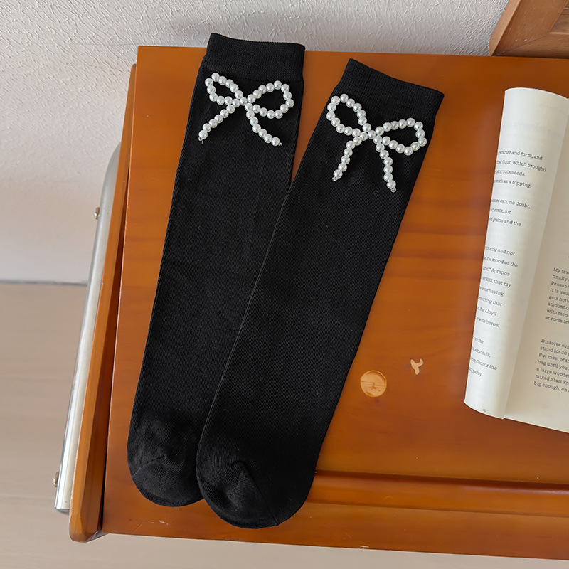 • 블랙 펄 보우 미드 종아리 양말