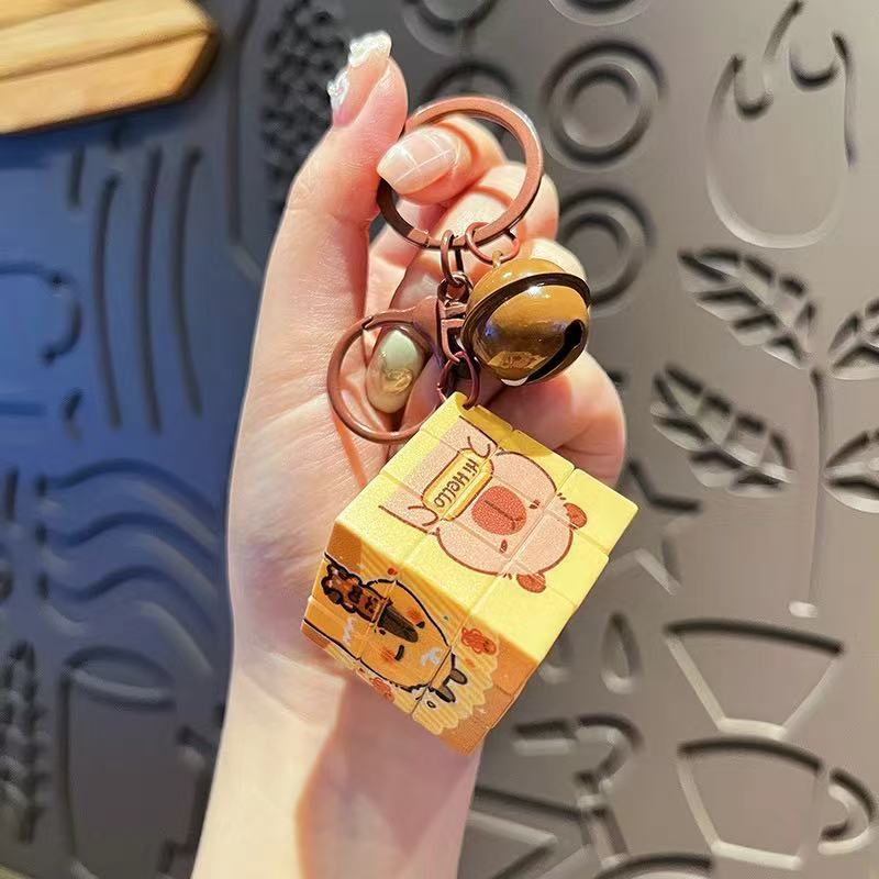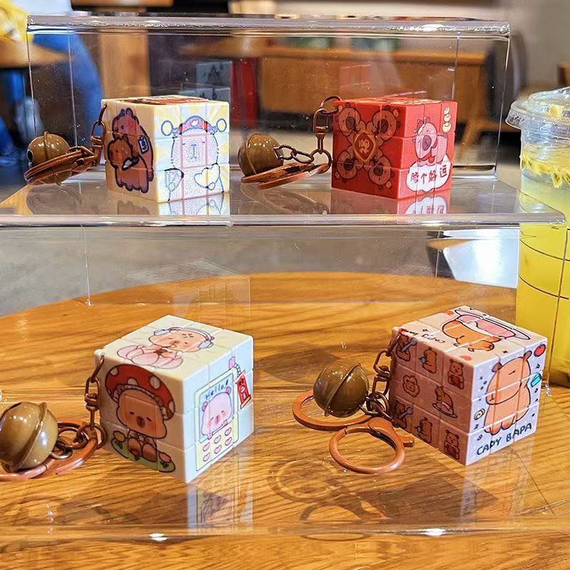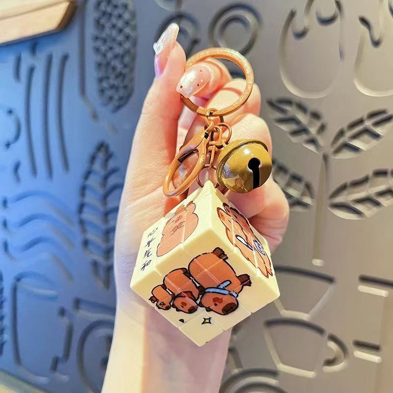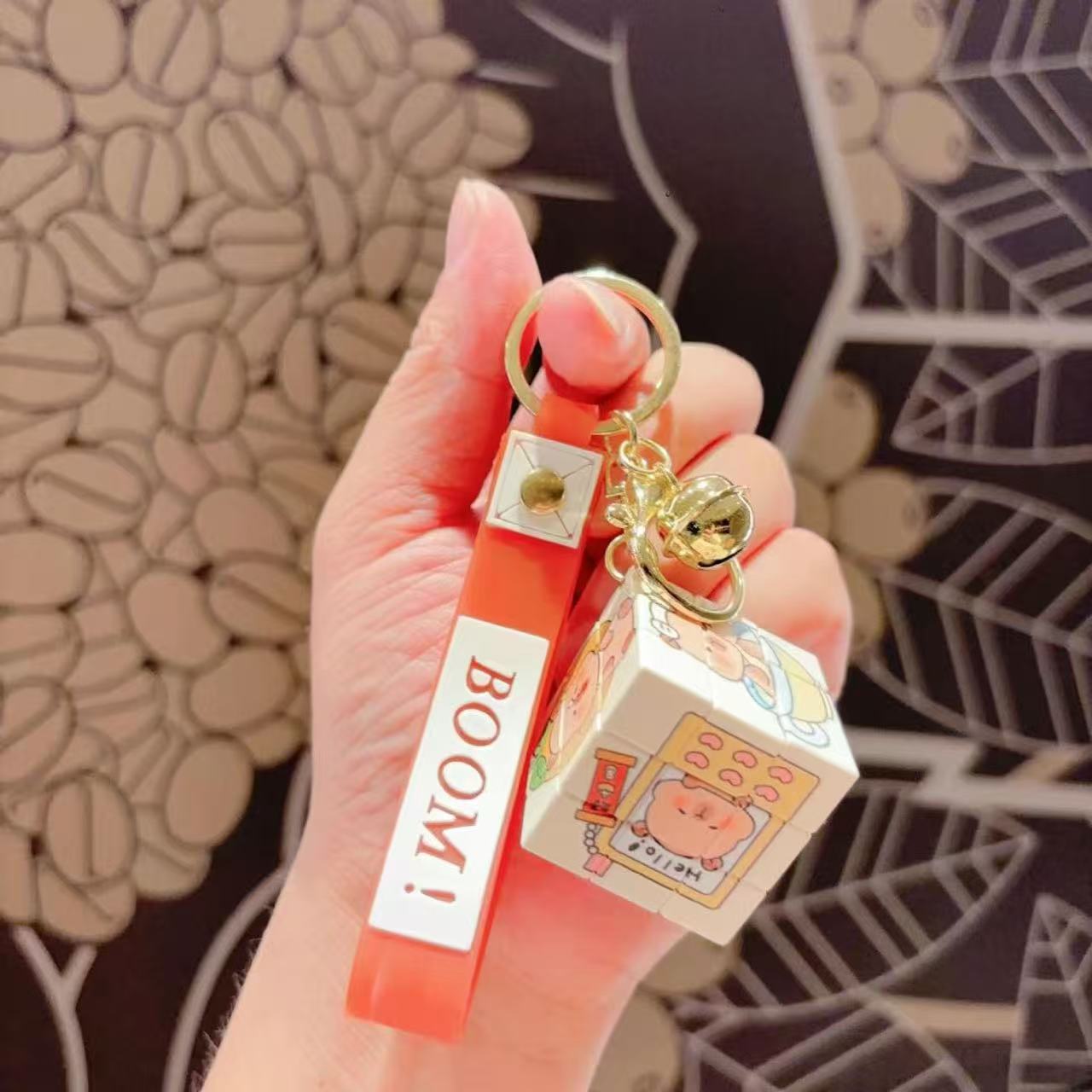카피 발라 루빅의 큐브 키 체인 귀여운 만화 카피 바라 키 체인 커플 가방 펜던트 창조적 인 작은 선물 도매