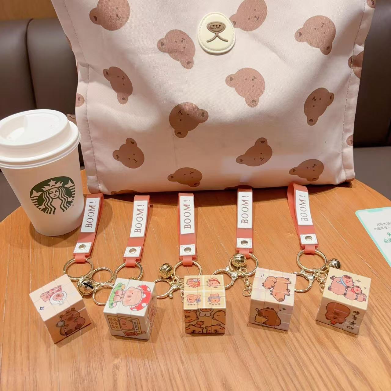 카피 발라 루빅의 큐브 키 체인 귀여운 만화 카피 바라 키 체인 커플 가방 펜던트 창조적 인 작은 선물 도매스토어 가기