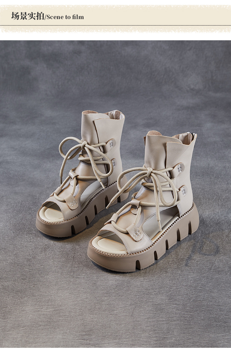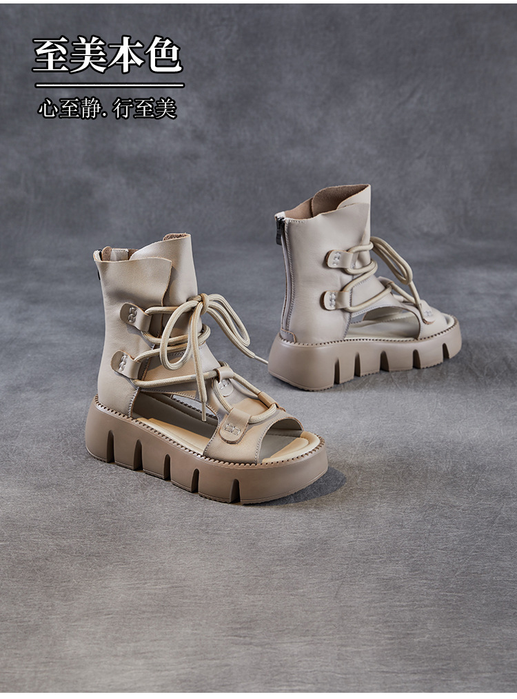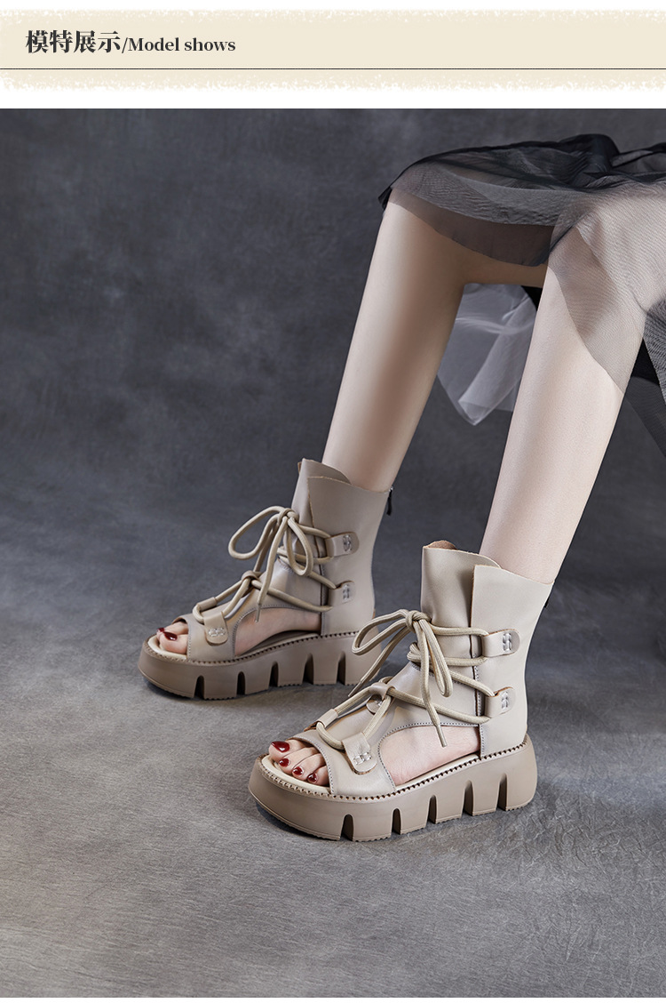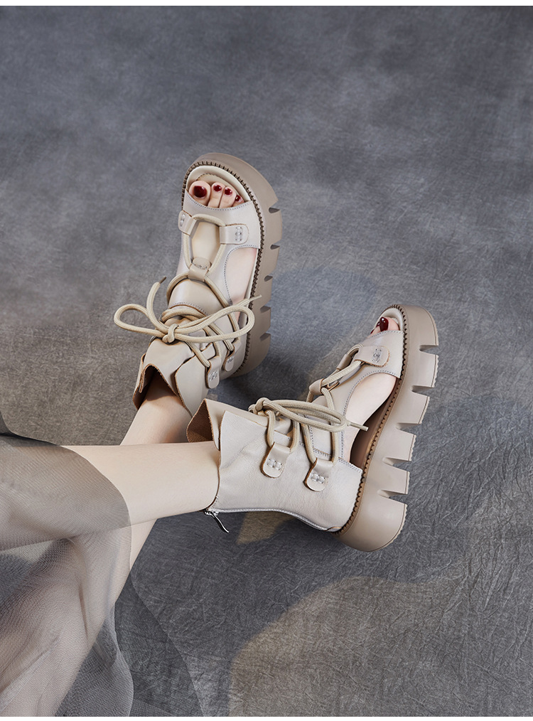 탑 레이어 소 가죽 두꺼운 밑창 중공 로마 신발 정품 가죽 2025 여름 최신 페어 부츠 복고풍 최고 여성 샌들