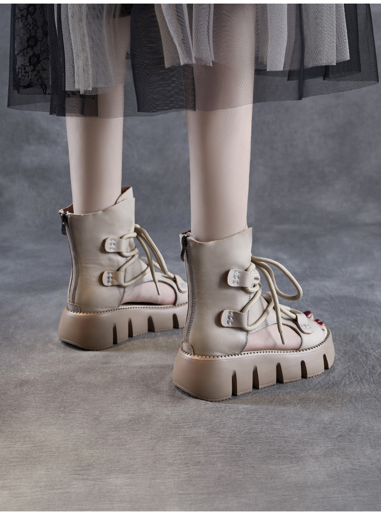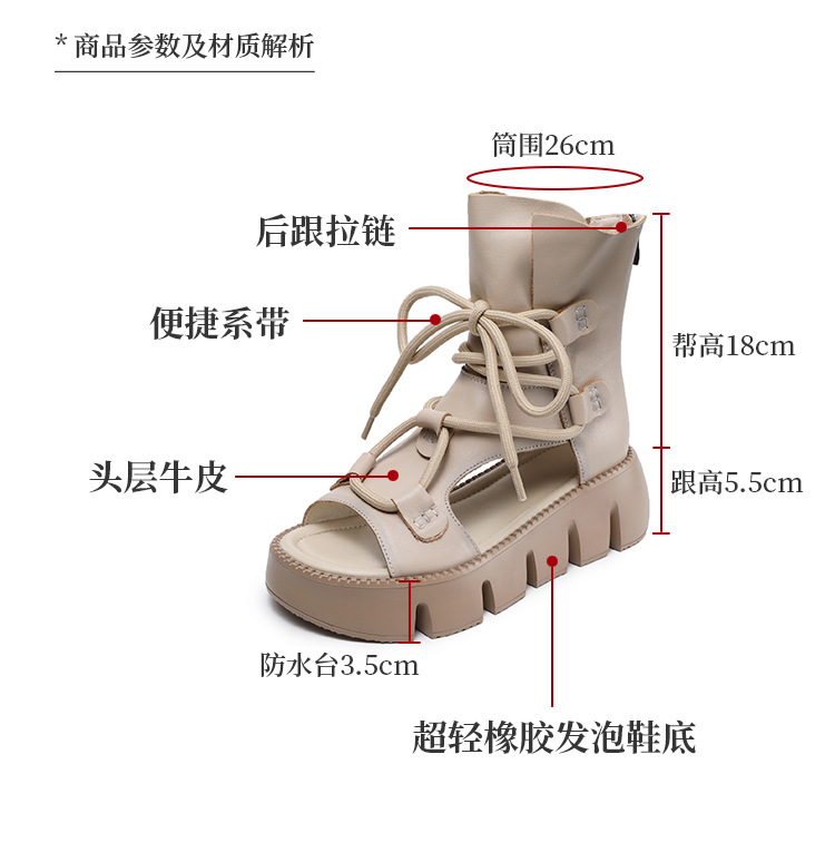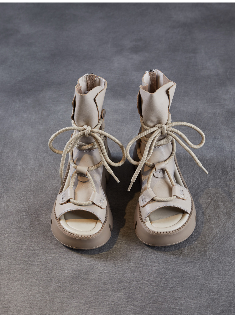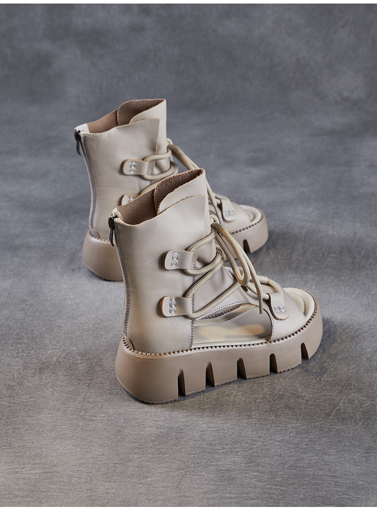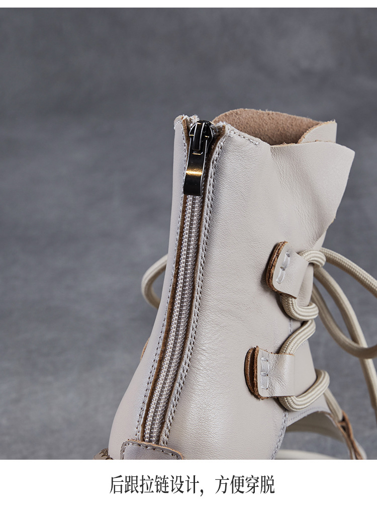 탑 레이어 소 가죽 두꺼운 밑창 중공 로마 신발 정품 가죽 2025 여름 최신 페어 부츠 복고풍 최고 여성 샌들
