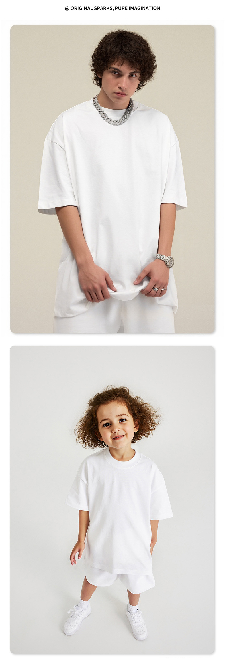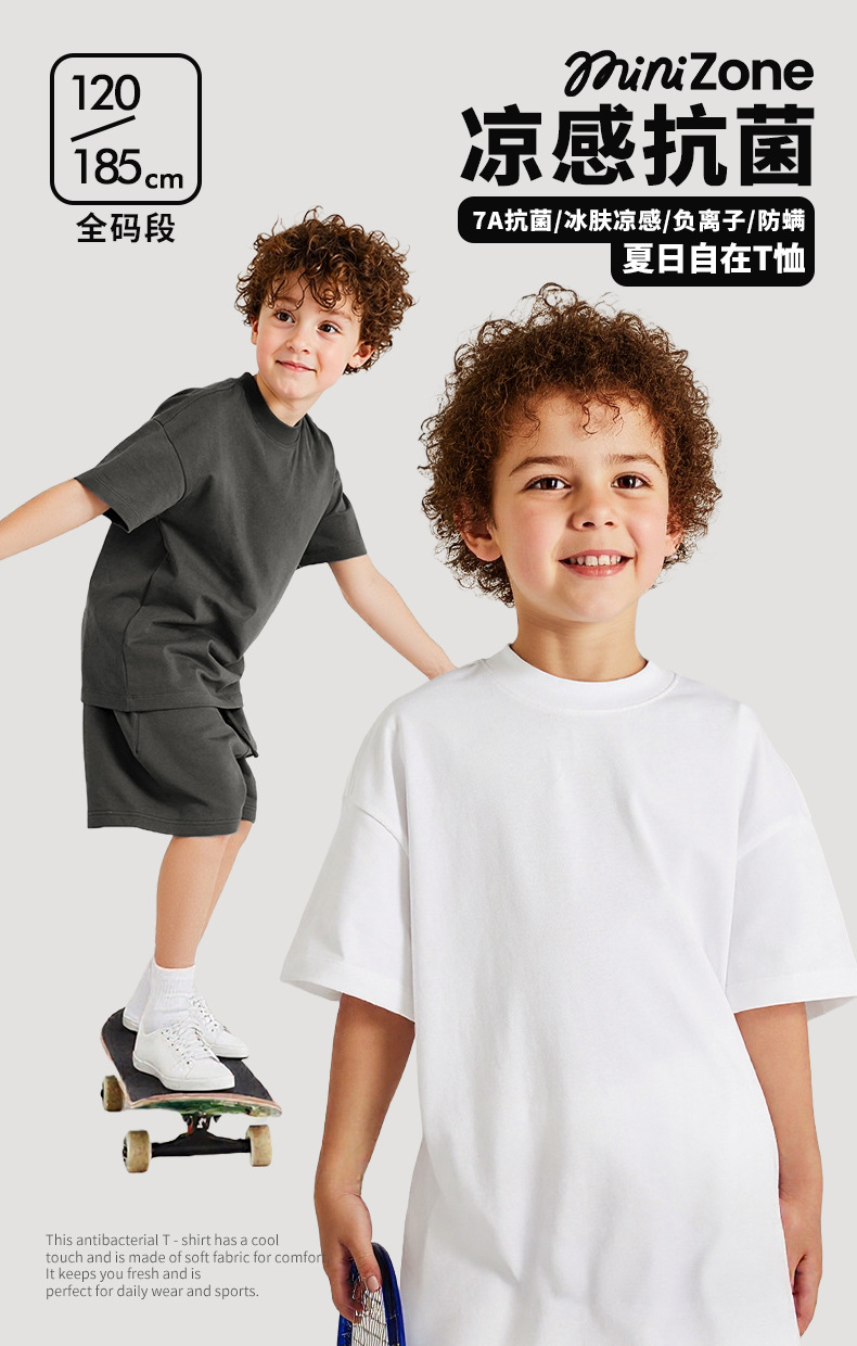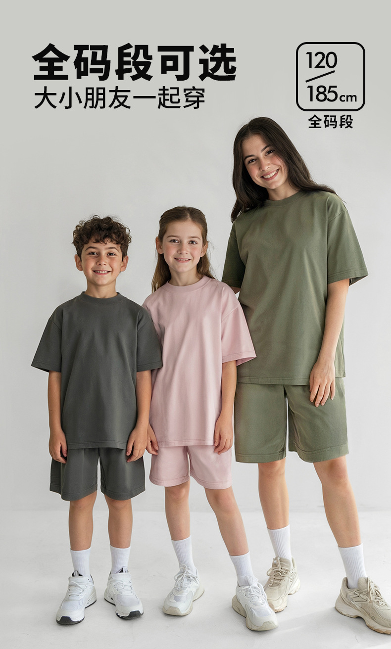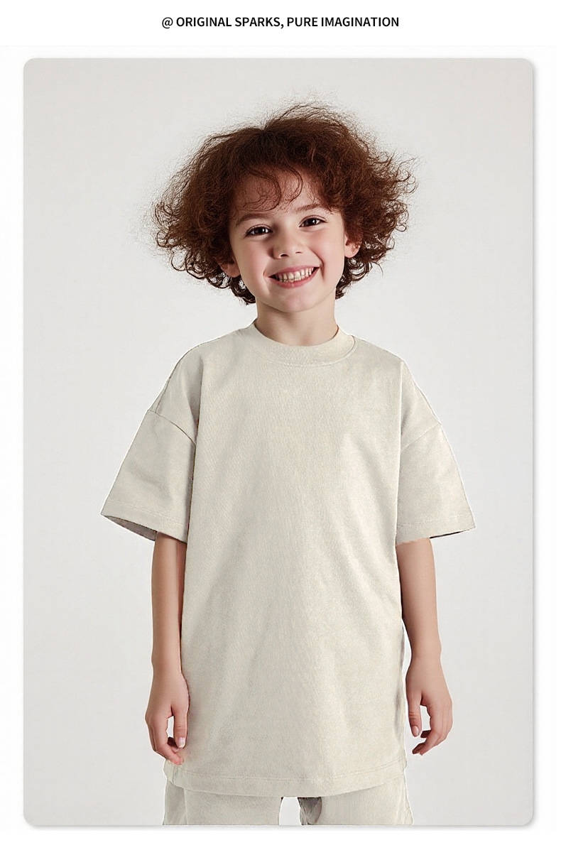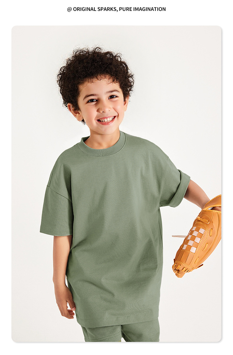 Minizone 큰 어린이 티셔츠 여름 소년 티셔츠 순수 코튼 부모-자식 착용 무거운 티셔츠 소녀 반팔 탑 아동 의류스토어 가기