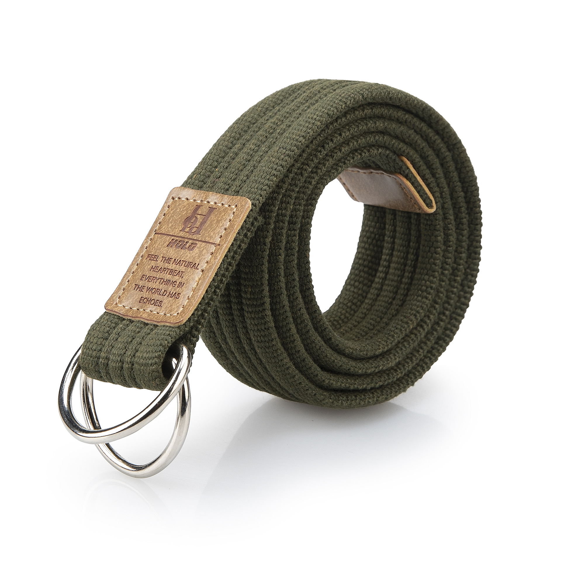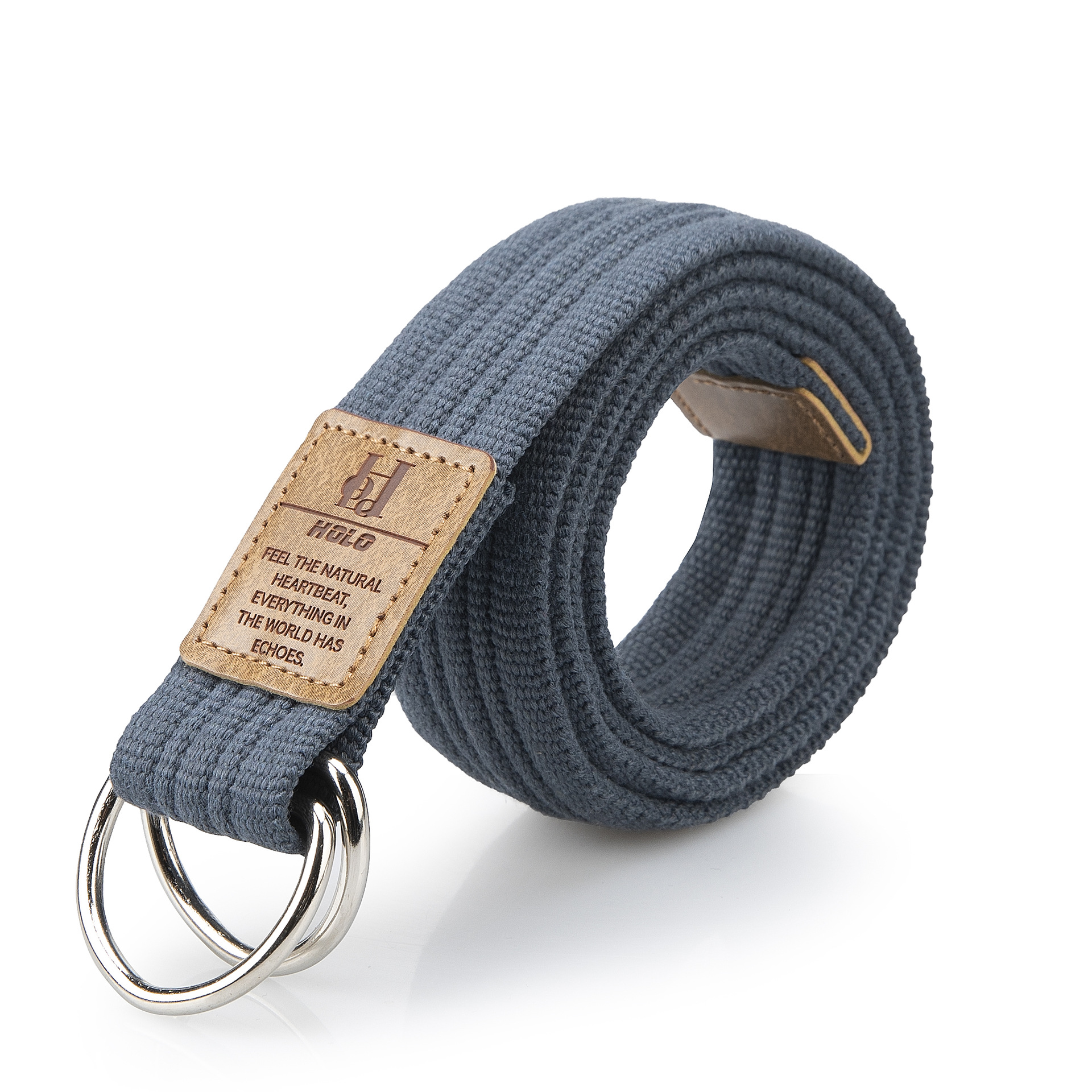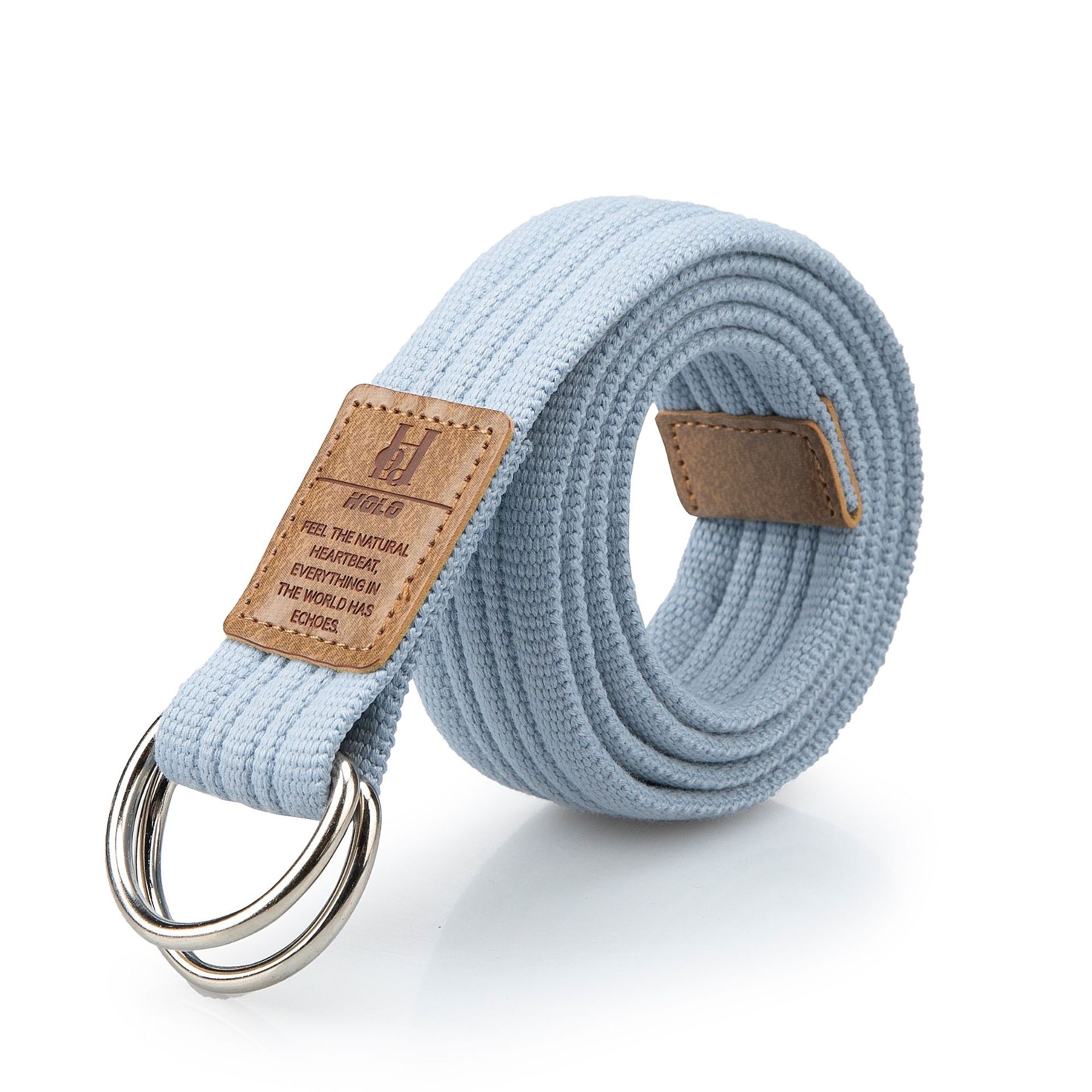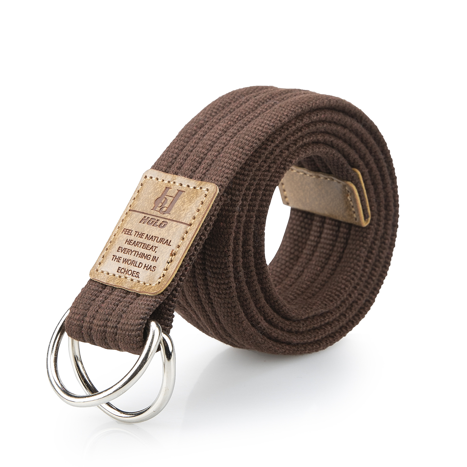 남성과 여성의 트렌디한 한국식 비천공 심플 학생 캔버스 더블 링 버클 벨트 다용도 캐주얼 복고풍 바지 벨트
