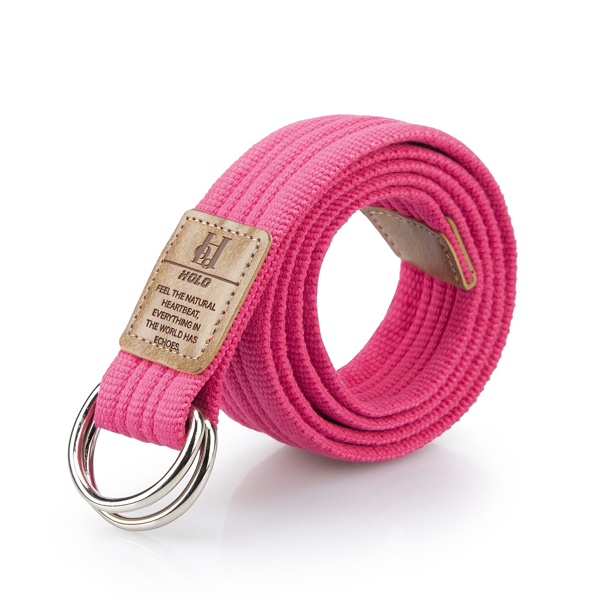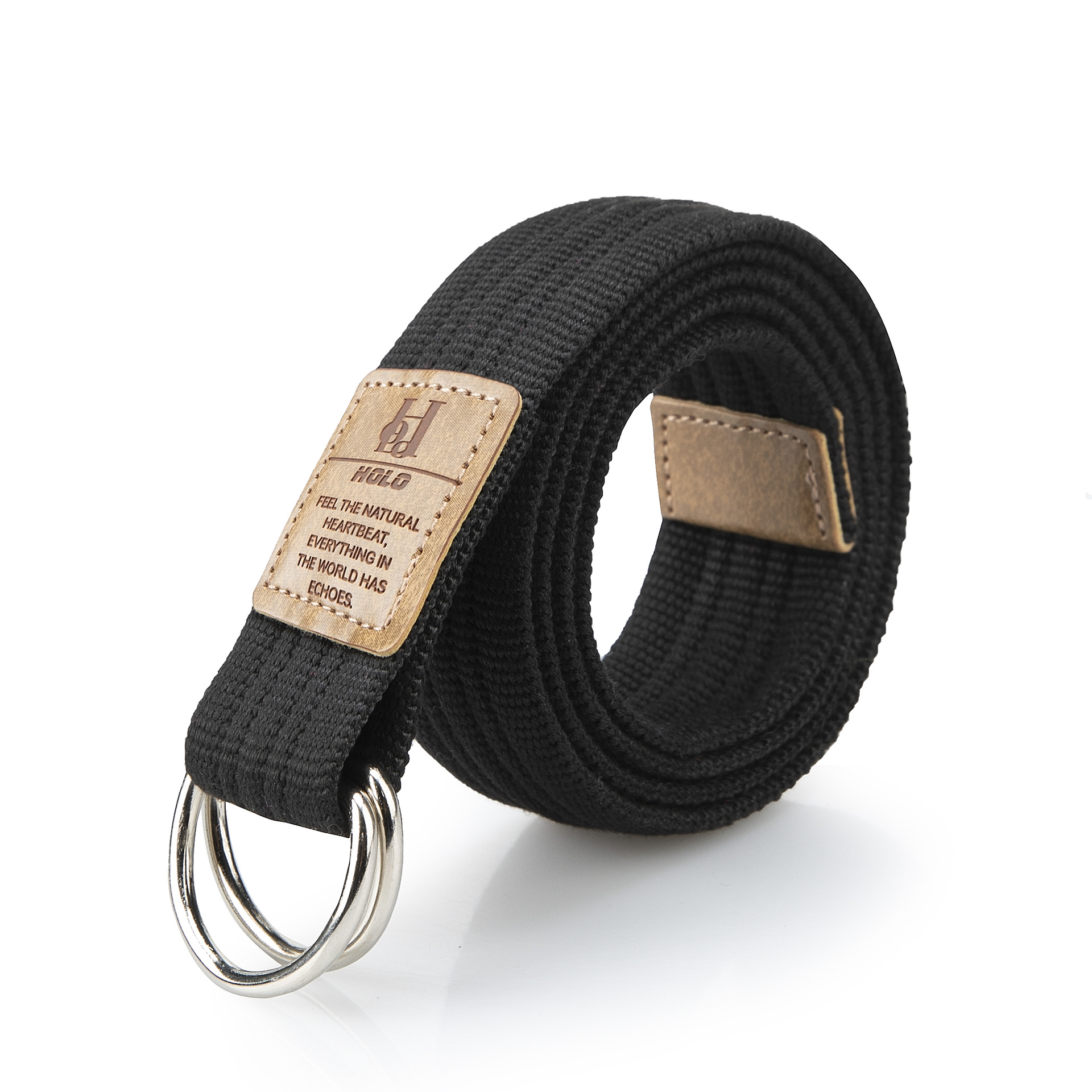남성과 여성의 트렌디한 한국식 비천공 심플 학생 캔버스 더블 링 버클 벨트 다용도 캐주얼 복고풍 바지 벨트스토어 가기