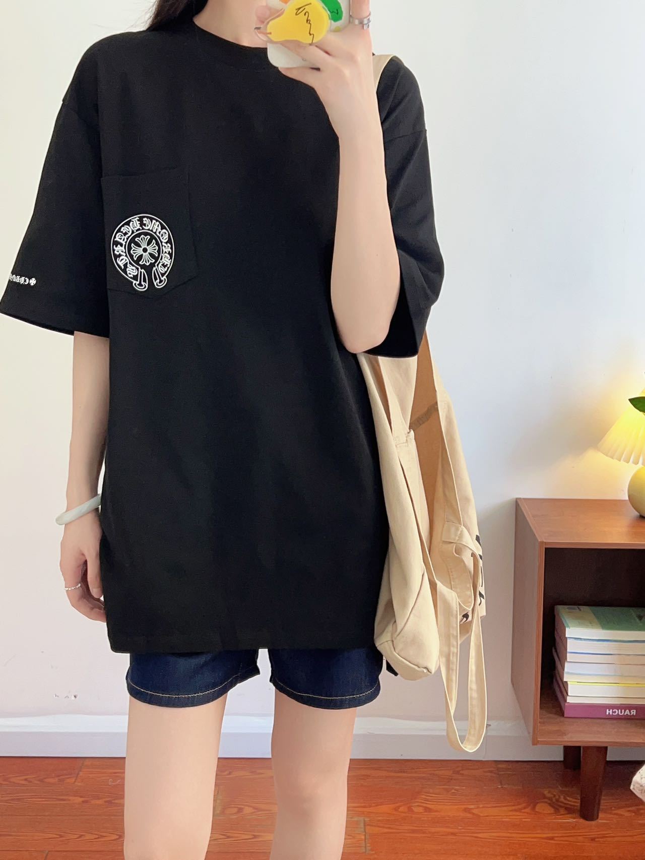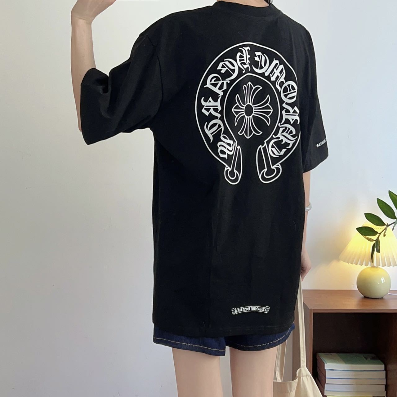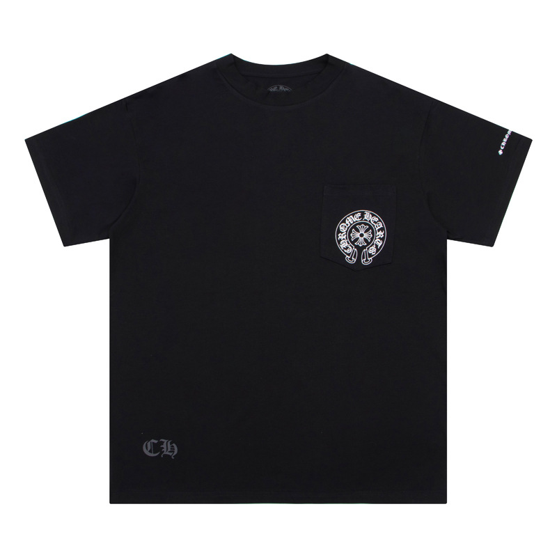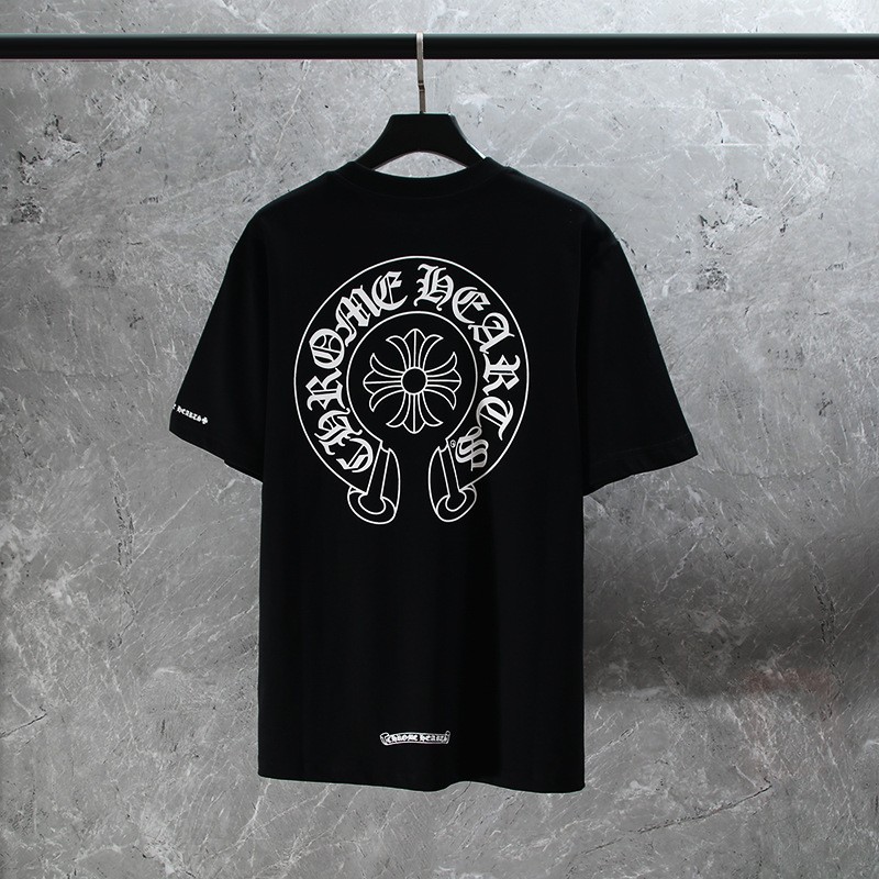 크롬하츠 고품질 아메리칸 크롬 열변색 워싱 및 디스트레스드 반팔 남성용 티셔츠스토어 가기