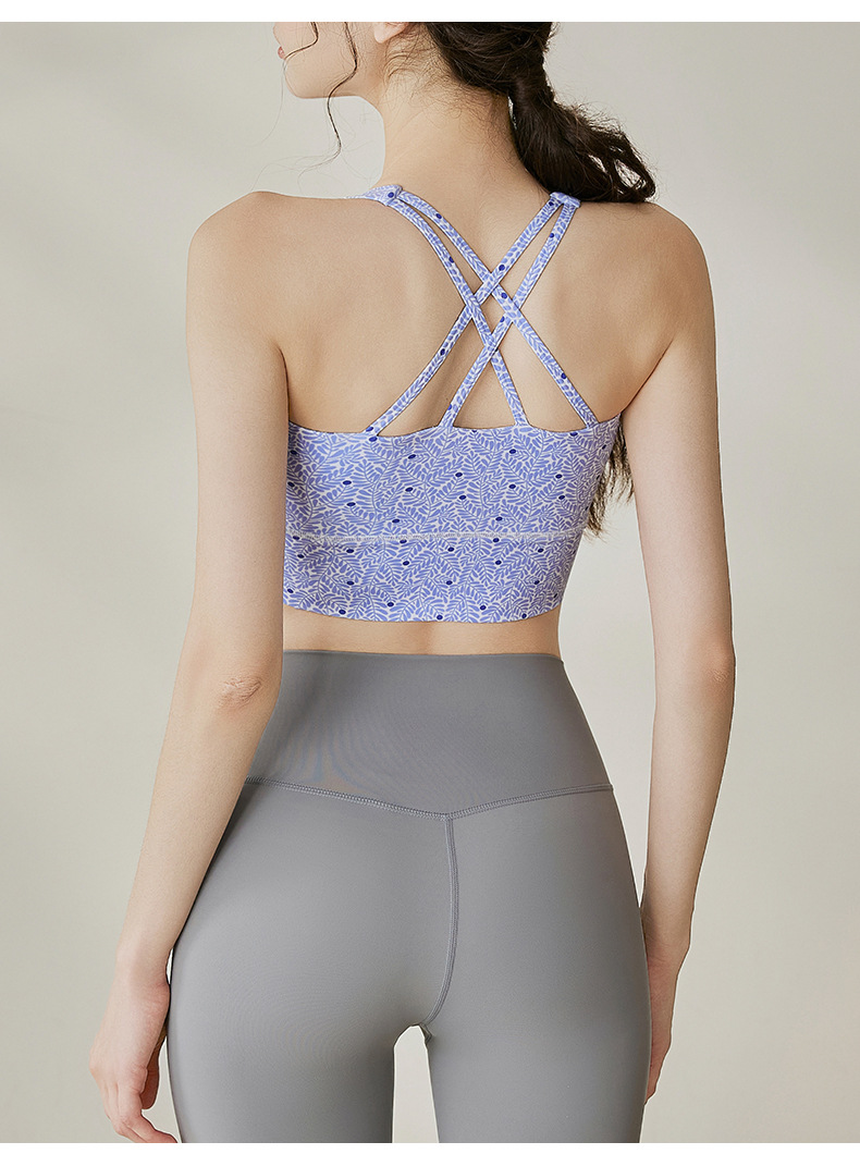 여성용 누드 느낌 요가 스포츠 브라 2026 여름 신상품 충격 방지 브라 피트니스 프린트 뷰티 백탑