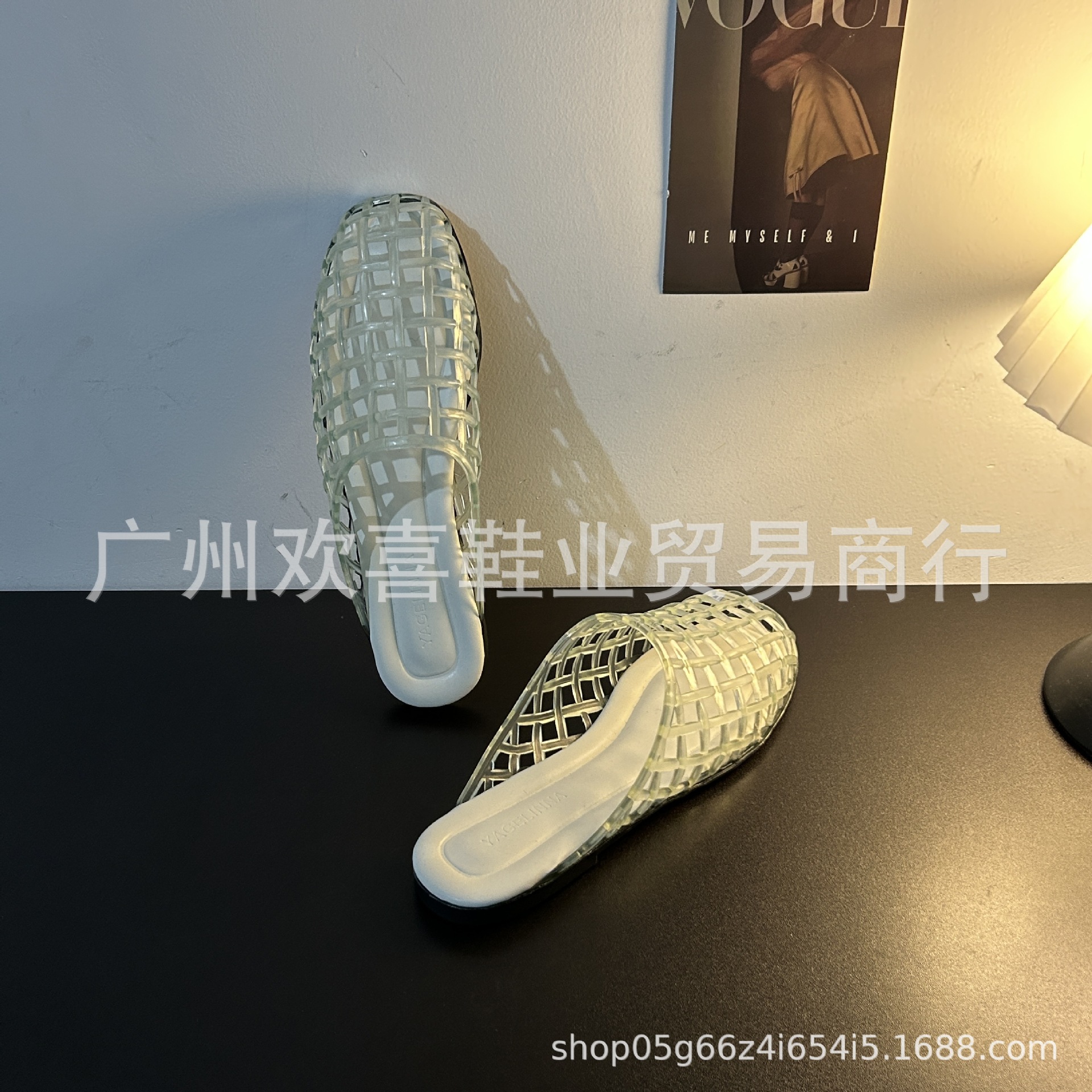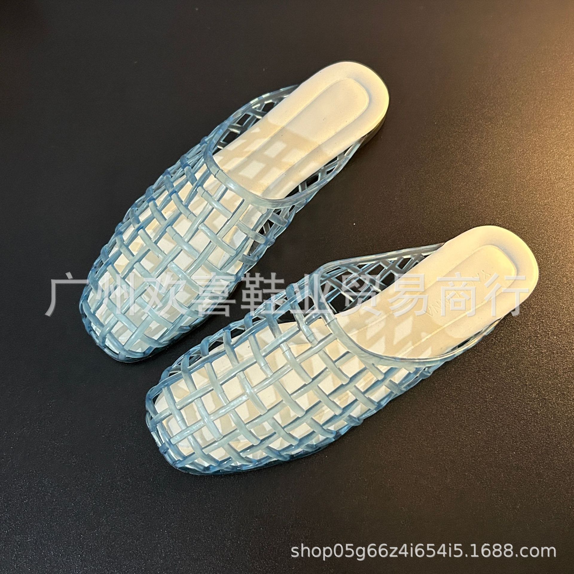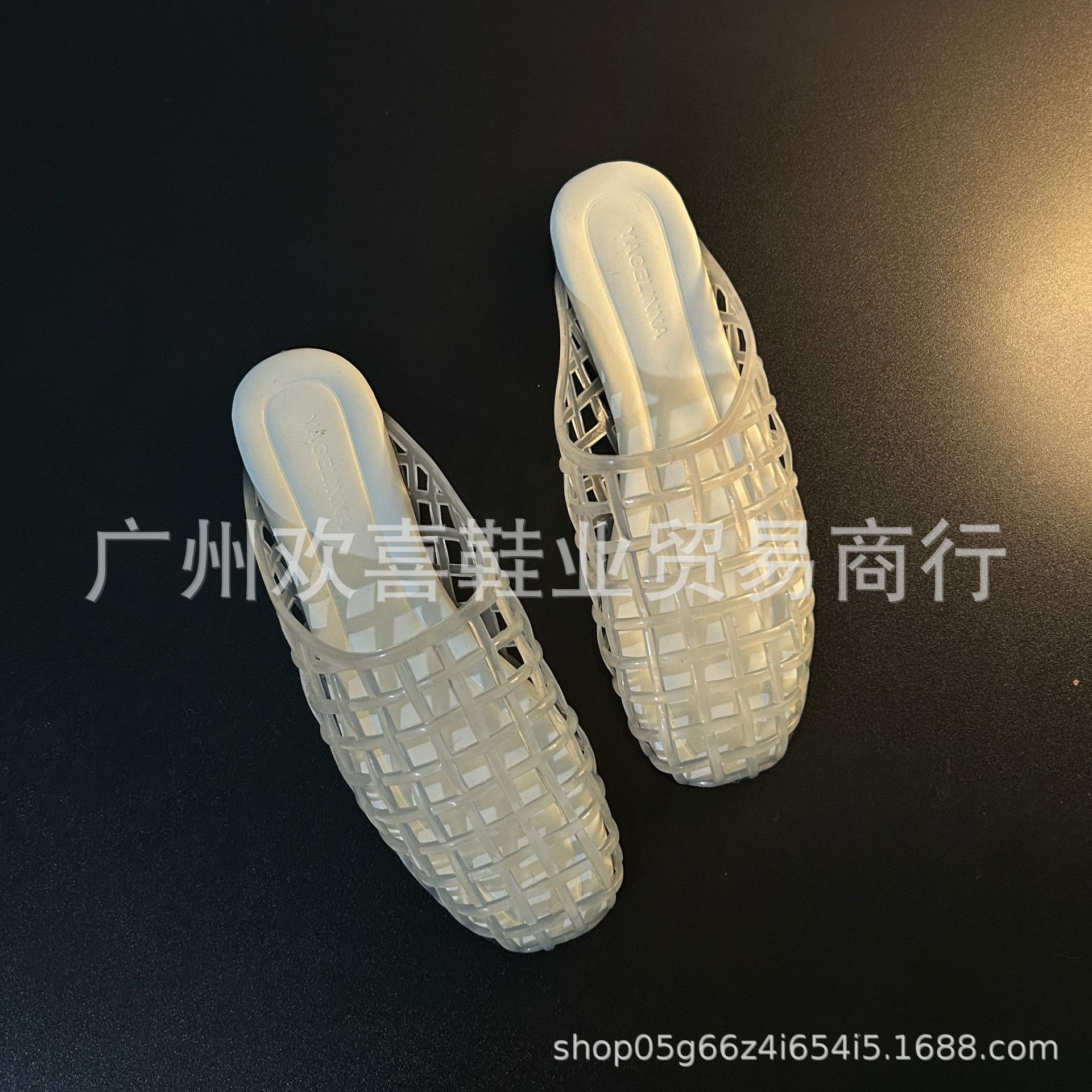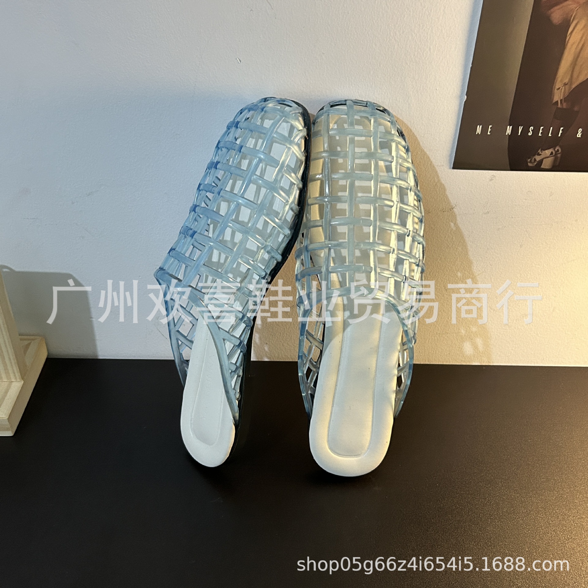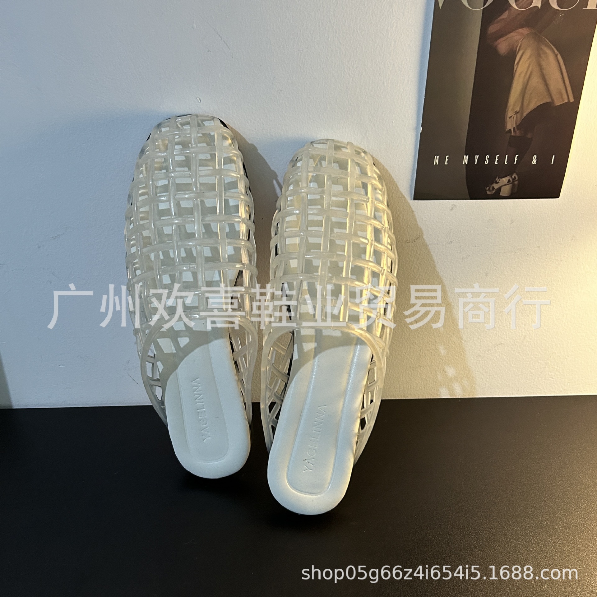 국경 간 구멍 신발 슬리퍼 여성의 2025 새로운 여름 플랫 낚시 그물 구멍 신발 여성 신발 빈 크리스탈 젤리 신발스토어 가기