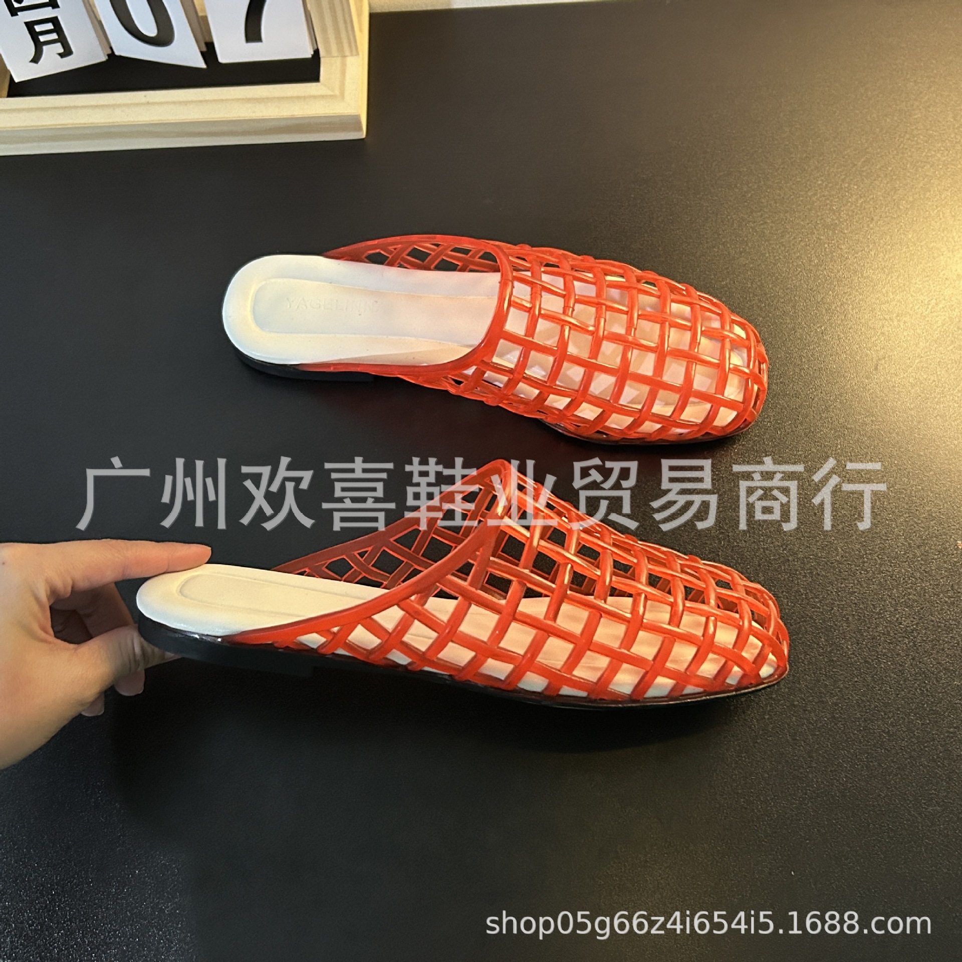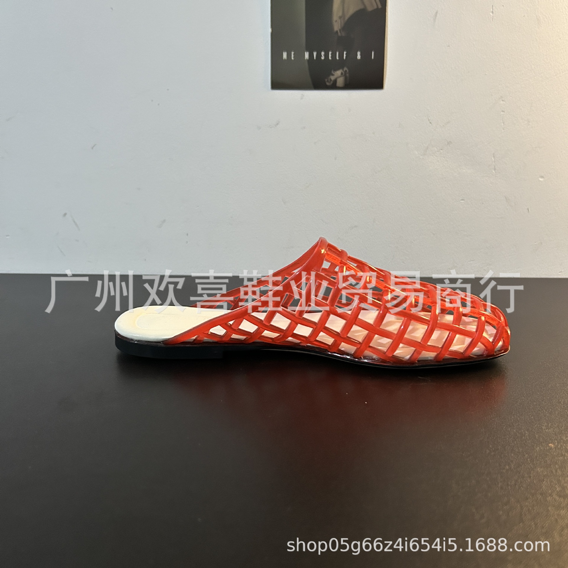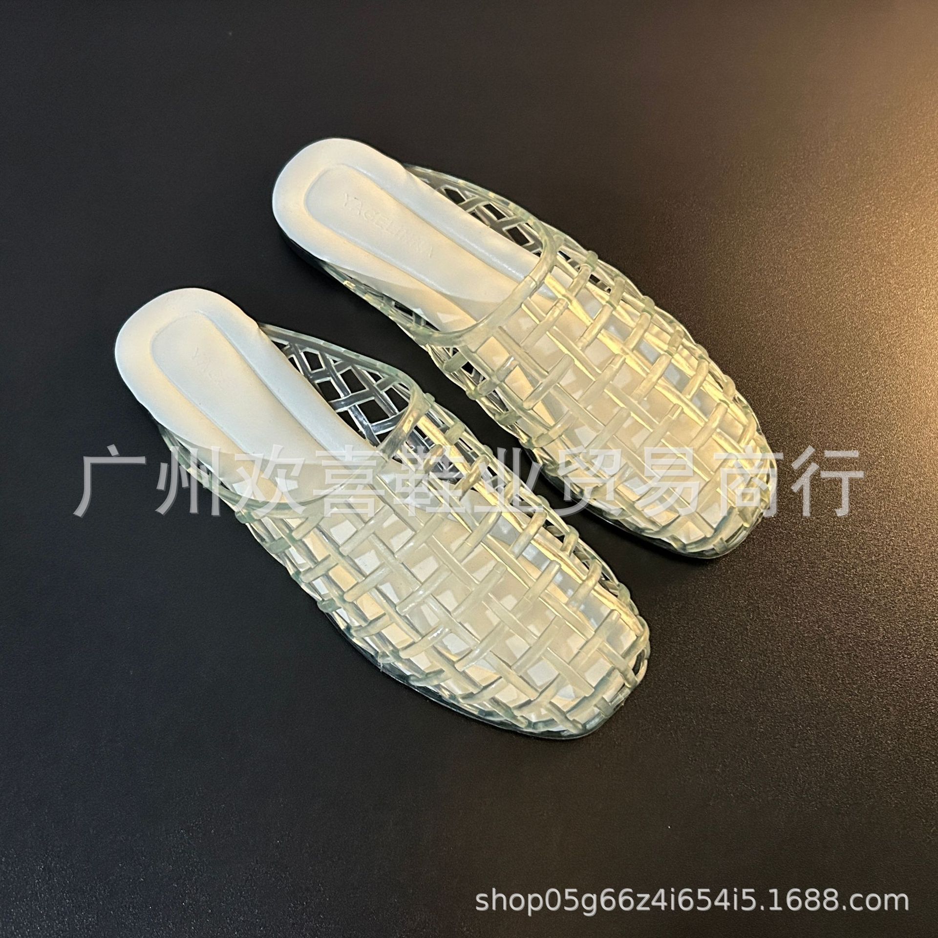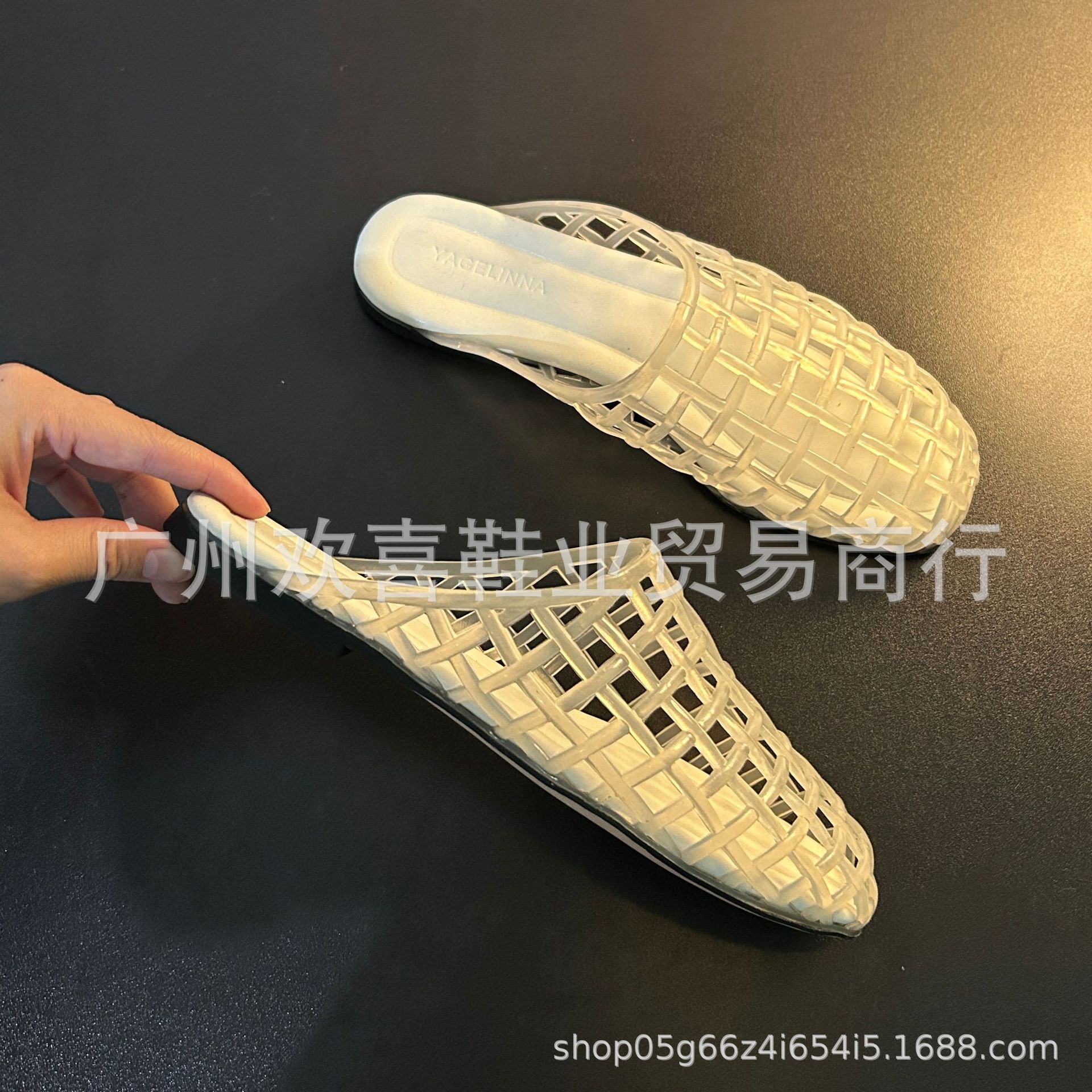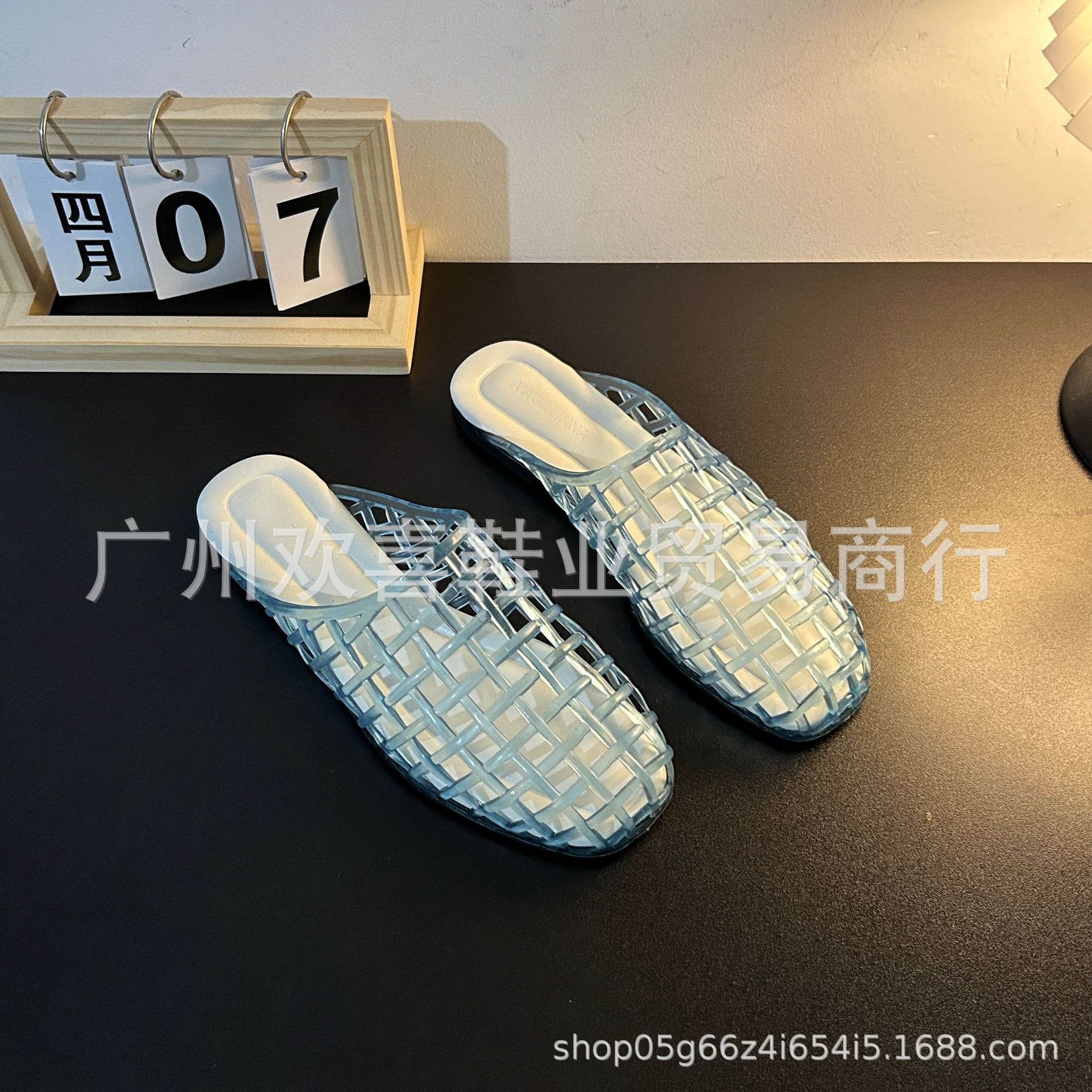 국경 간 구멍 신발 슬리퍼 여성의 2025 새로운 여름 플랫 낚시 그물 구멍 신발 여성 신발 빈 크리스탈 젤리 신발스토어 가기