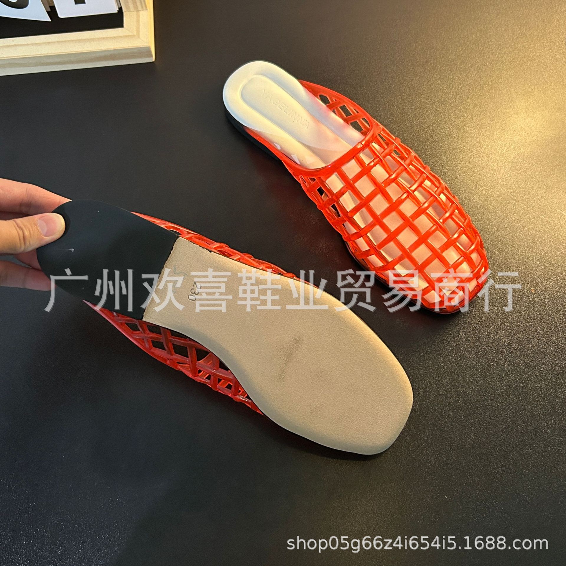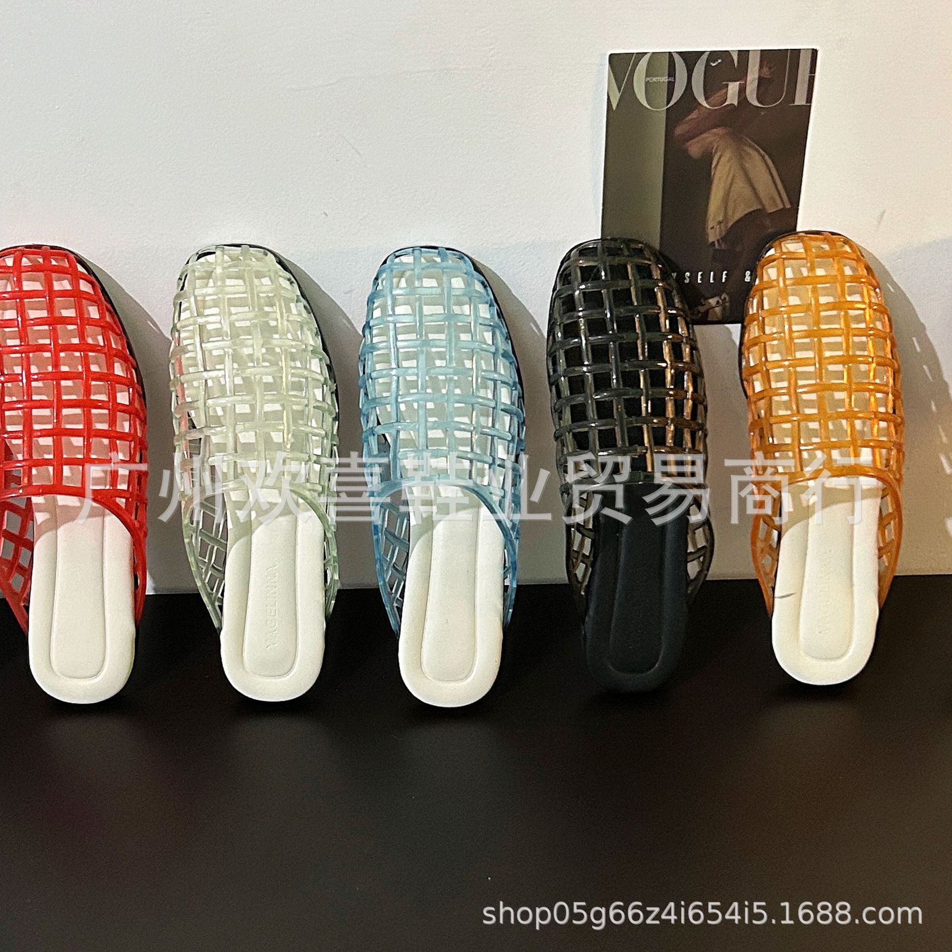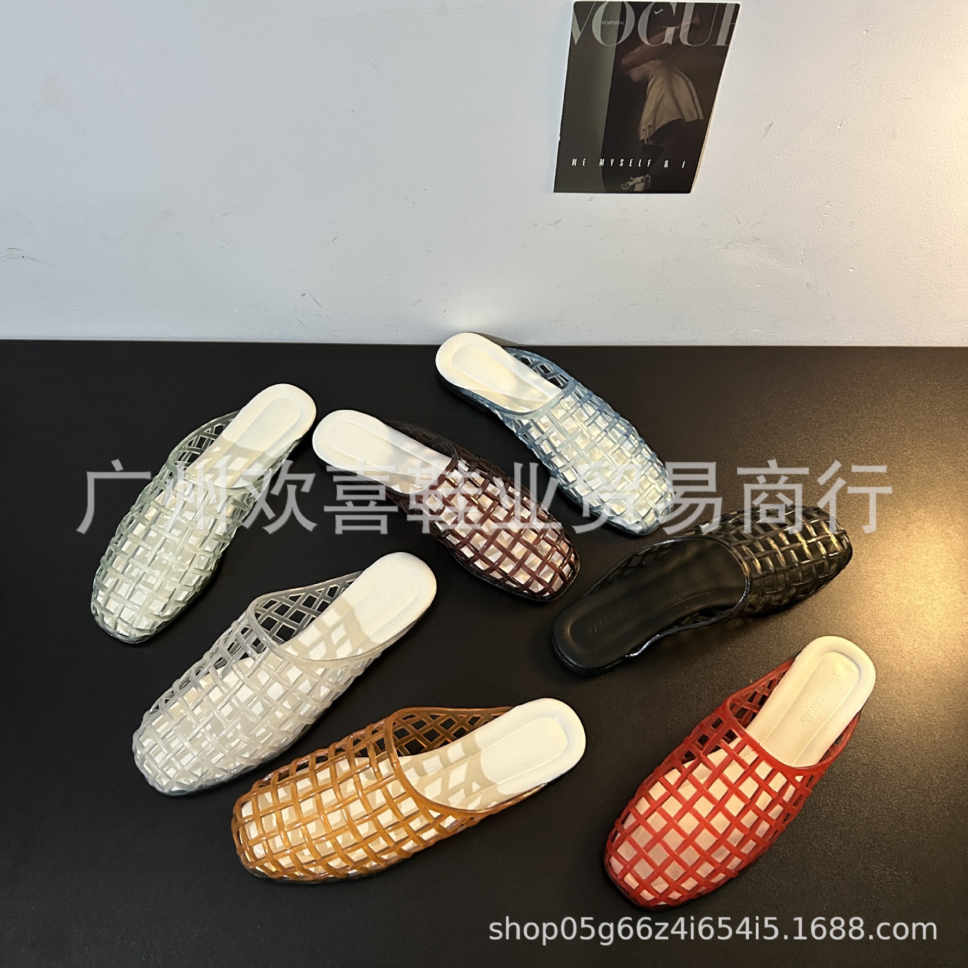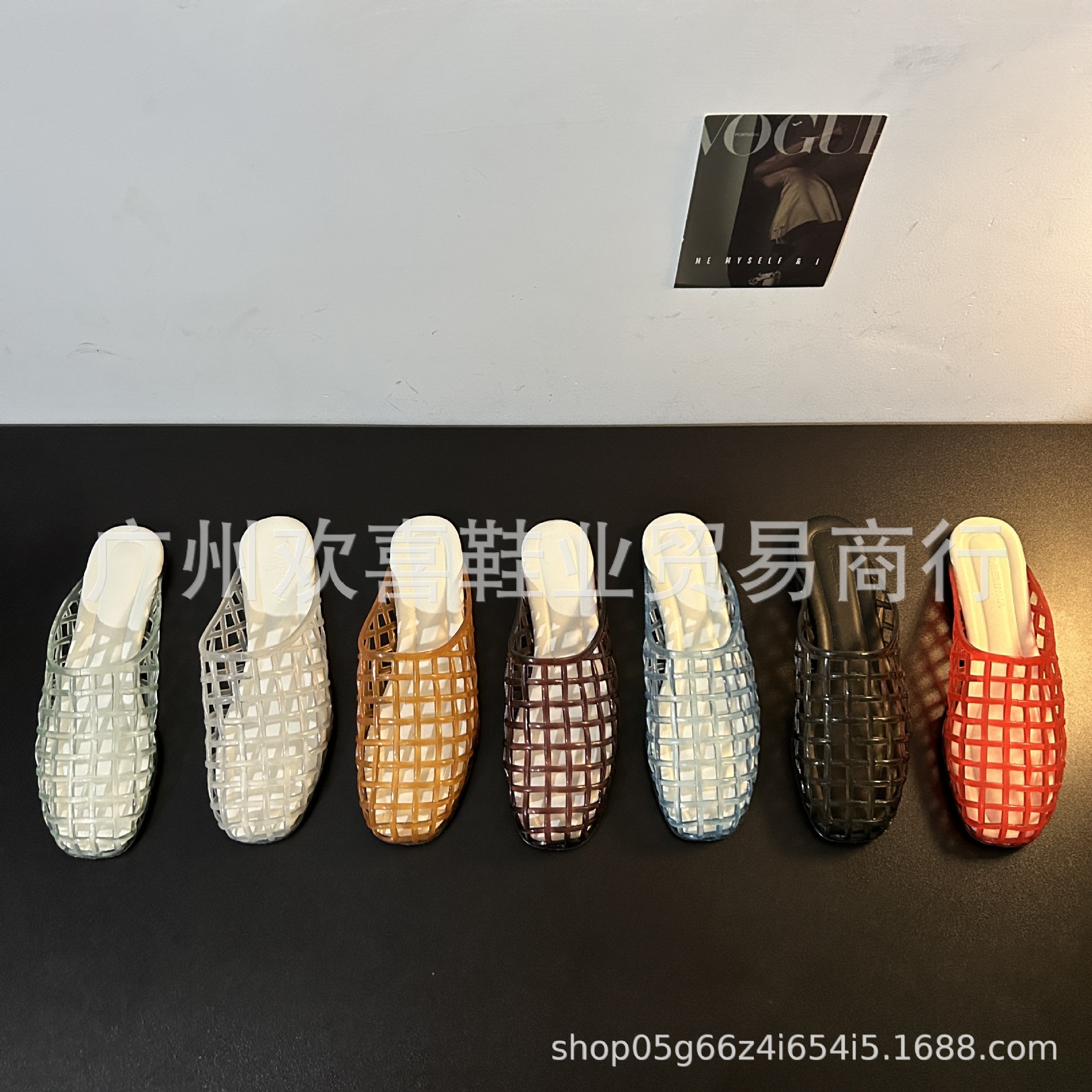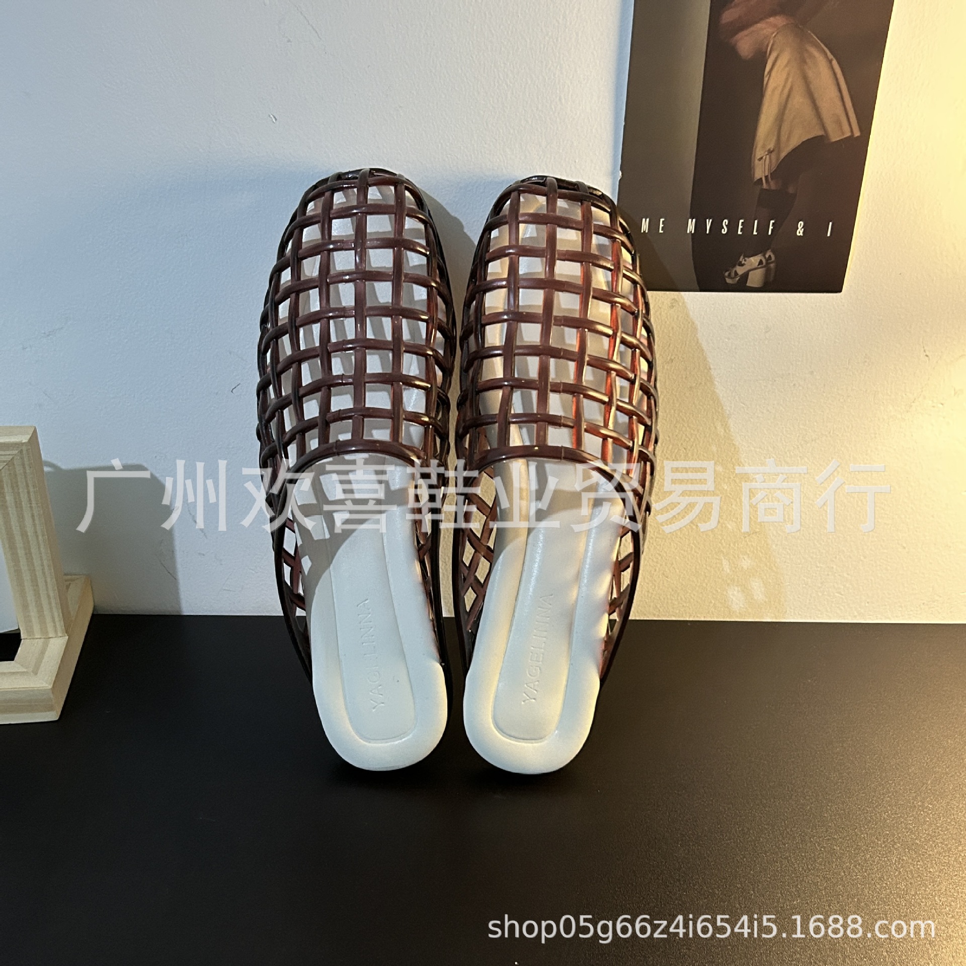 국경 간 구멍 신발 슬리퍼 여성의 2025 새로운 여름 플랫 낚시 그물 구멍 신발 여성 신발 빈 크리스탈 젤리 신발스토어 가기