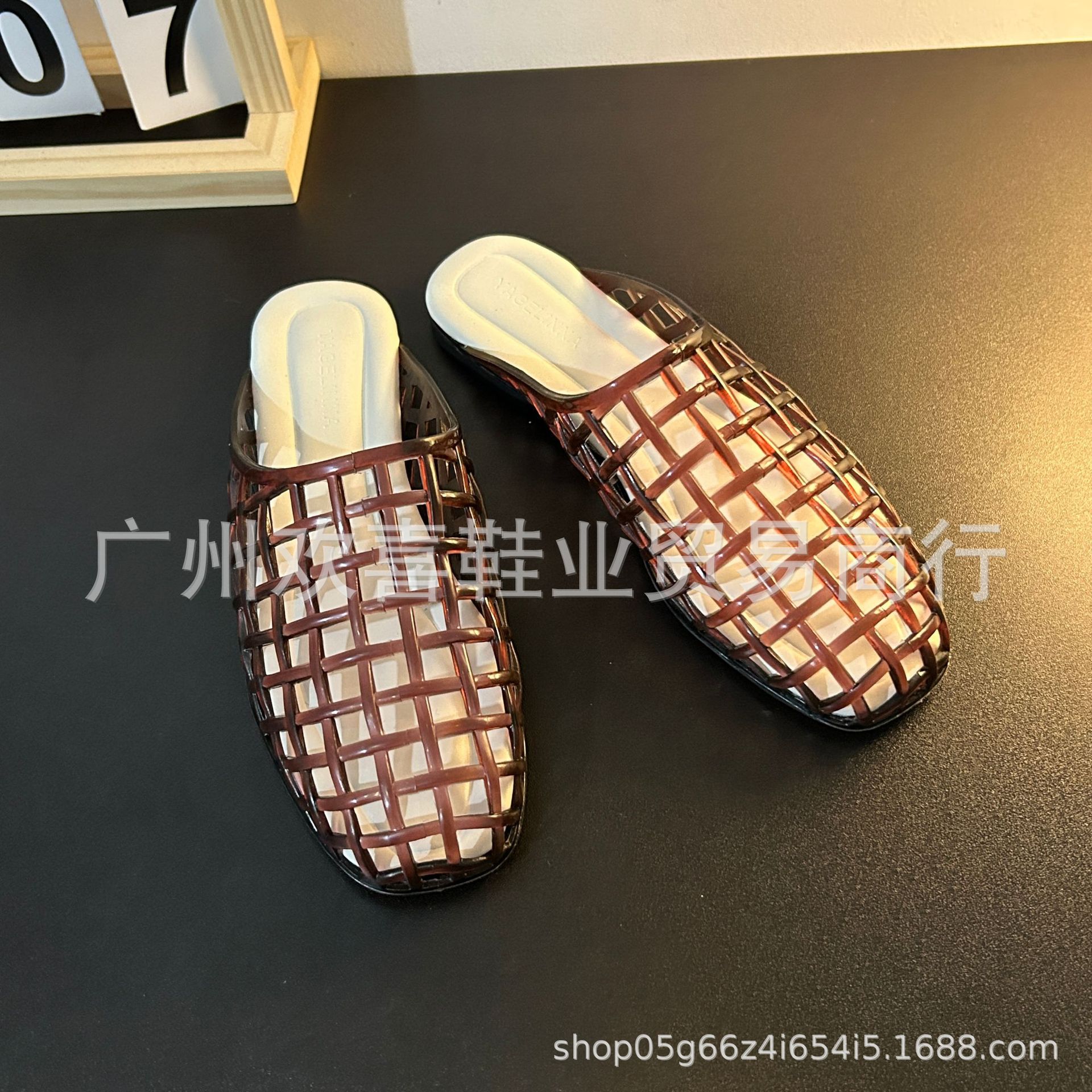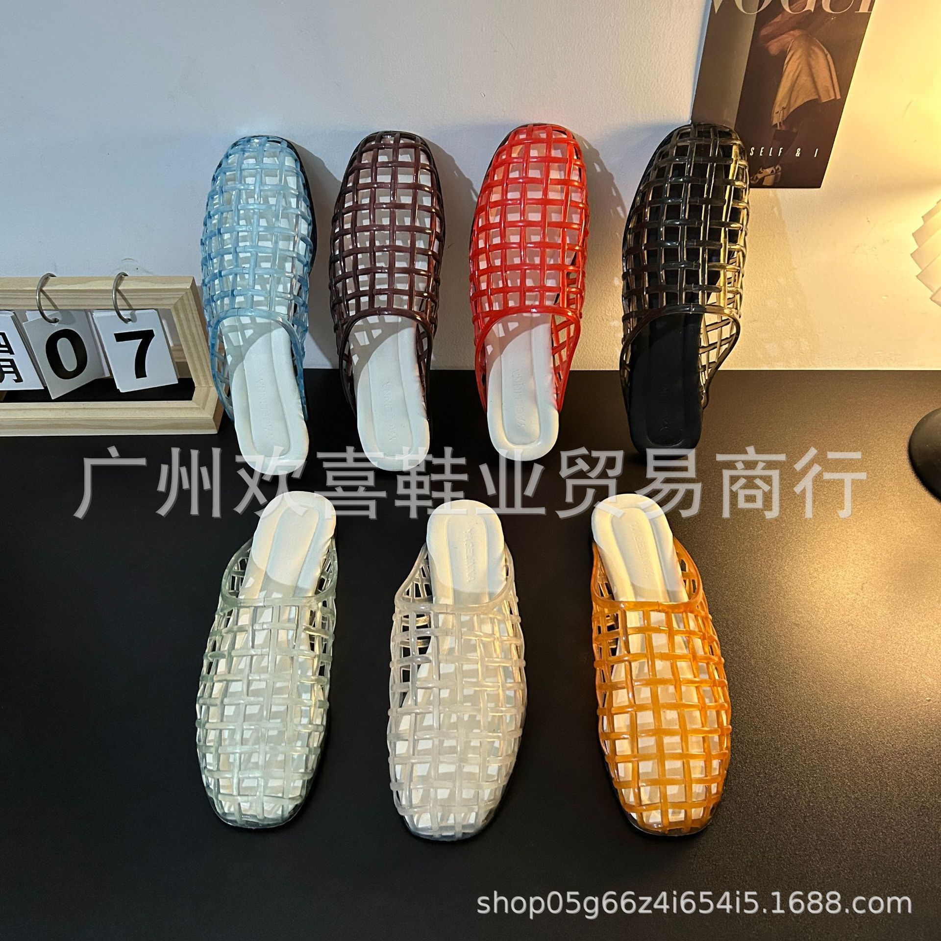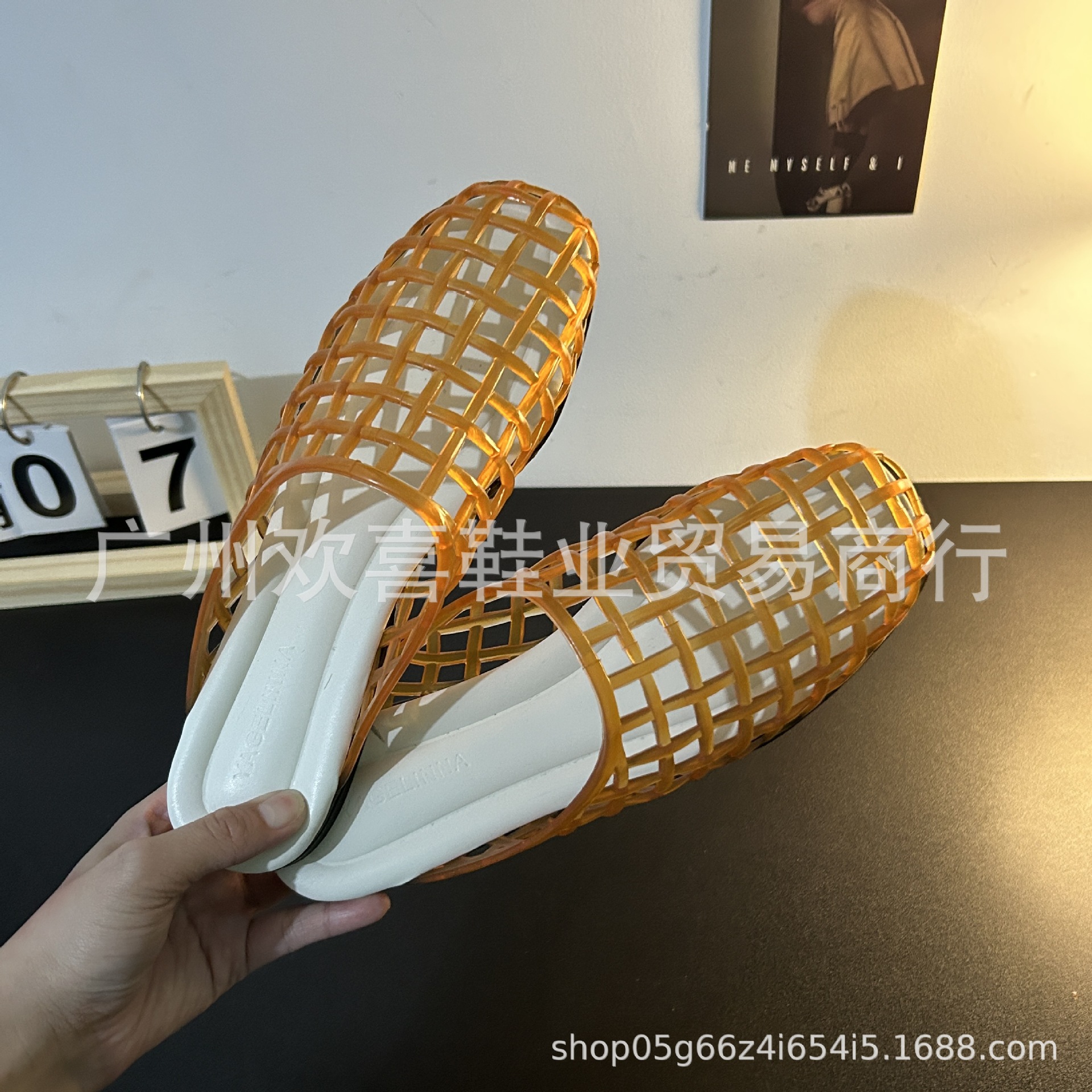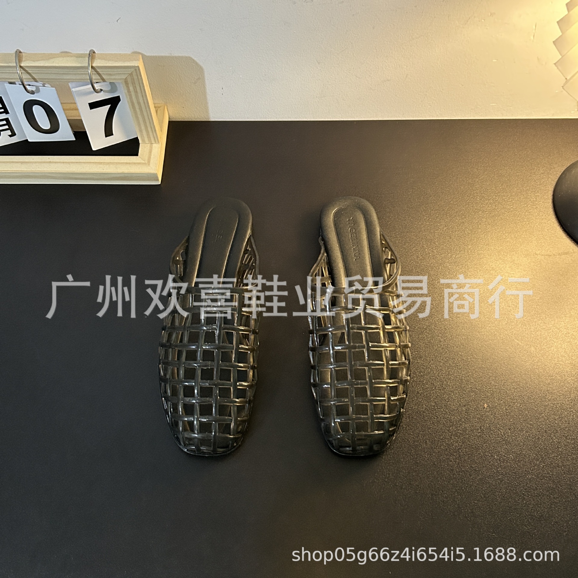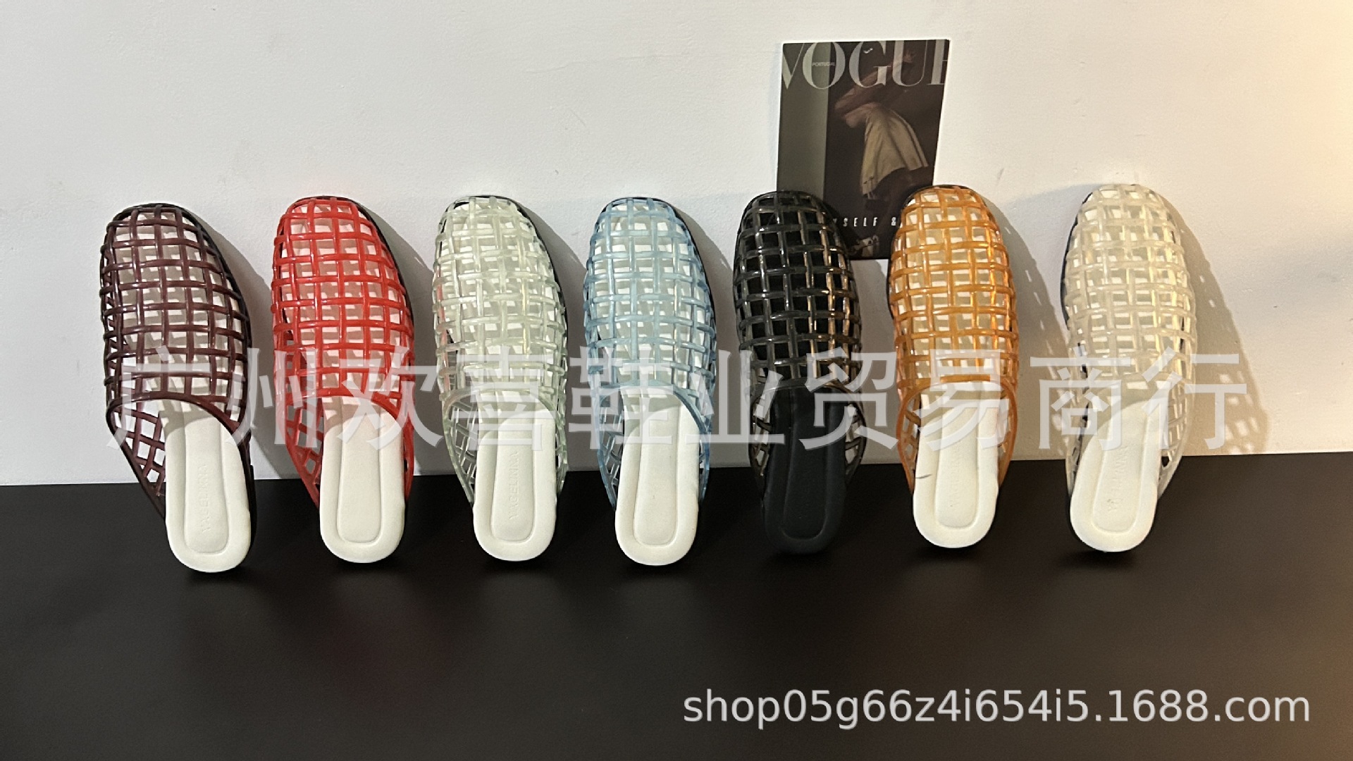 국경 간 구멍 신발 슬리퍼 여성의 2025 새로운 여름 플랫 낚시 그물 구멍 신발 여성 신발 빈 크리스탈 젤리 신발스토어 가기