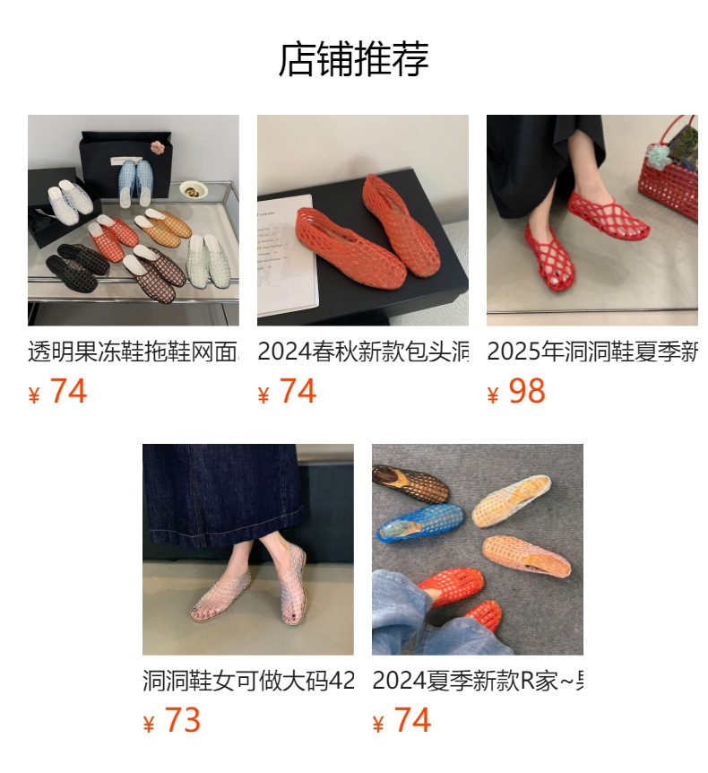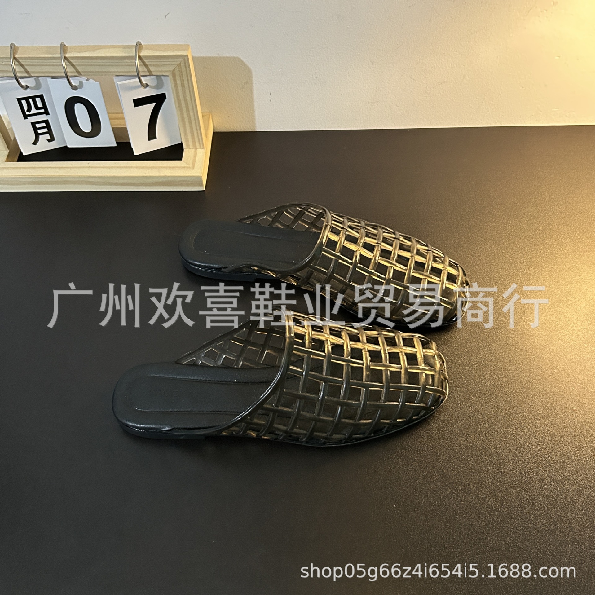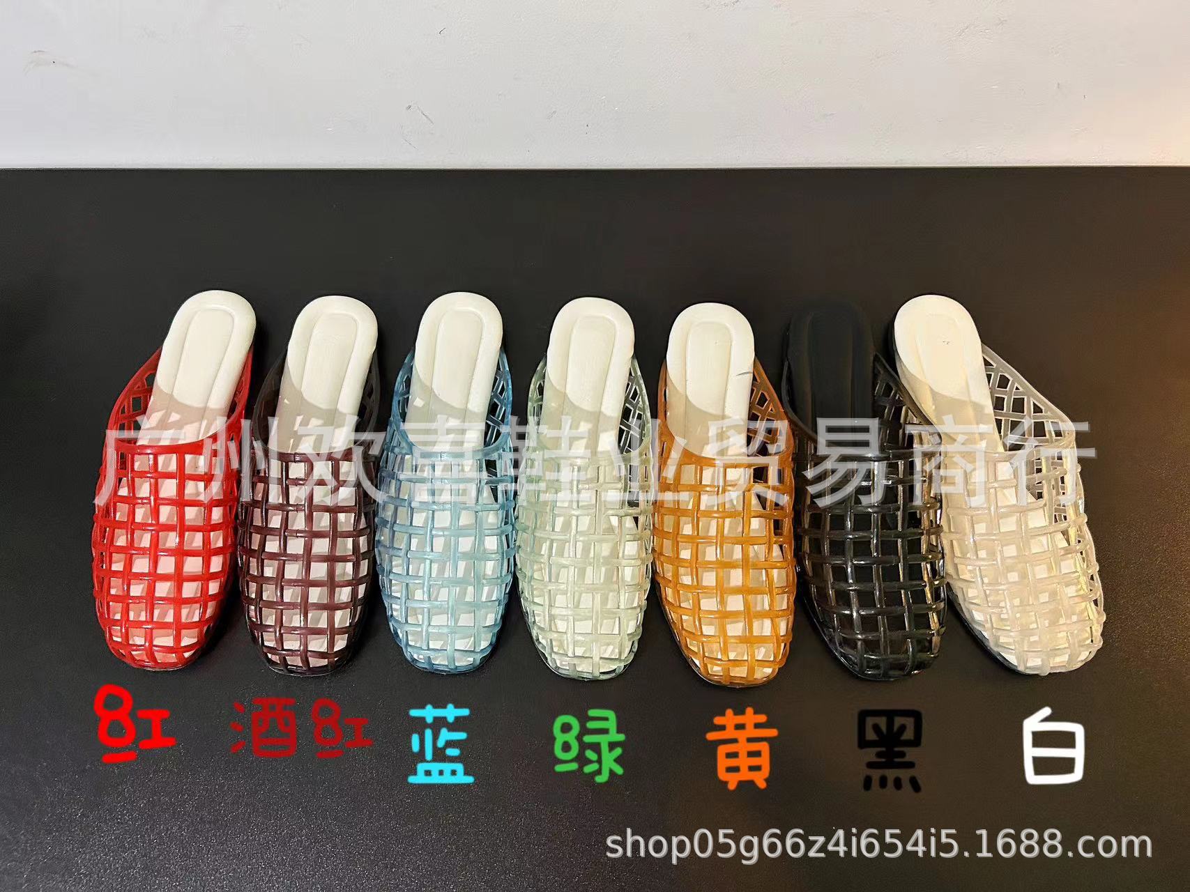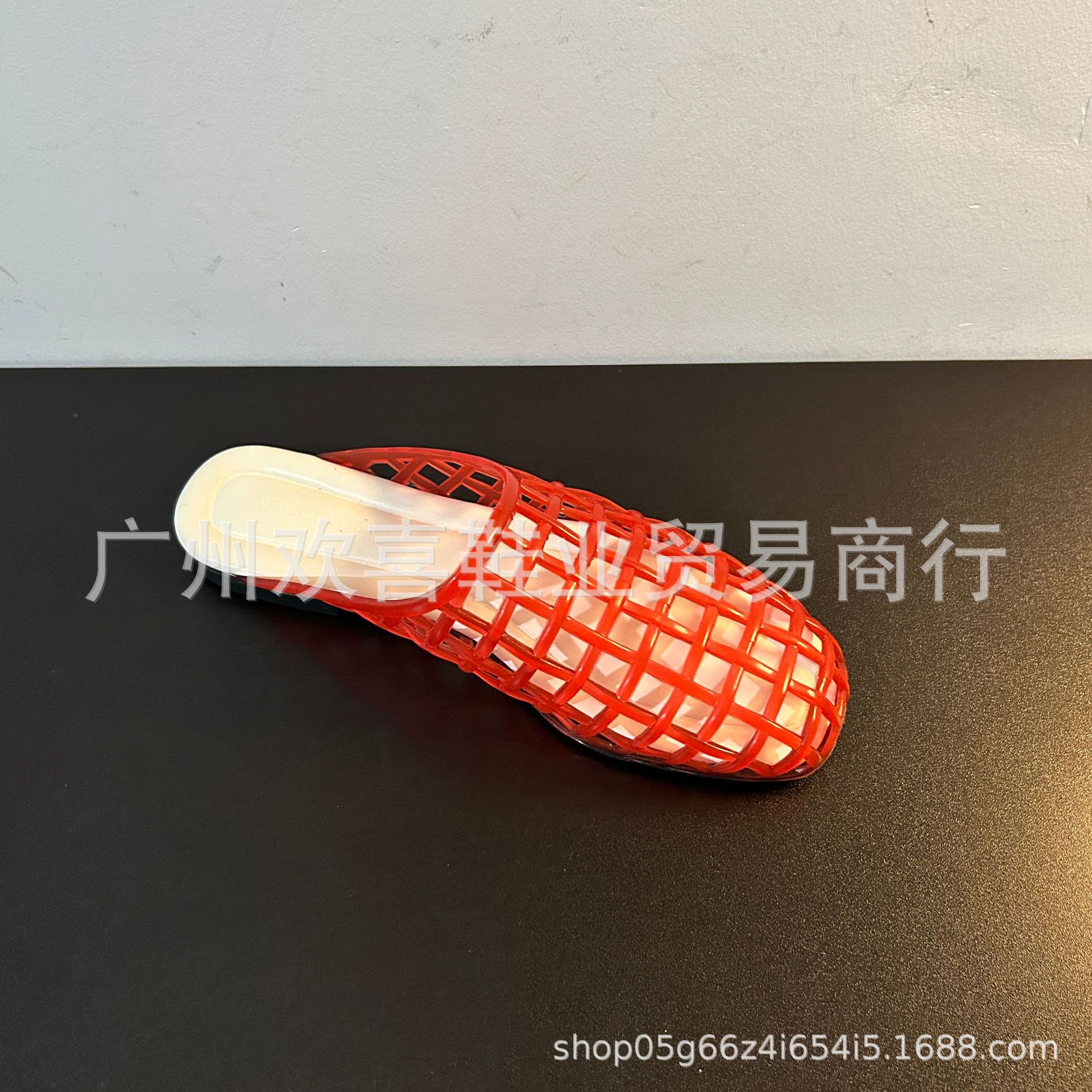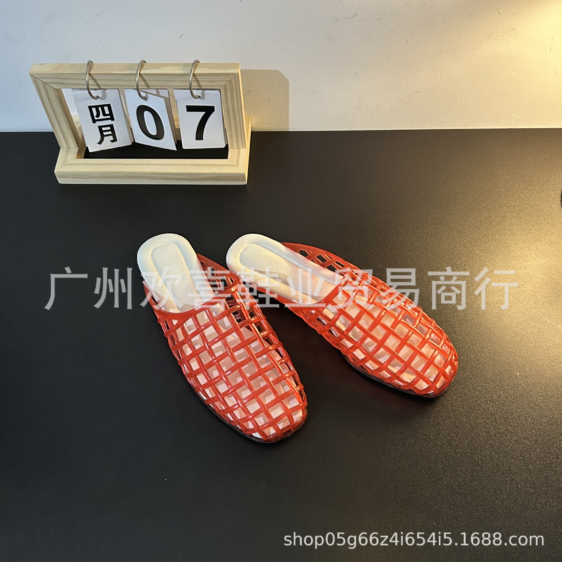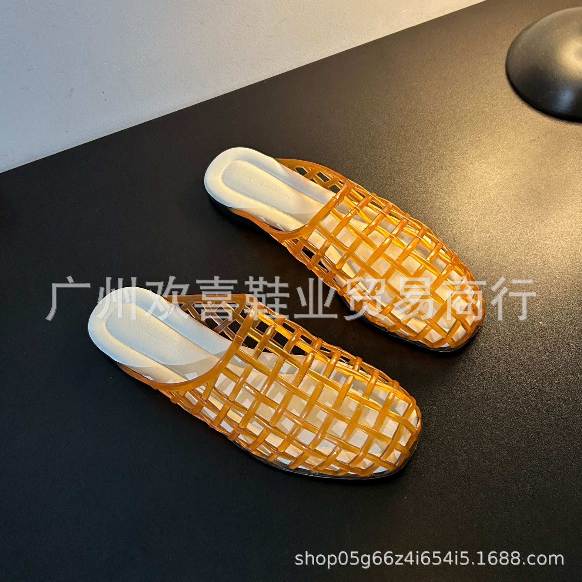 국경 간 구멍 신발 슬리퍼 여성의 2025 새로운 여름 플랫 낚시 그물 구멍 신발 여성 신발 빈 크리스탈 젤리 신발스토어 가기
