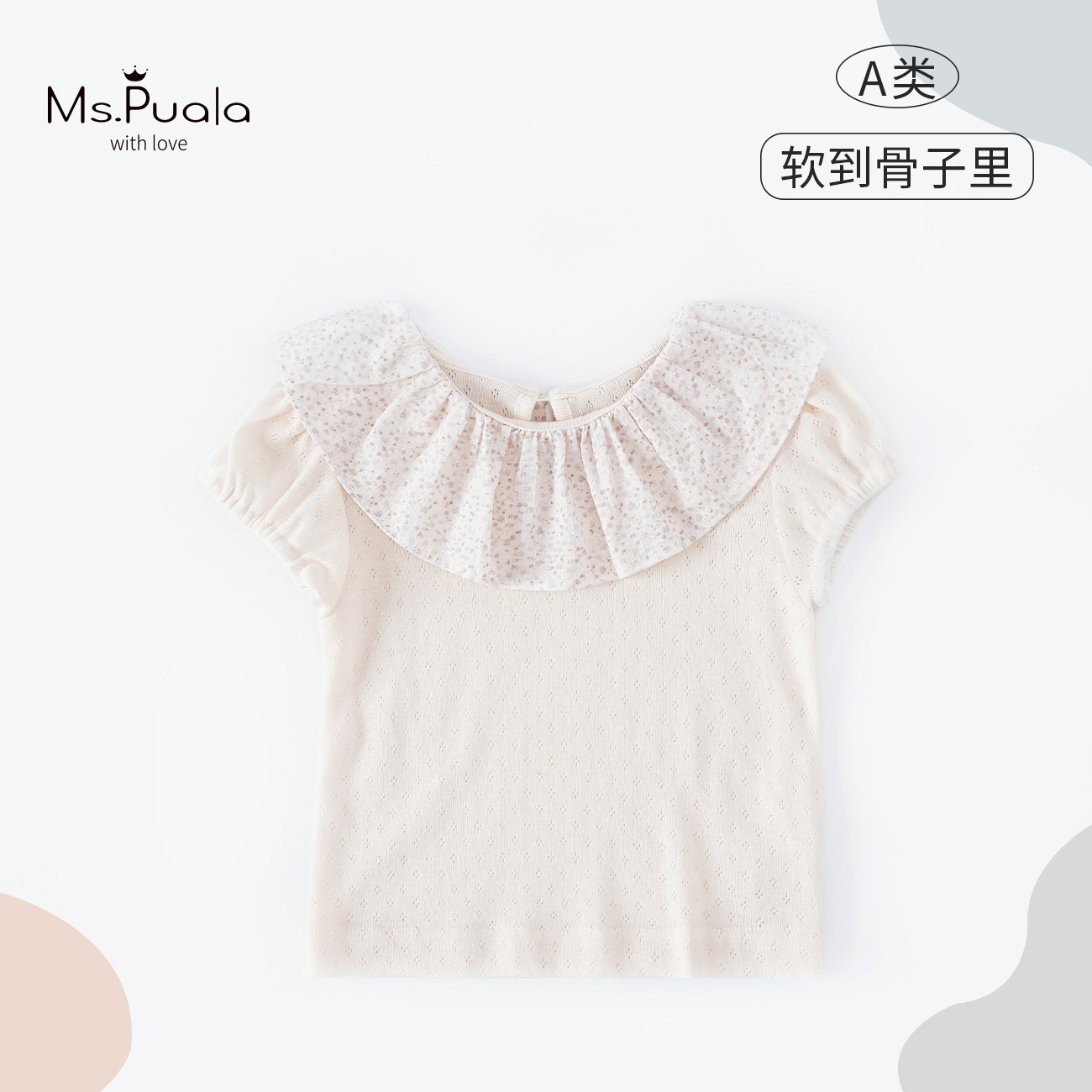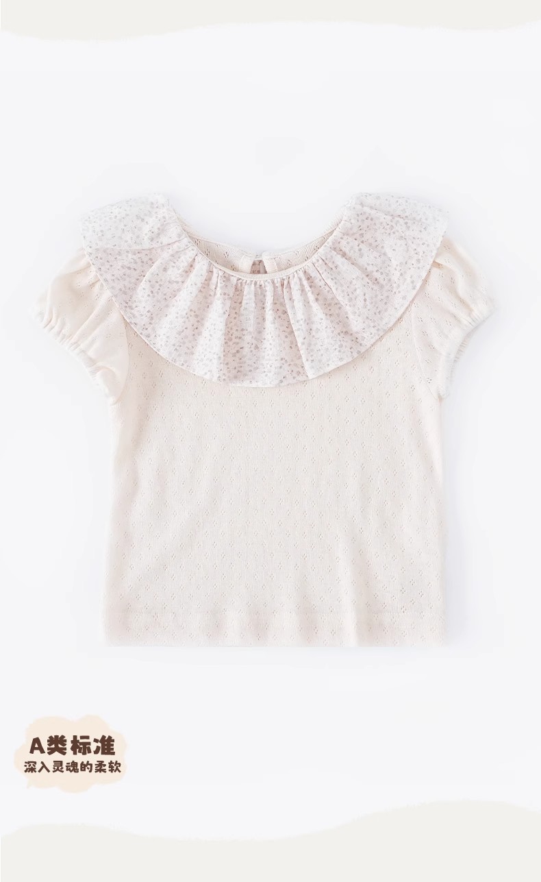 여자 아기 티셔츠 한국 스타일 여름 아기 어린이 착용 봄 여름 여성 아기 부드러운 통기성 연꽃 목걸이 짧은 소매 티셔츠