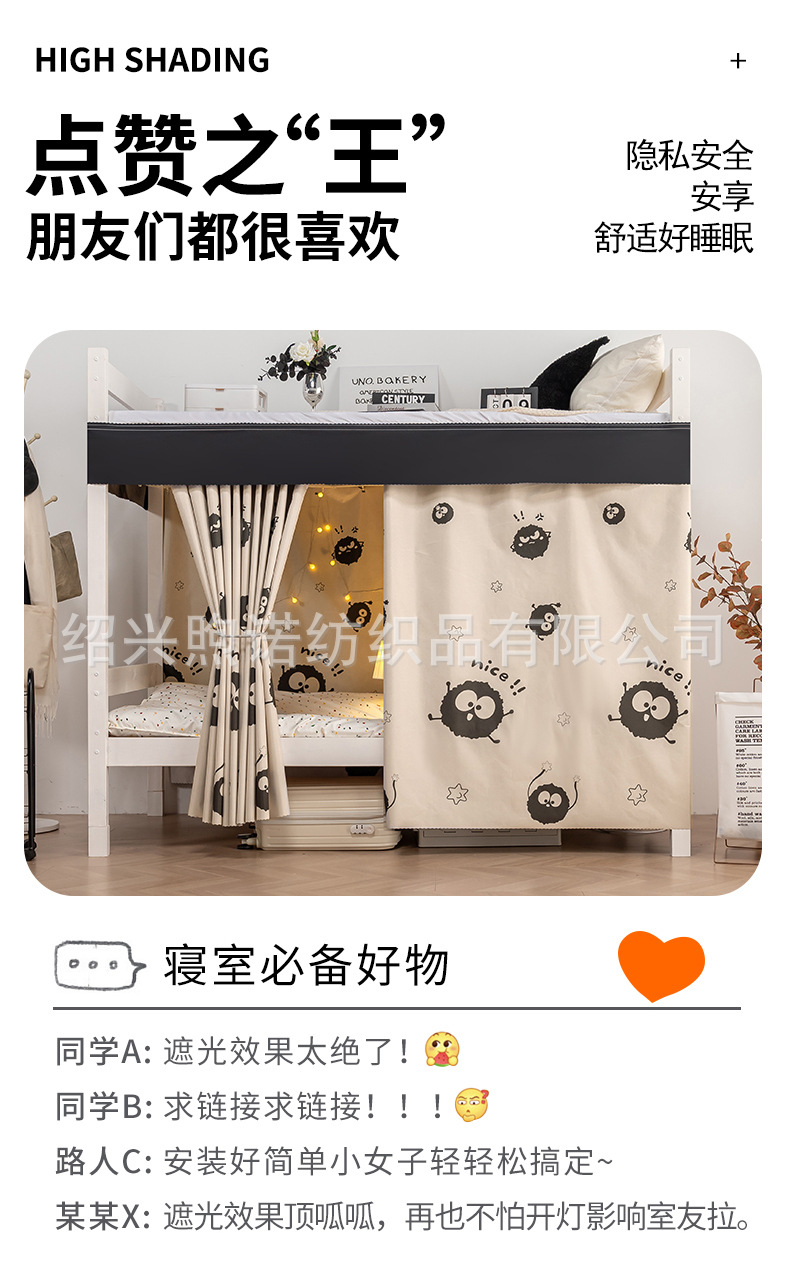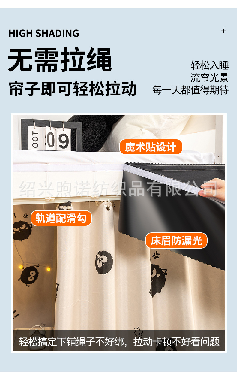 하층 침대 전용 학생 기숙사 강력 차광 침실 슬라이드형 침대 커튼 U자형 소프트 트랙 차광 커튼 둘레 커튼스토어 가기