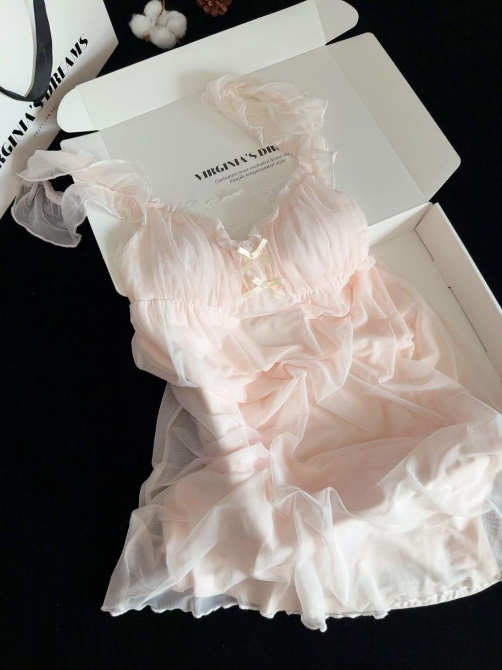 • 핑크 서스펜더 잠옷 [가슴 패드 포함]