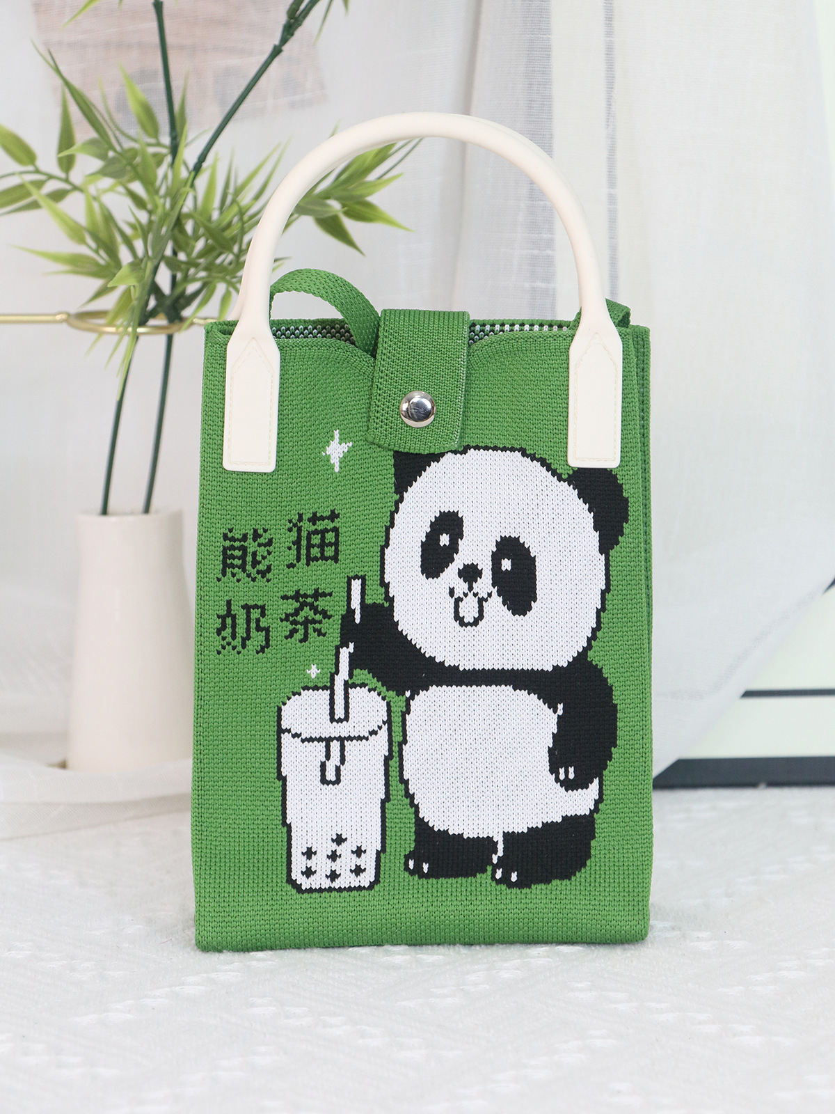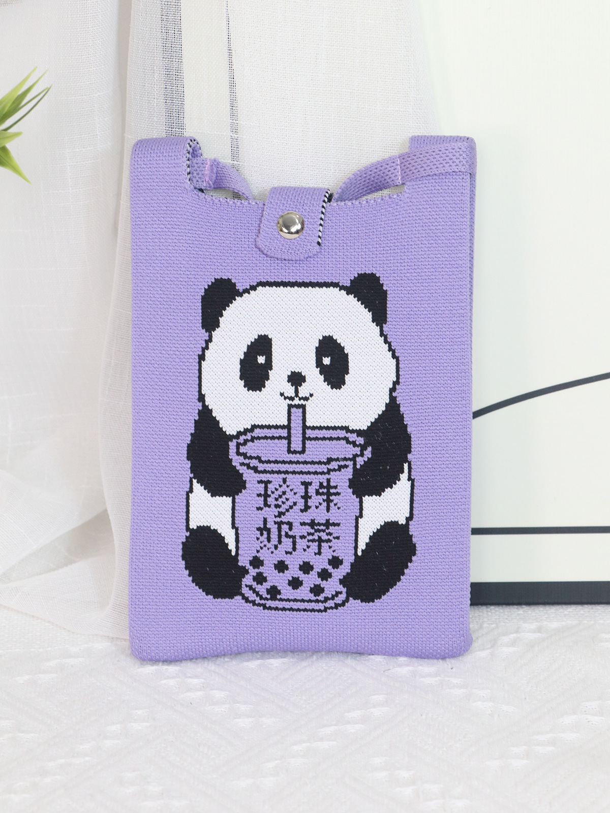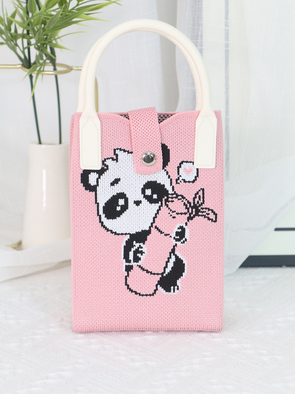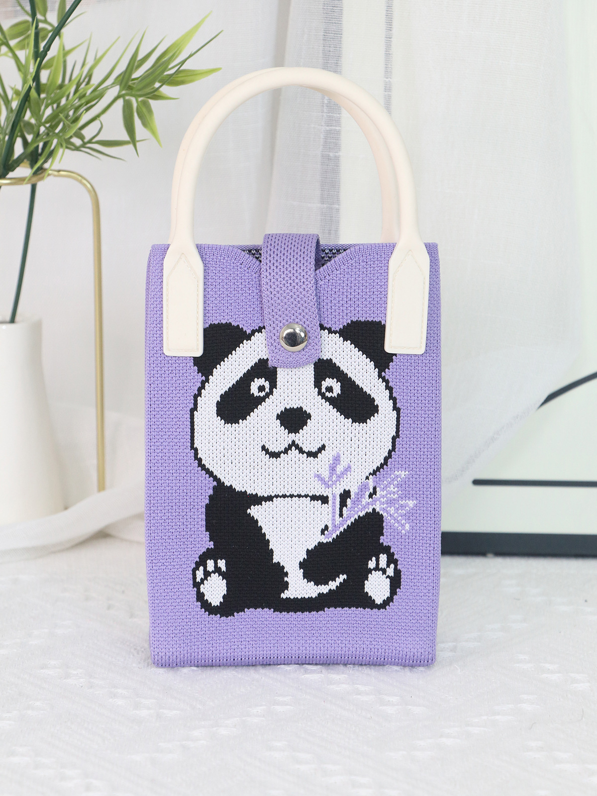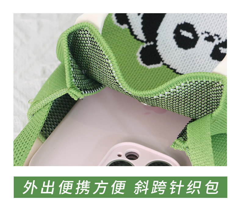 Ins 니트 휴대 전화 가방 2025 패션 올 매치 핸드백 만화 귀여운 팬더 핸드백 휴대 전화 가방스토어 가기