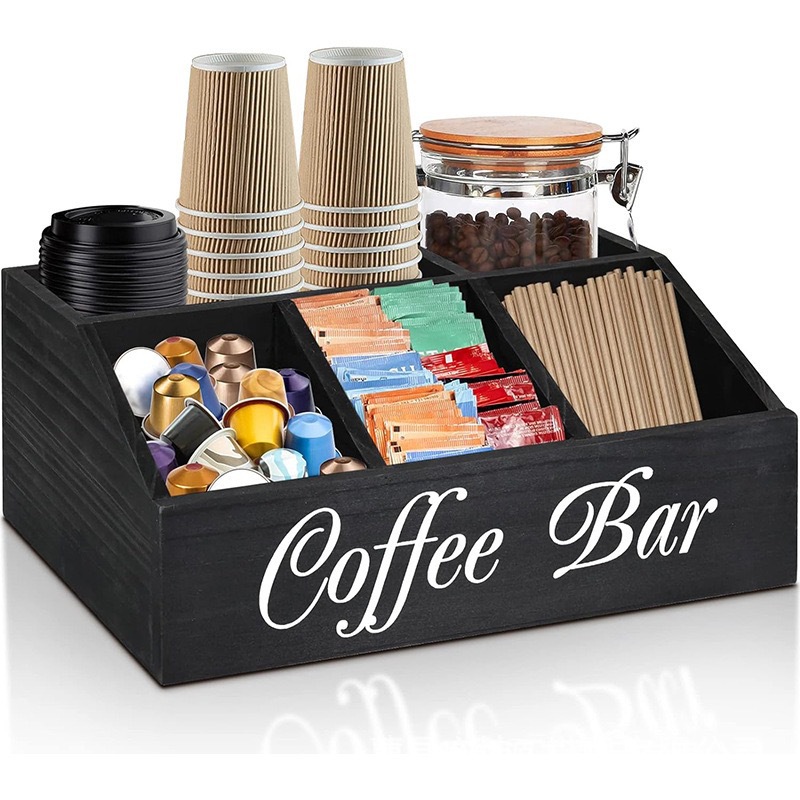 검은 나무 커피 컵 보관 나무 상자 카운터 데스크탑 커피 캡슐 홀더 보관 바구니 보관 단단한 나무 상자