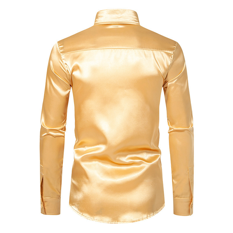 2025 봄 새로운 유럽과 미국의 아마존 패션 남성 새틴 나이트 클럽 긴팔 셔츠